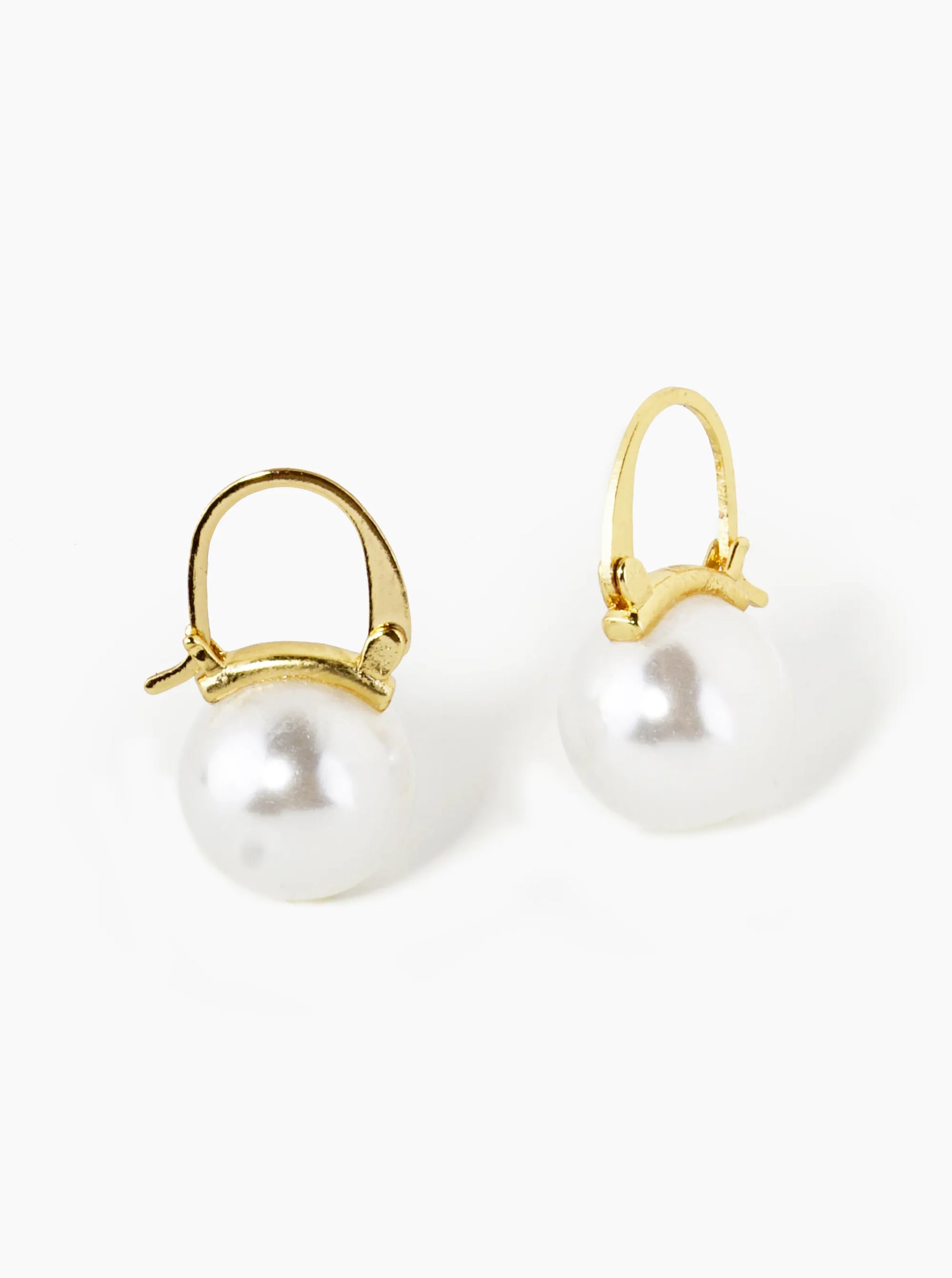 18K Gold Dipped 12mm Pearl Drop Pin Catch Earrings