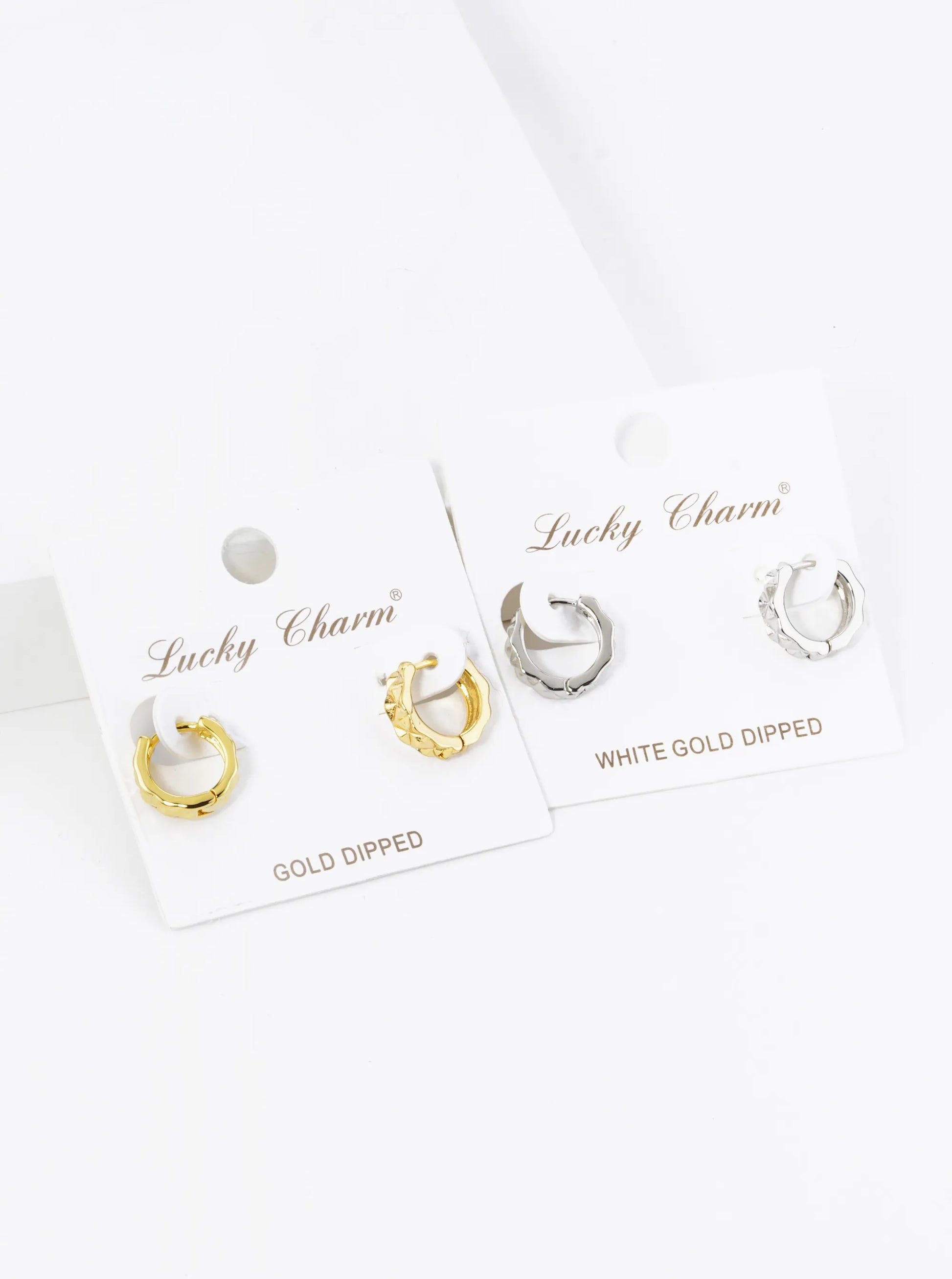 18K Gold Dipped 12mm Studded Brass Huggie Hoop Earrings