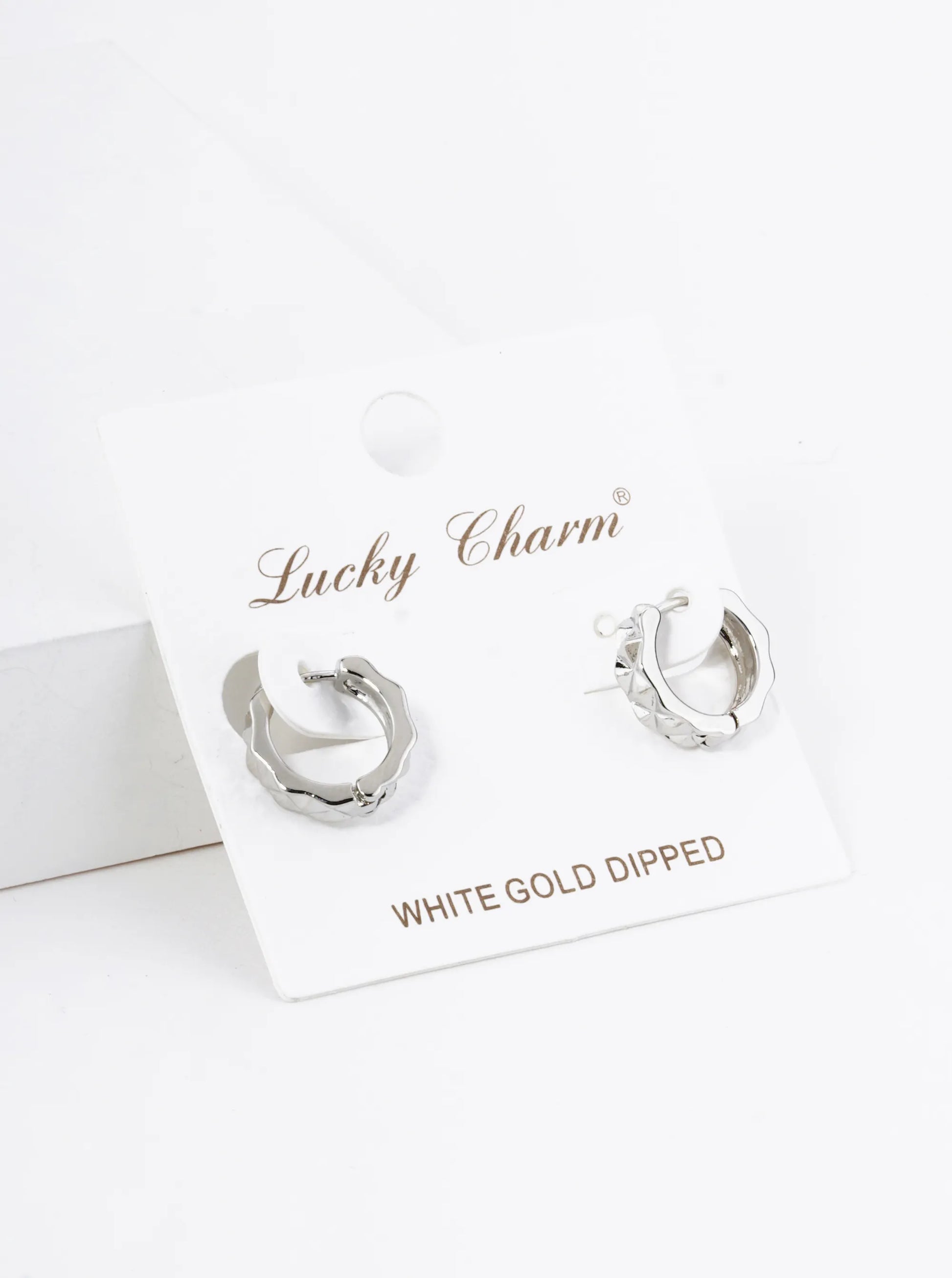 These Hoop Earrings Are Elegantly Designed With A Touch Of Sophistication. The 12mm Size And Studded Detailing Add A Subtle Yet Noticeable Accent To Any Outfit, Making Them Versatile Pieces For Both Casual And Formal Occasions.