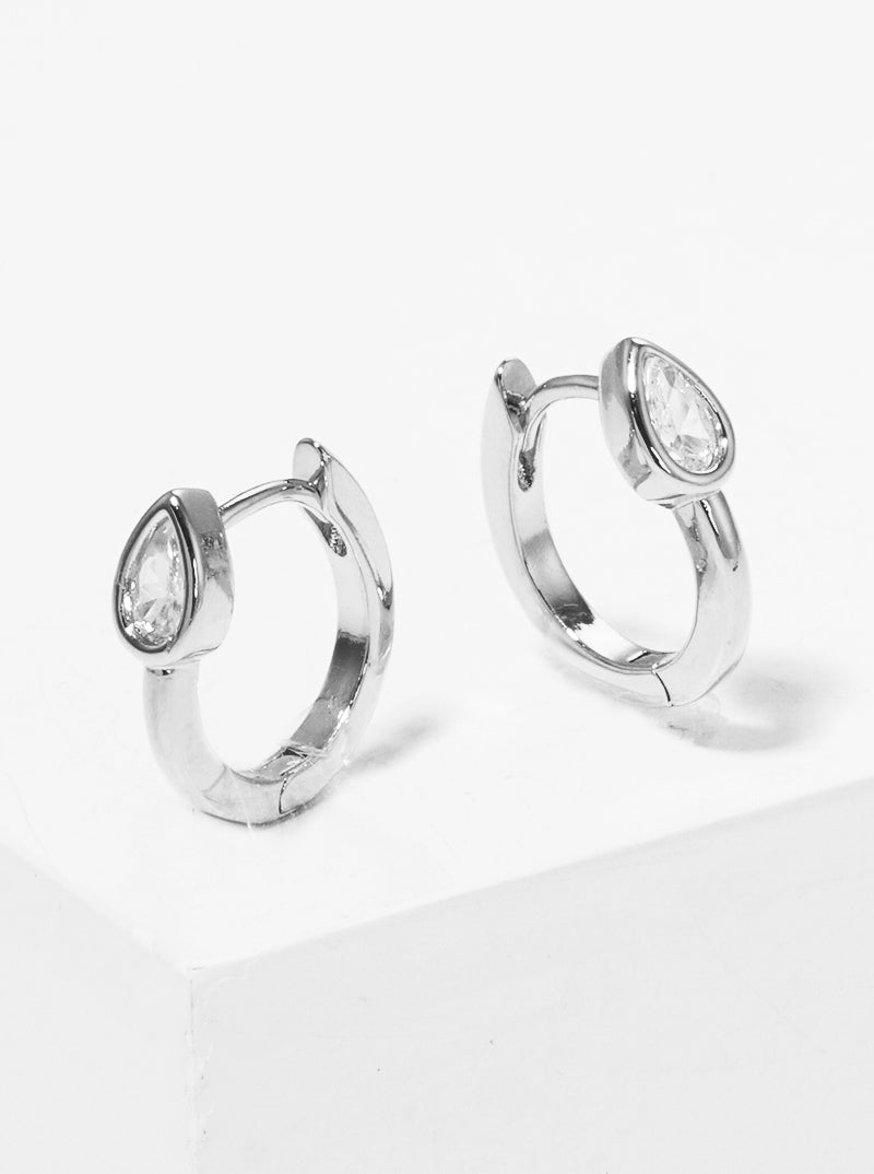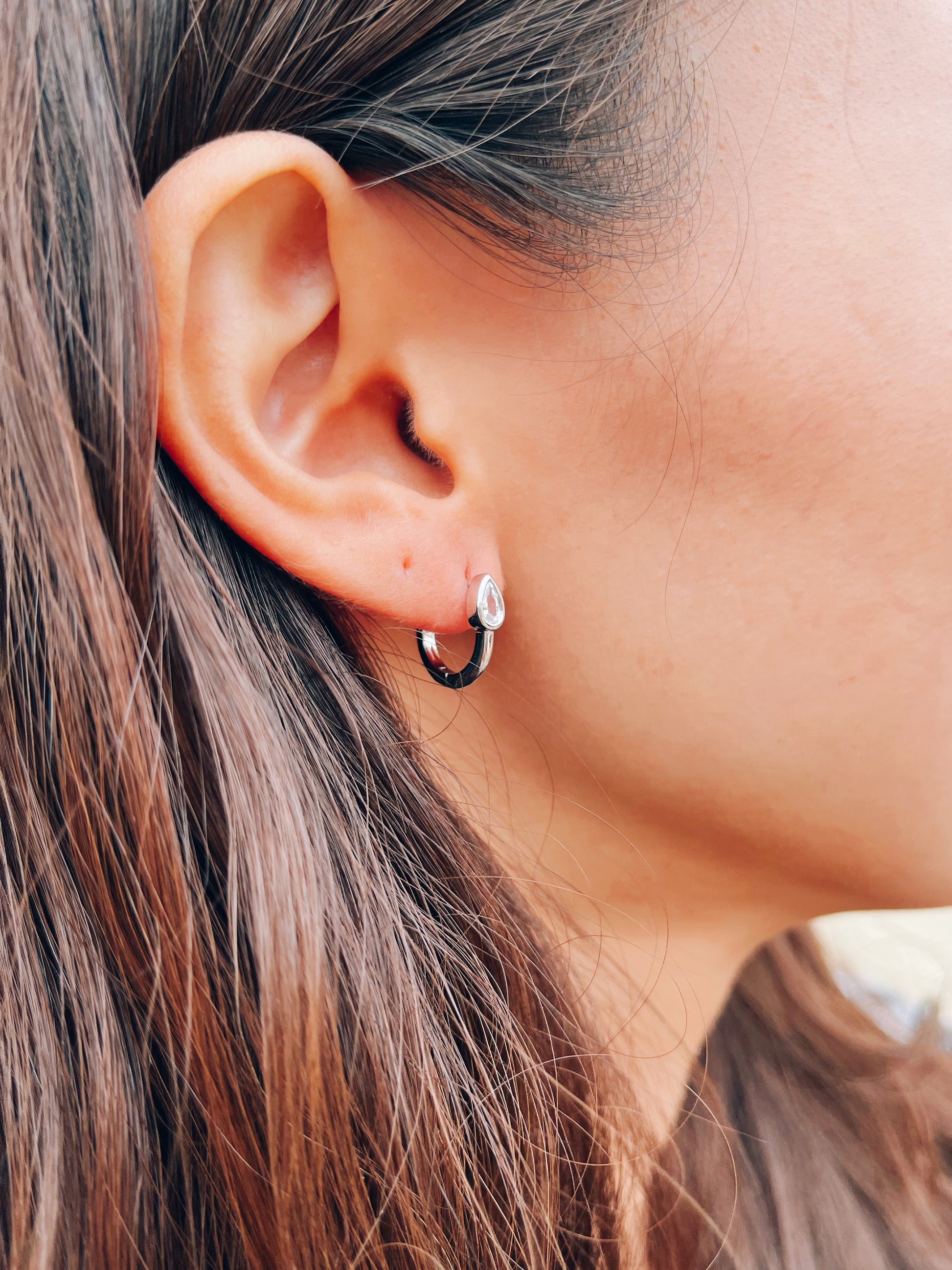 18K Gold Dipped 12mm Teardrop CZ Huggie Earrings