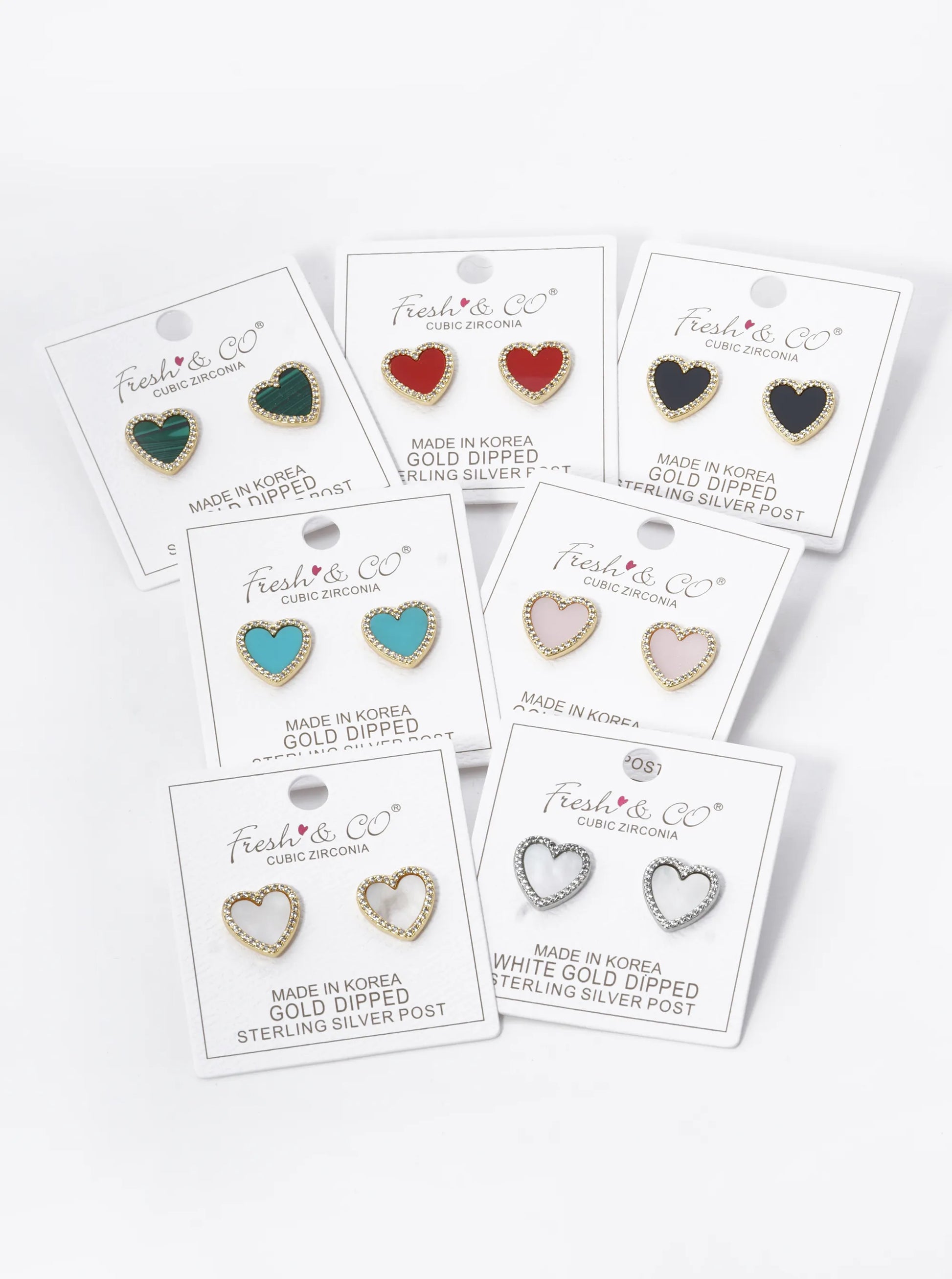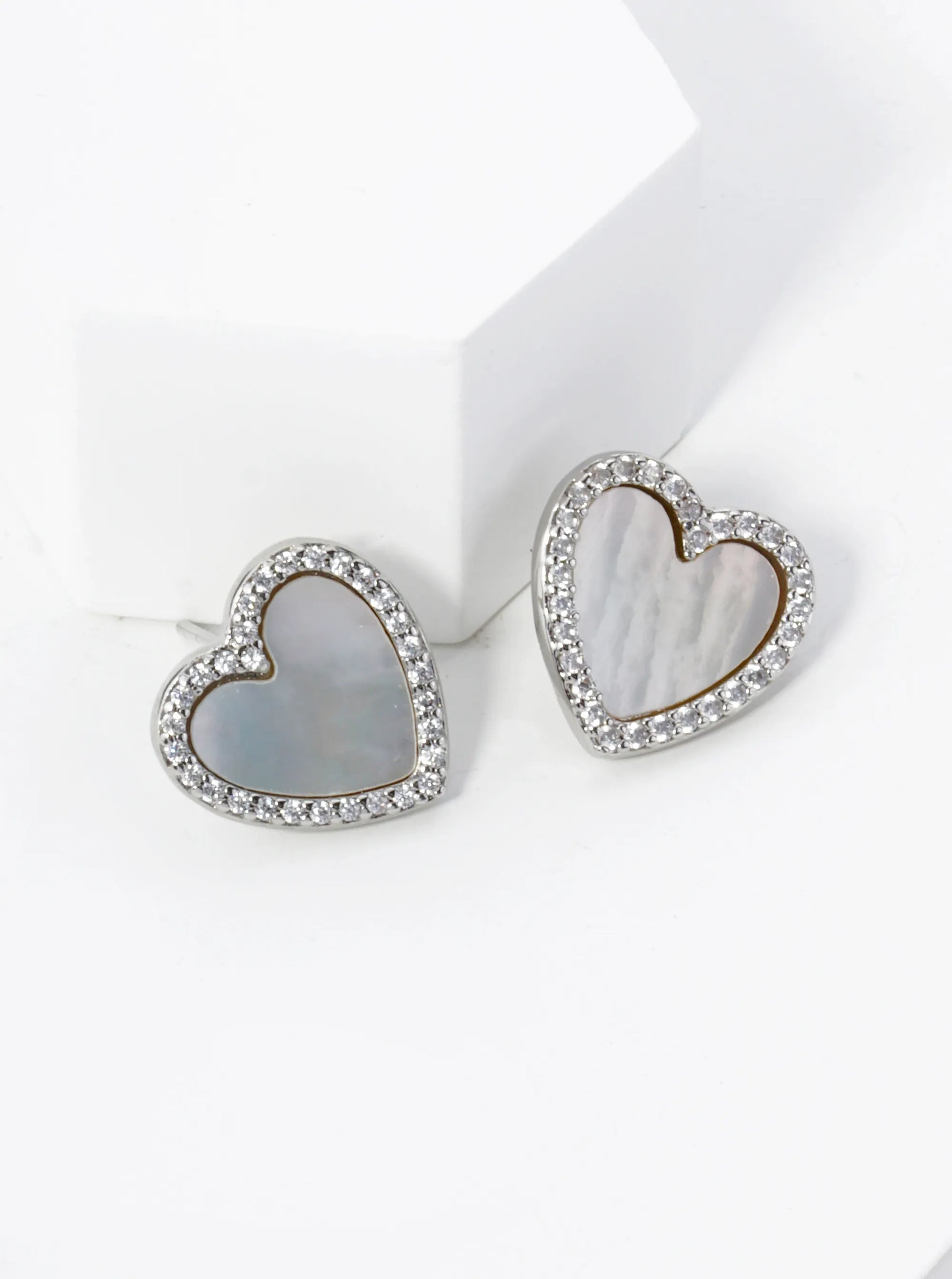 18K Gold Dipped 13mm Pave Set Cubic Zirconia Heart Stud Earrings