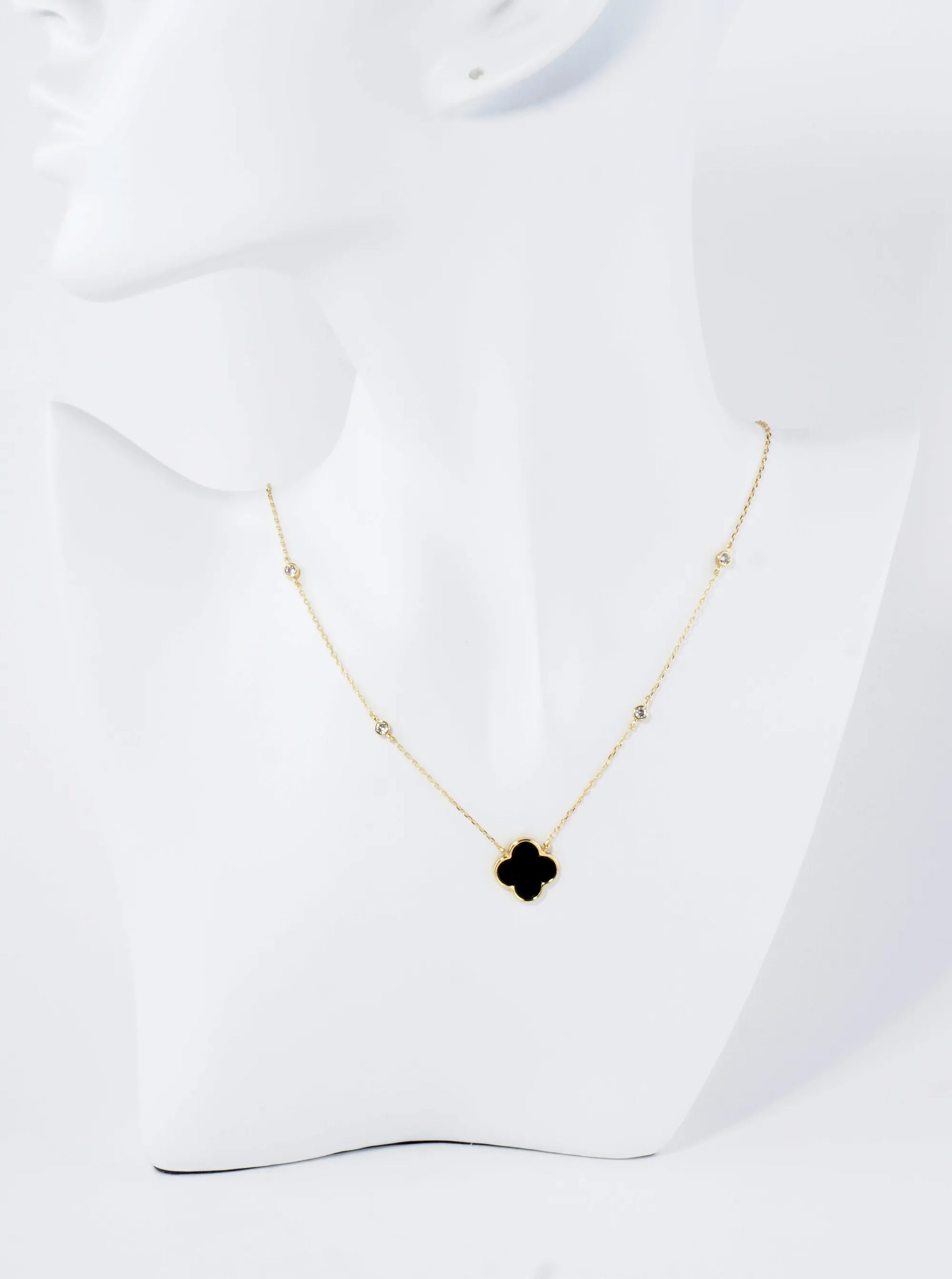 18K Gold Dipped 13mm Quatrefoil Pendant CZ Stone Chain Necklace