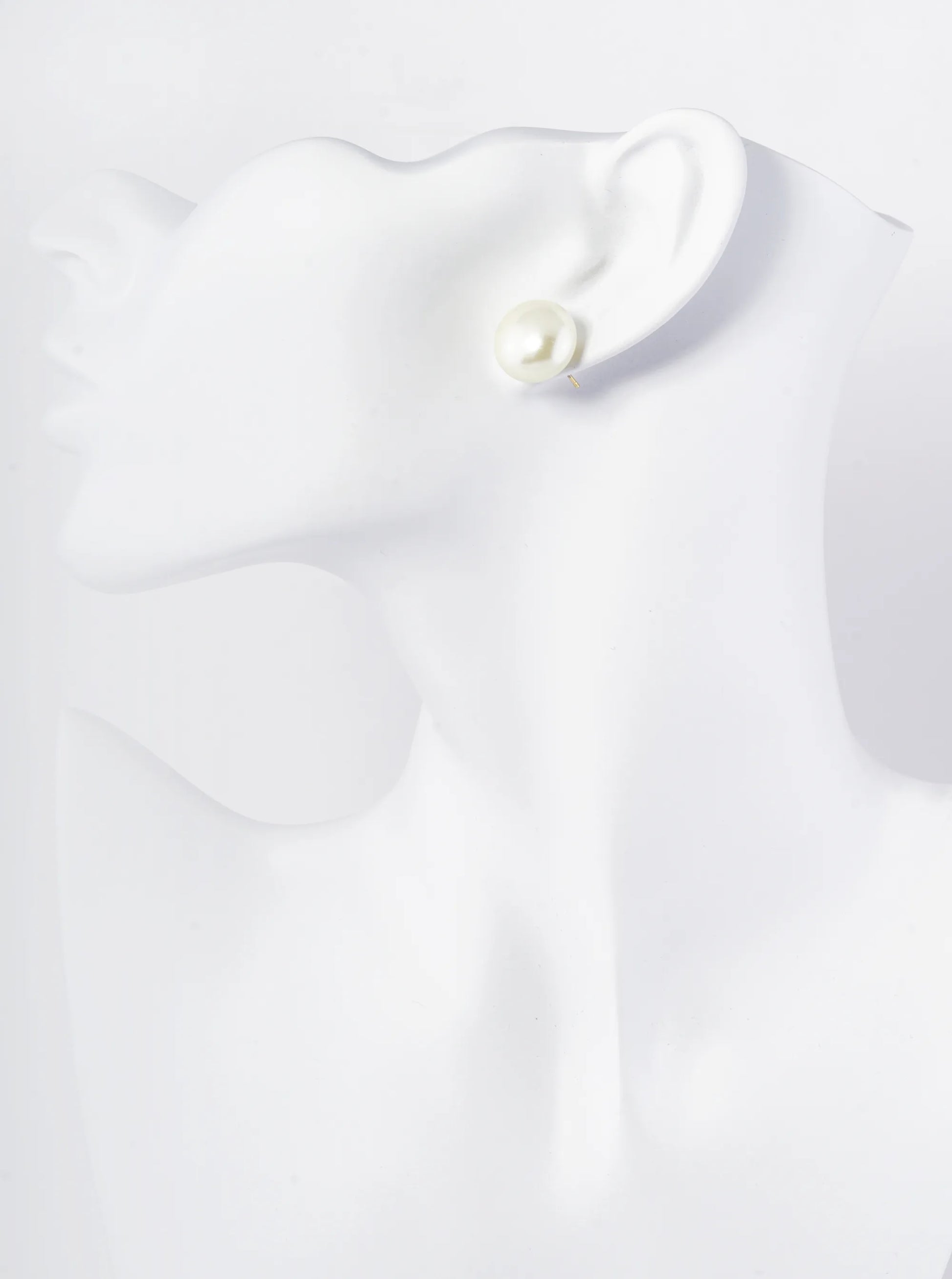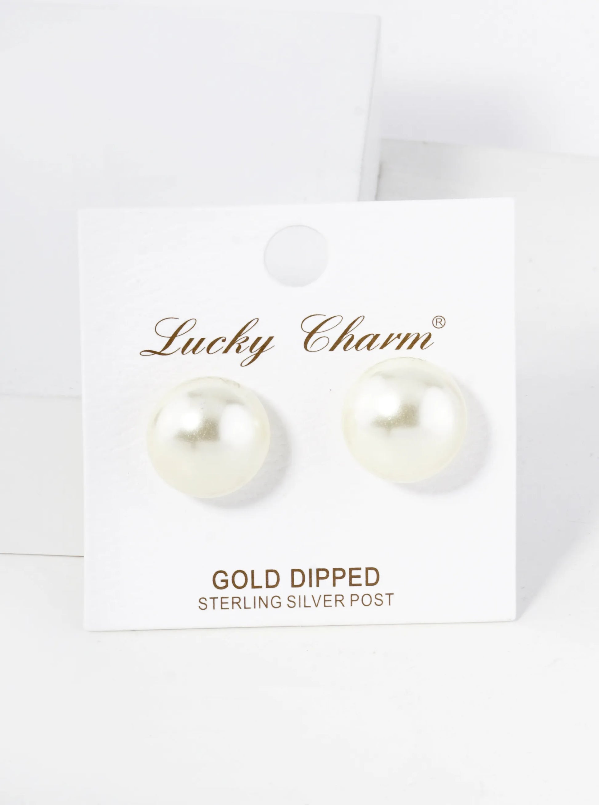 18K Gold Dipped 14mm Pearl Button Stud Earrings
