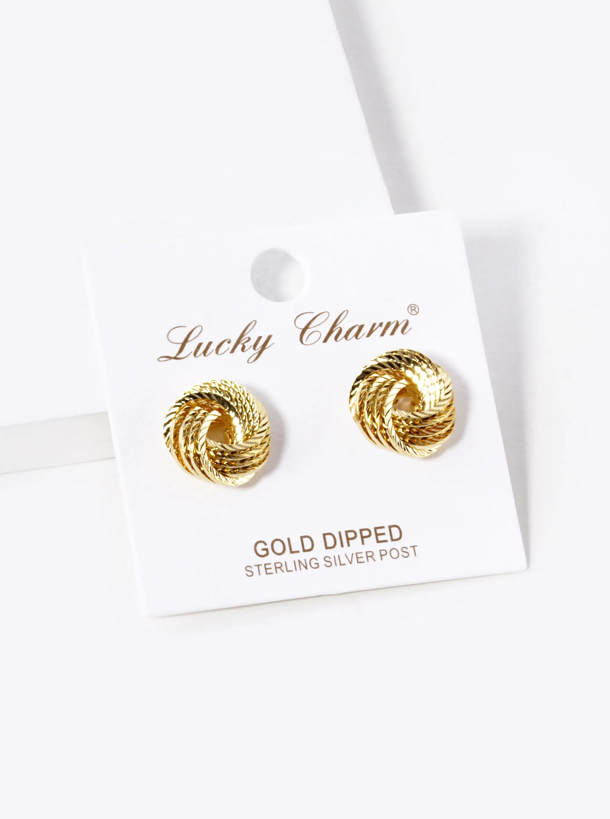 18K Gold Dipped 14mm Textured Brass Love Knot Stud Earrings