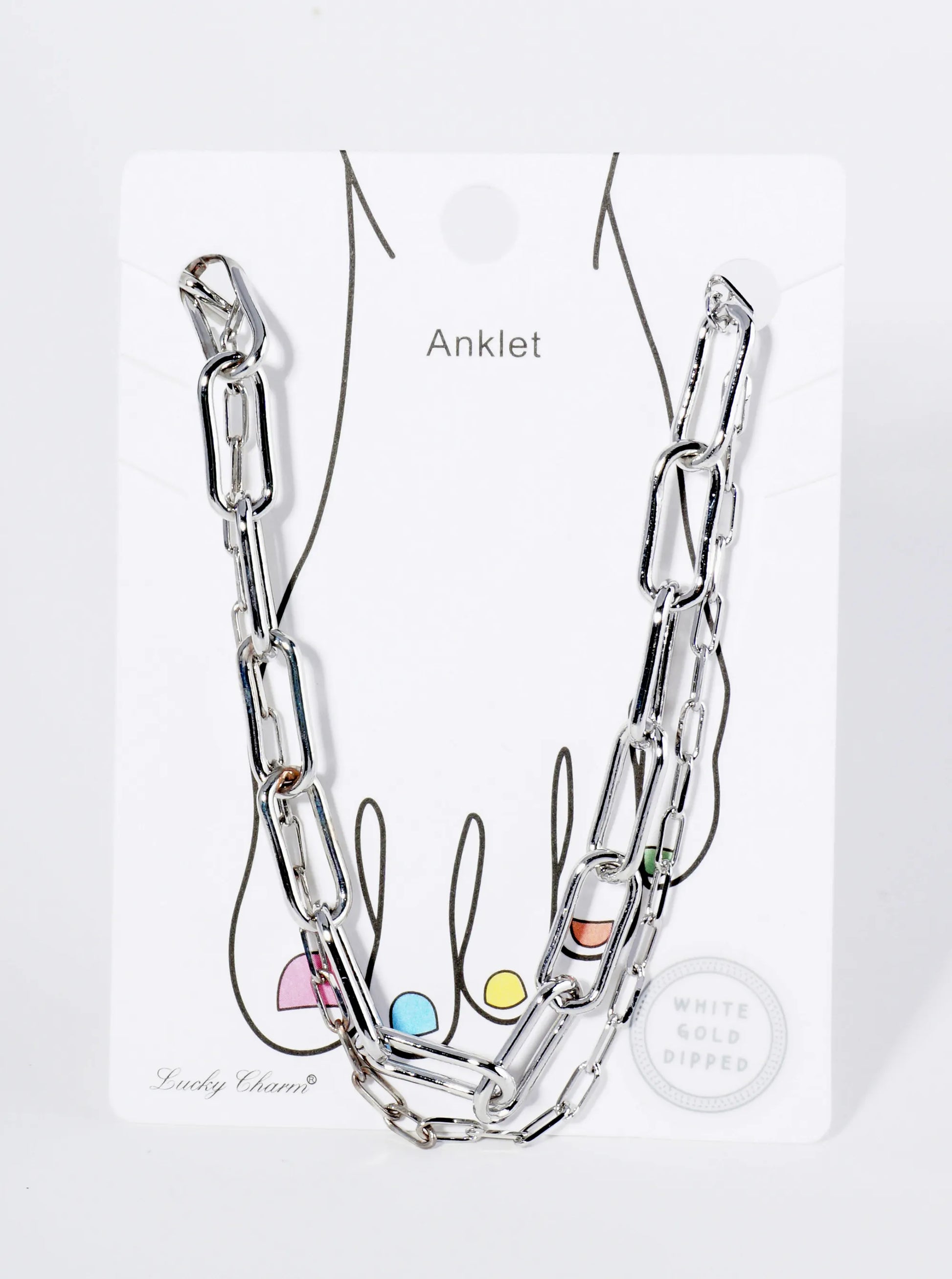 18K Gold Dipped 15mm 6mm Brass Layered Link Chain Anklet