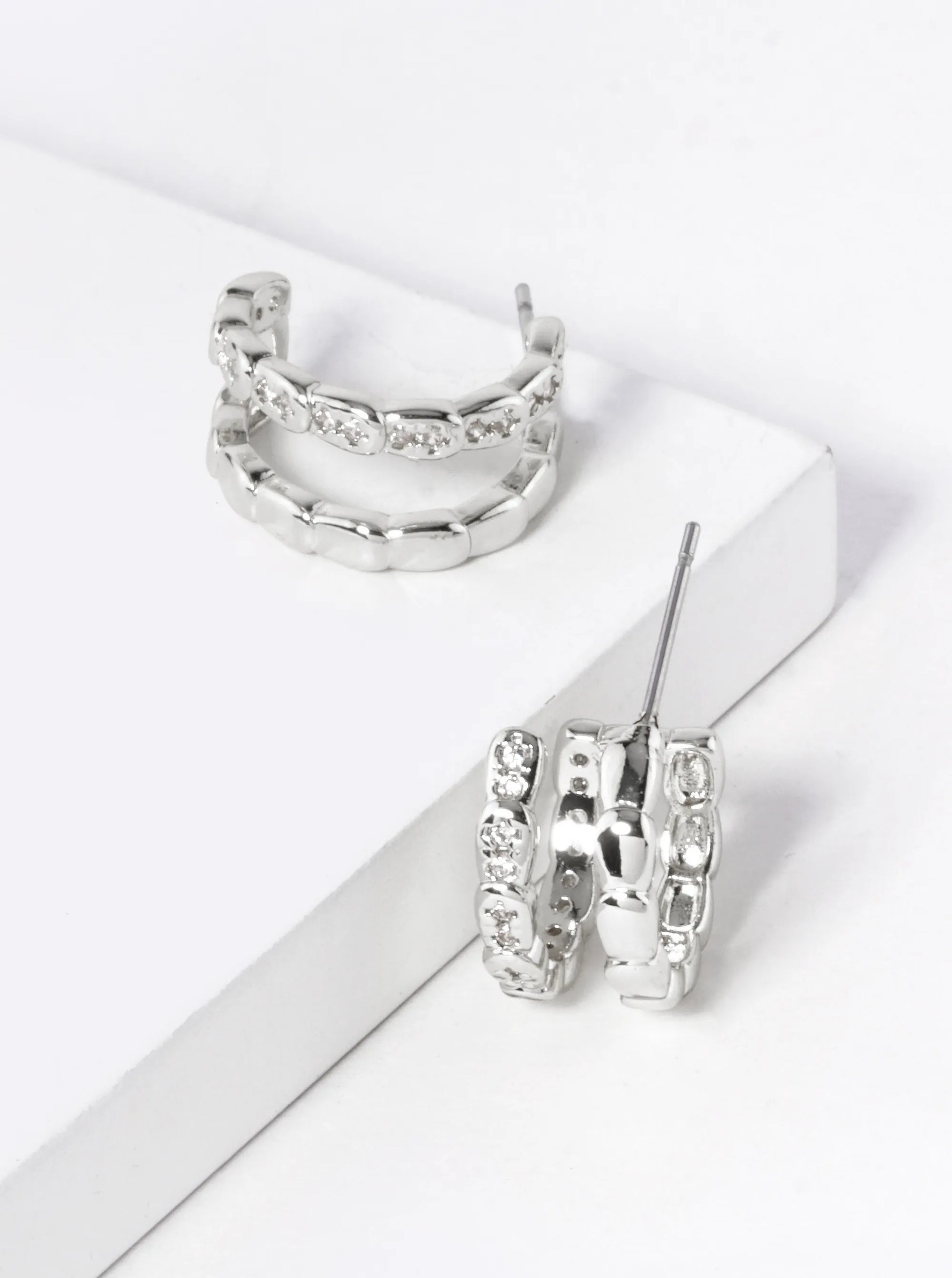 18K Gold Dipped 15mm Diameter CZ Double Line Brass Hoop Earrings
