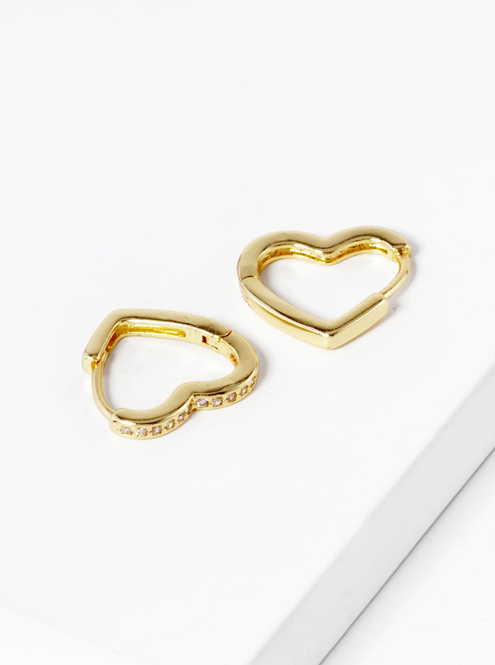 18K Gold Dipped 15mm Heart Shape Cubic Zirconia Brass Huggie Earrings