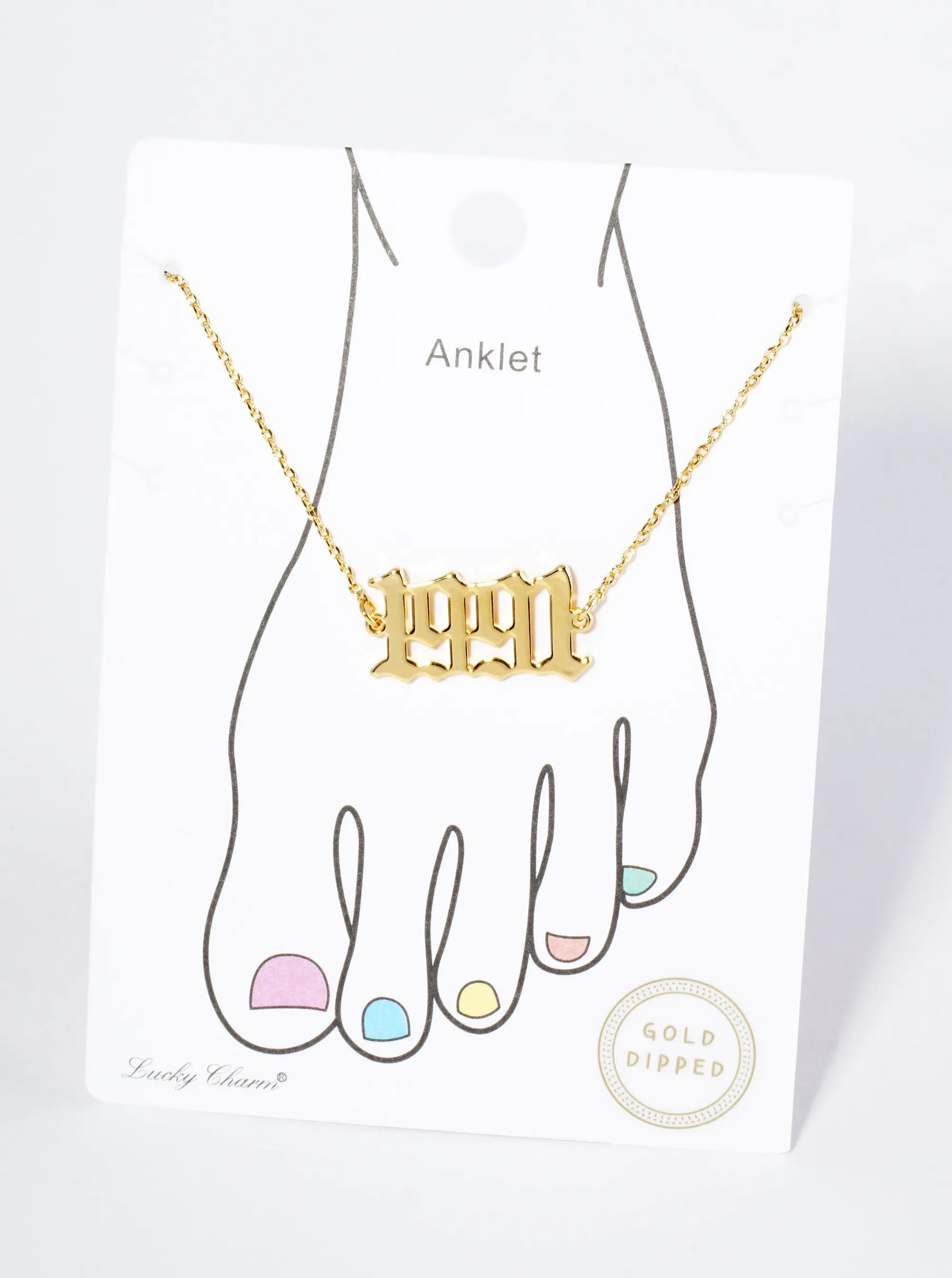 18K Gold Dipped 1991 Birth Year Brass Chain Anklet