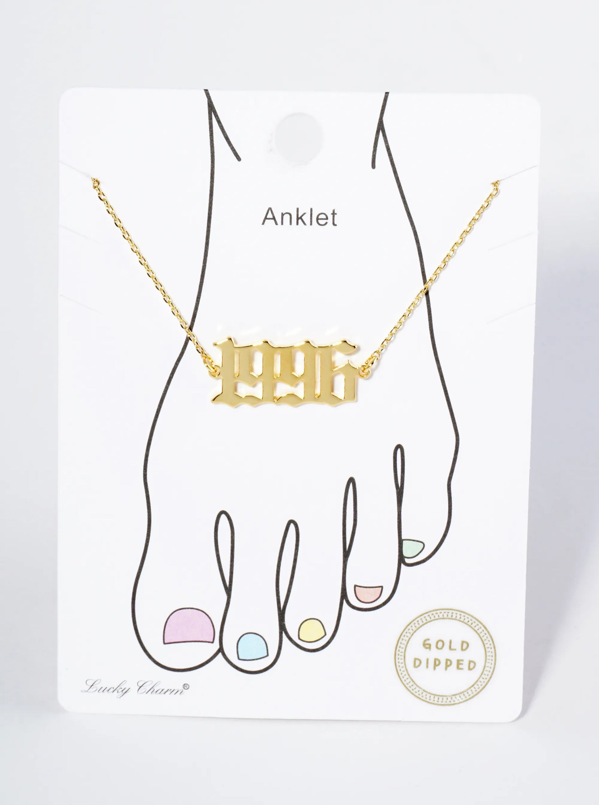 18K Gold Dipped 1996 Birth Year Brass Chain Anklet