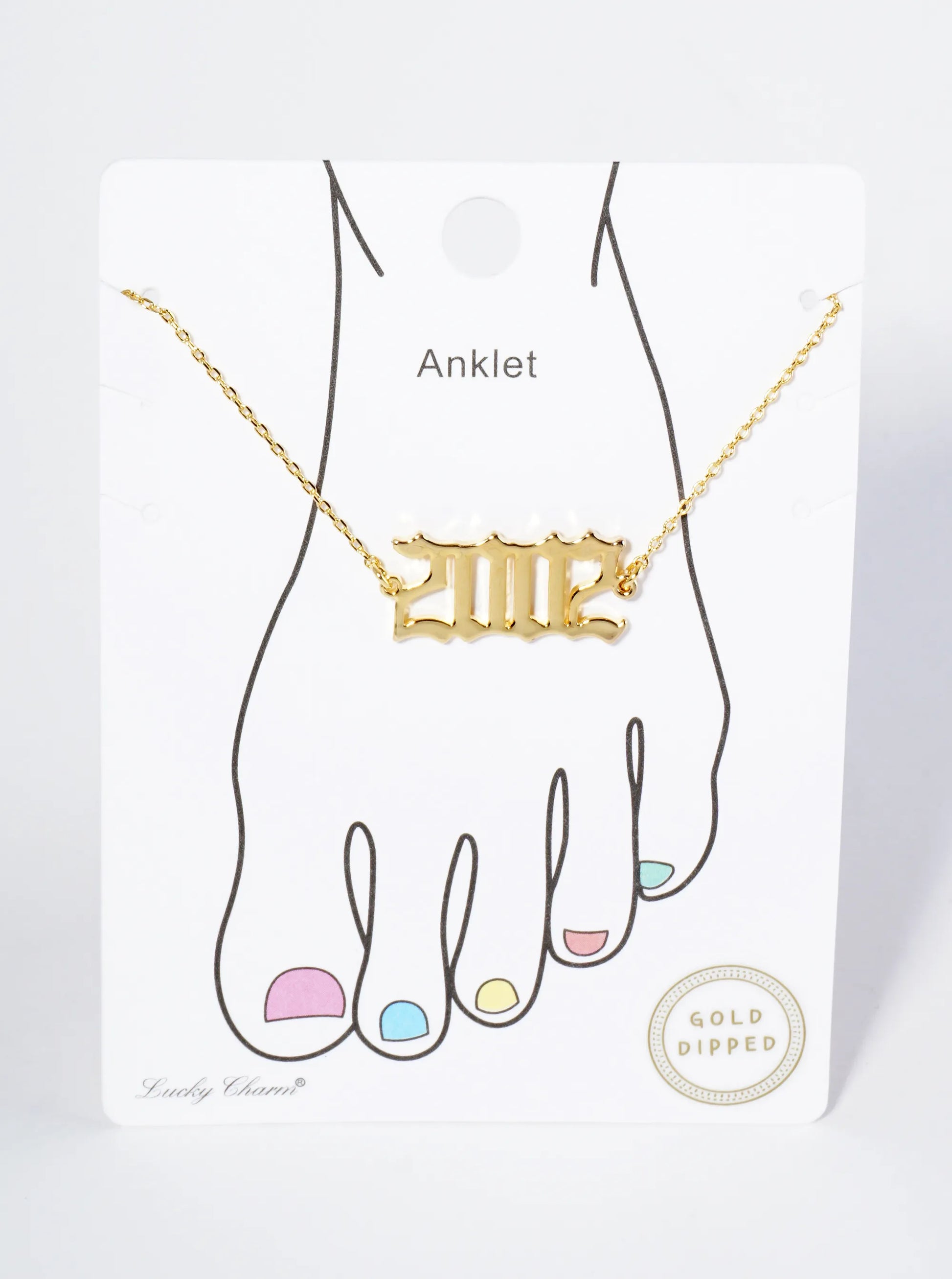 18K Gold Dipped 2002 Birth Year Brass Chain Anklet
