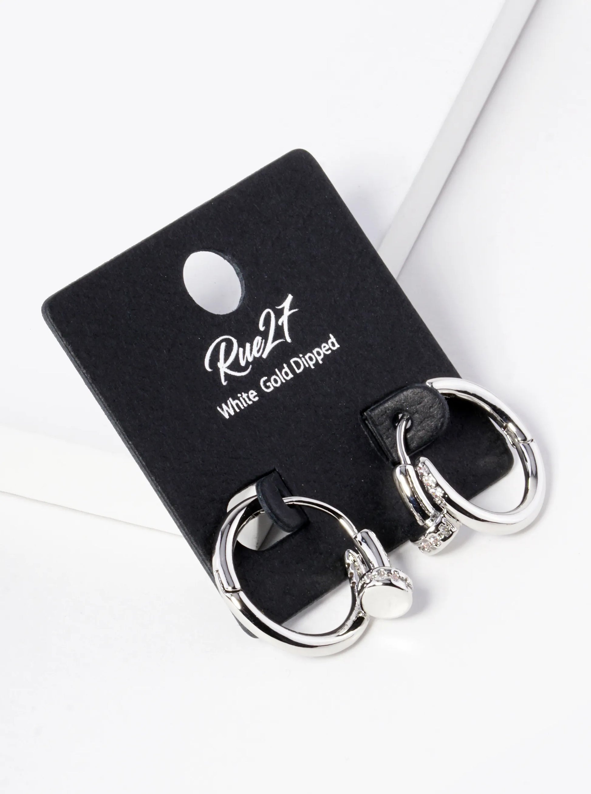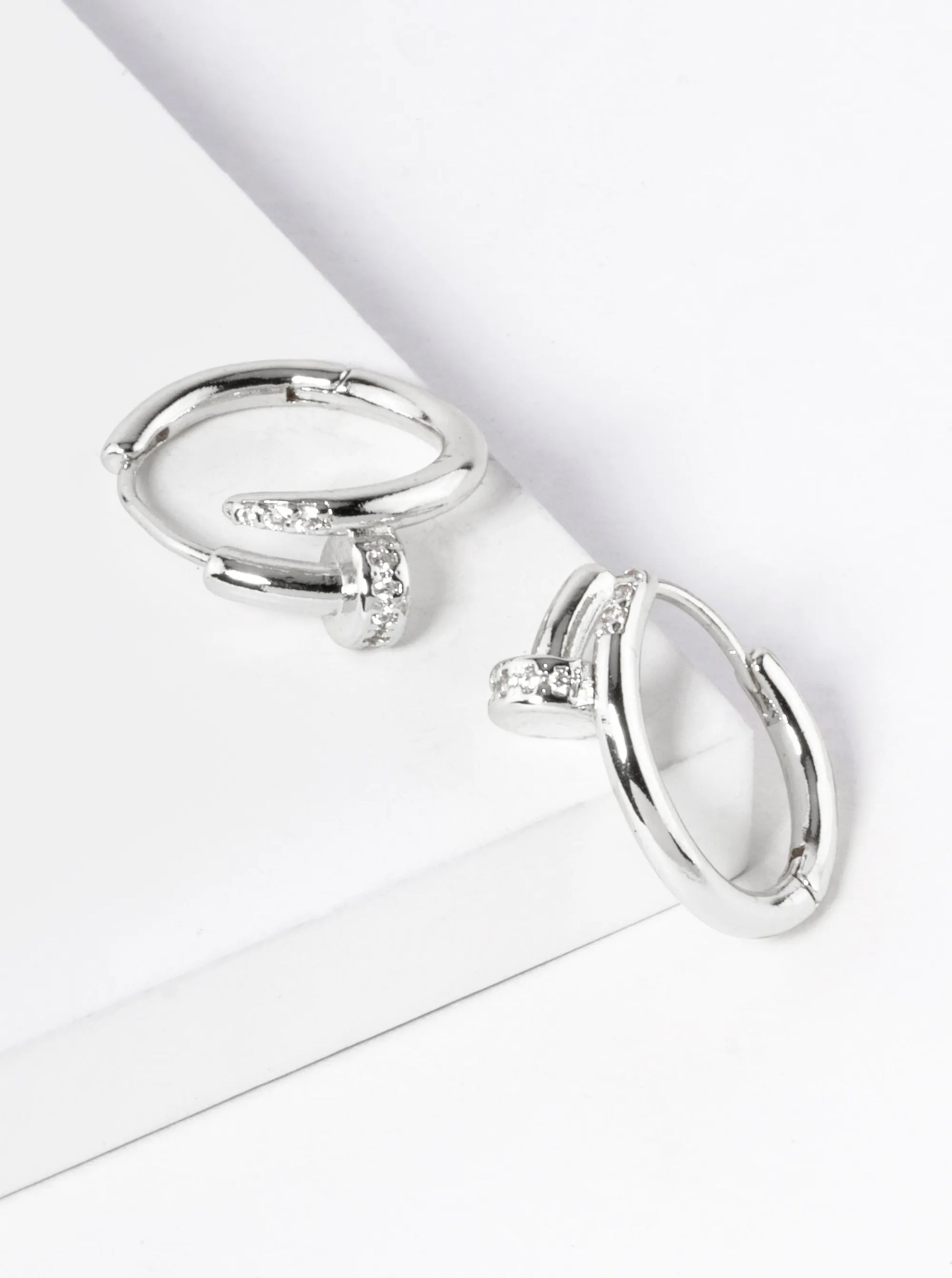 18K Gold Dipped 20mm Cubic Zirconia Simulated Nail Brass Huggie Earrings