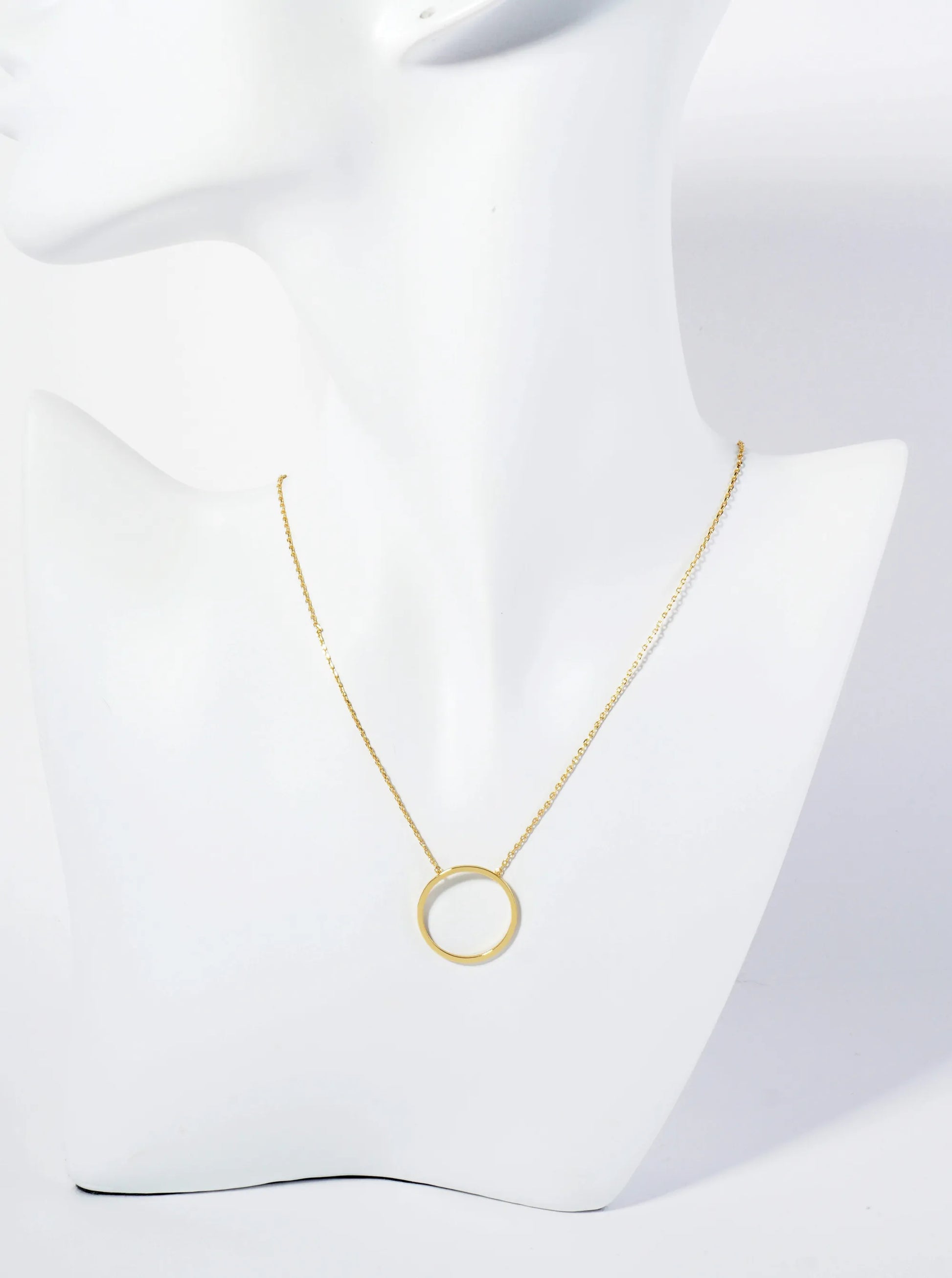 18K Gold Dipped 20mm Wire Circle Pendant Necklace