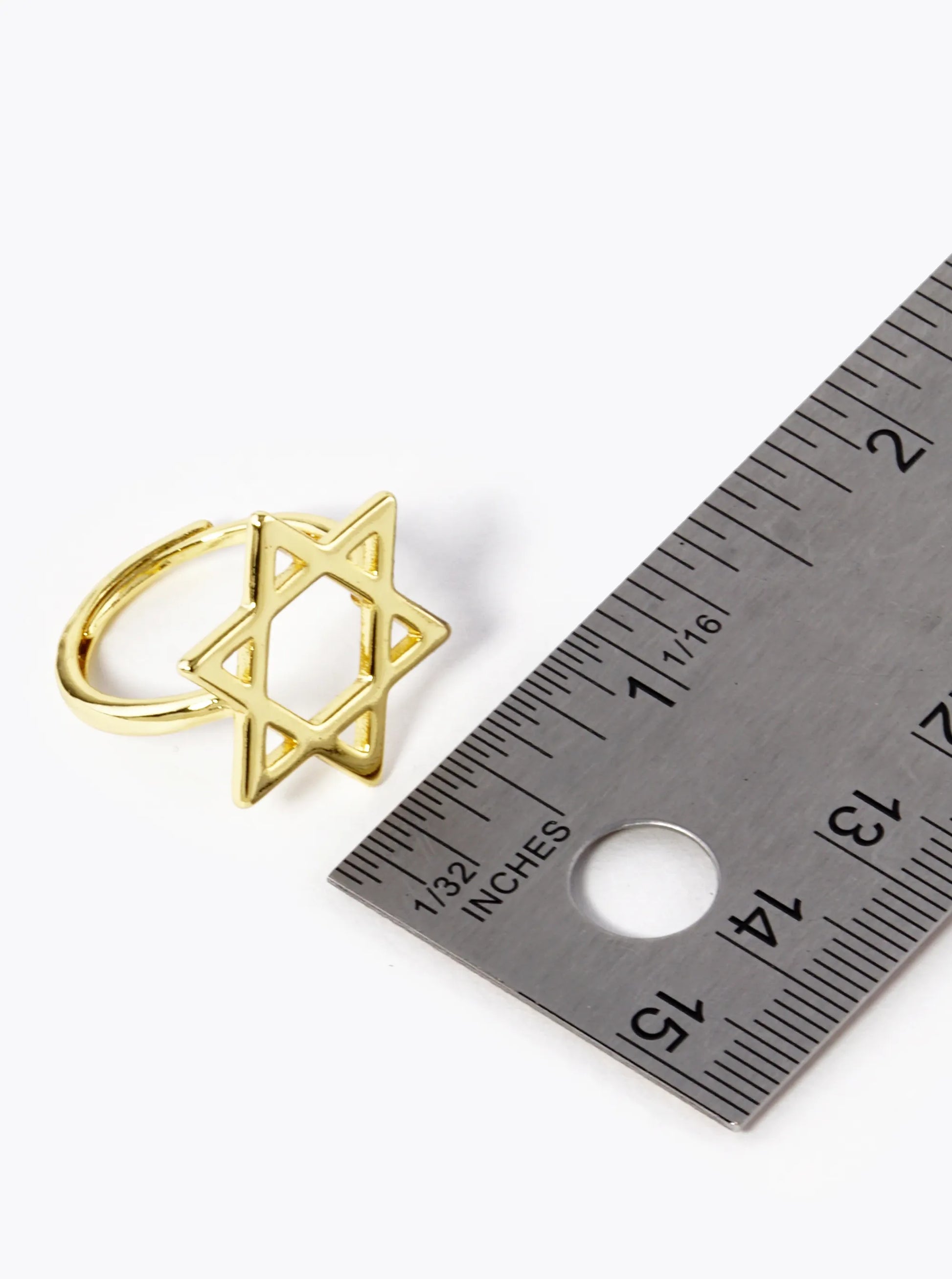 18K Gold Dipped 21mm Star Of David Adjustable Ring