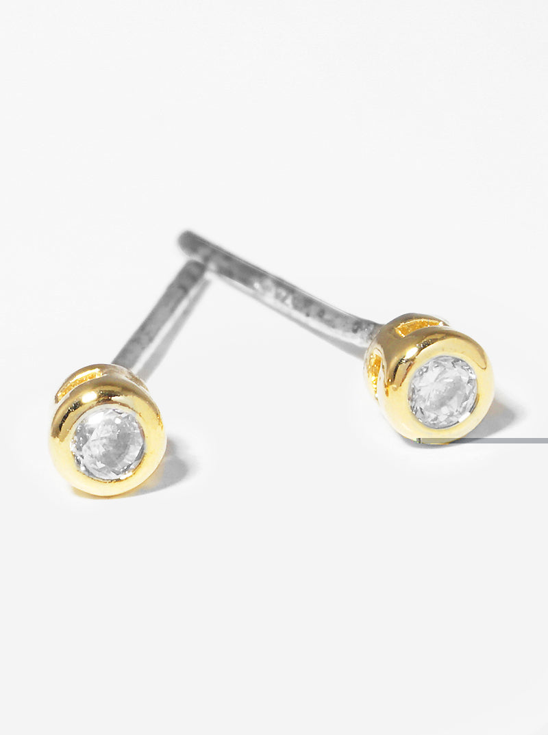 18k Gold Dipped 2mm Round Bezel CZ Sterling Silver Post Stud Earrings