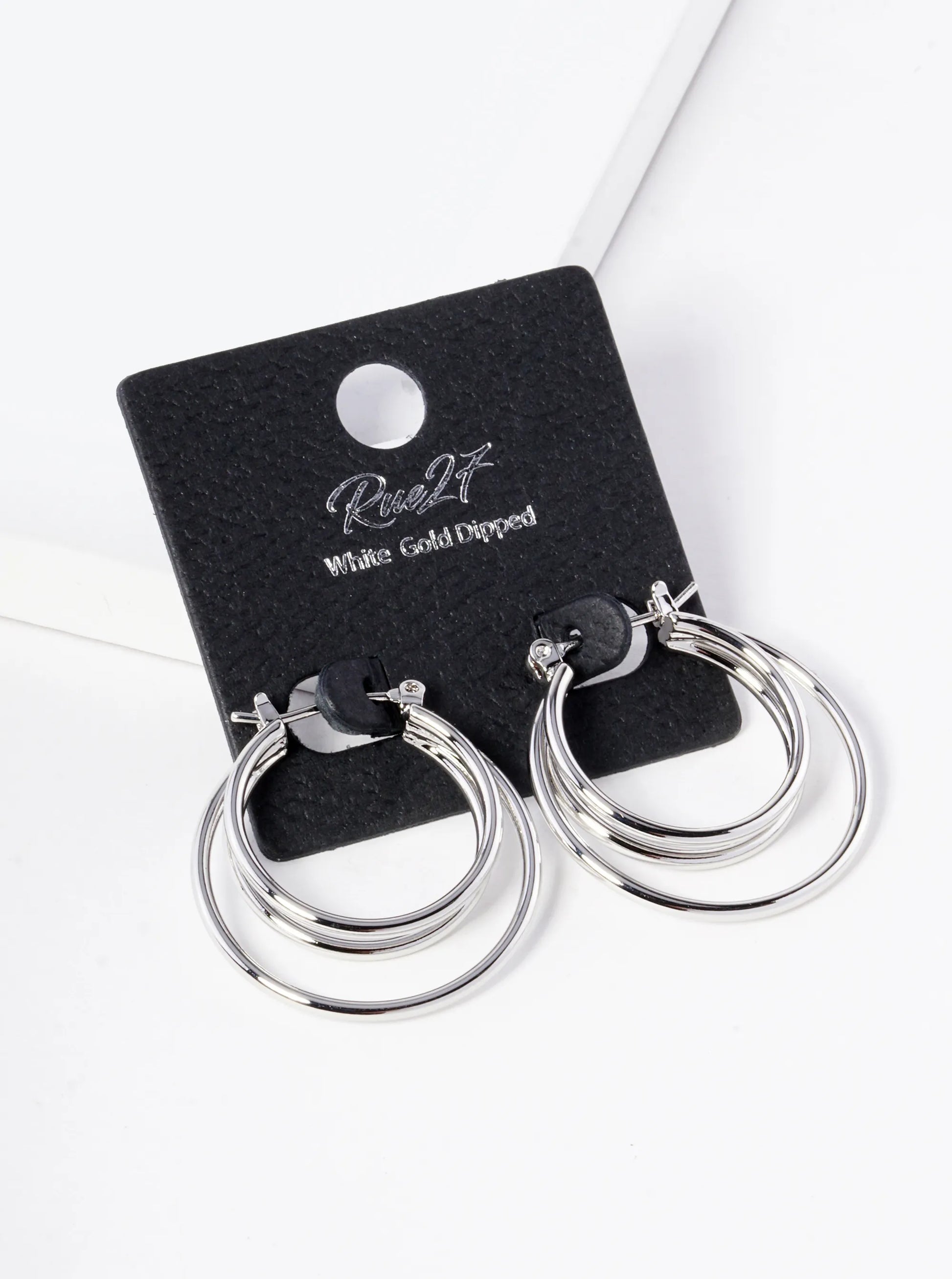 18K Gold Dipped 3 Circles Brass Pin Catch Hoop Earrings
