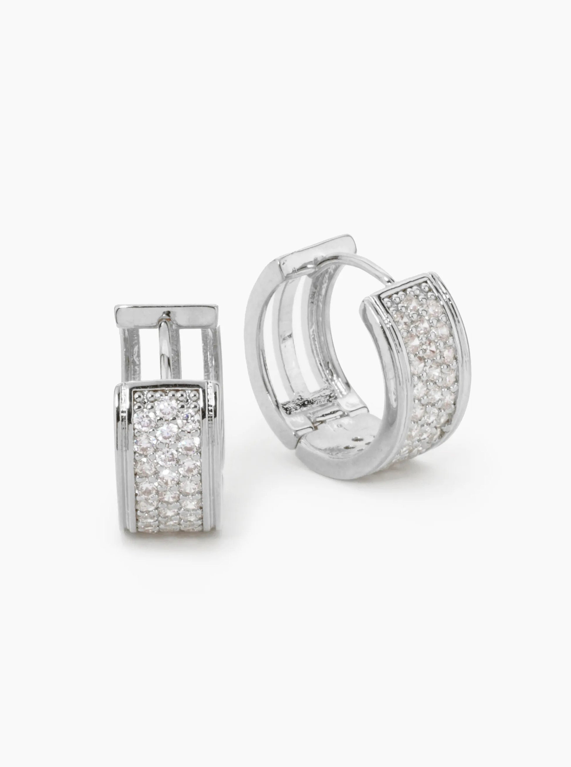 18K Gold Dipped 3 Line Micro Pave Set Cubic Zirconia 17mm Hoop Earrings