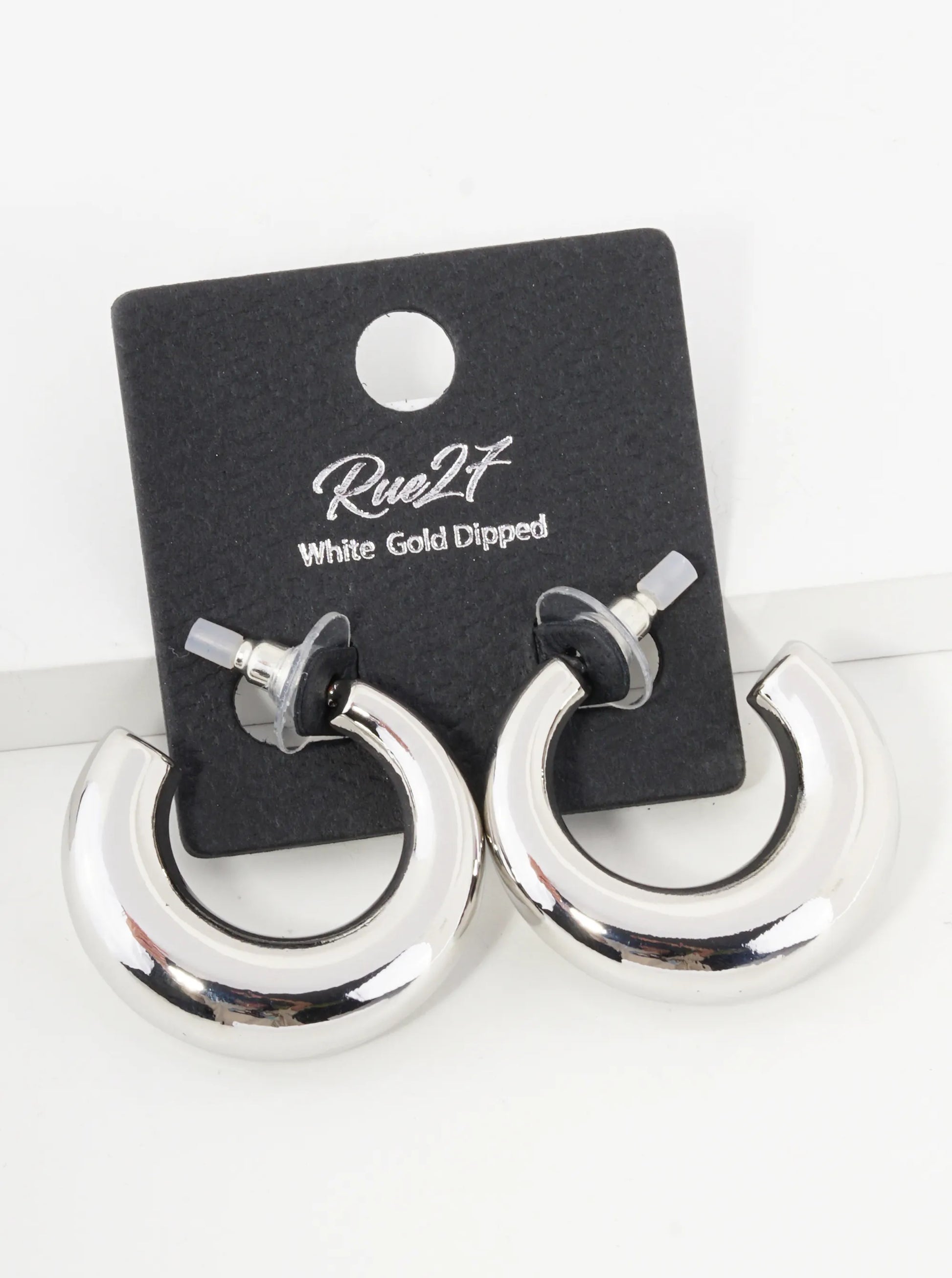 "Add A Touch Of Luxury To Your Look With Our Chunky Tapered Hoop Earrings, Crafted From High-quality Brass And Dipped In 18K Gold For A Lustrous Shine. Available In Three Stunning Variations Of Gold, White Gold, And Rose Gold For Maximum Versatility And Style."