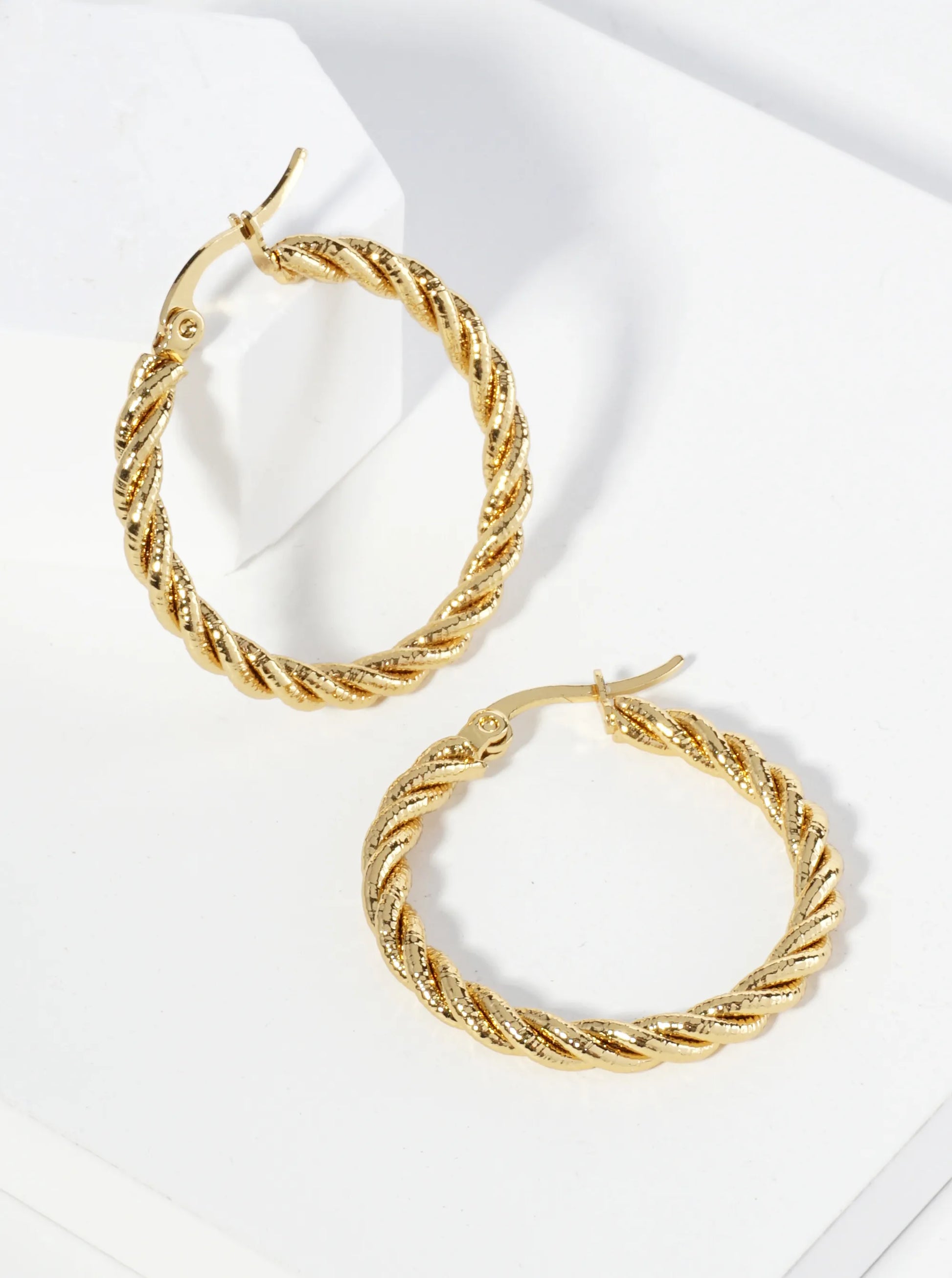 18K Gold Dipped 30mm Stainless Steel Rope Chain Hoop Earrings