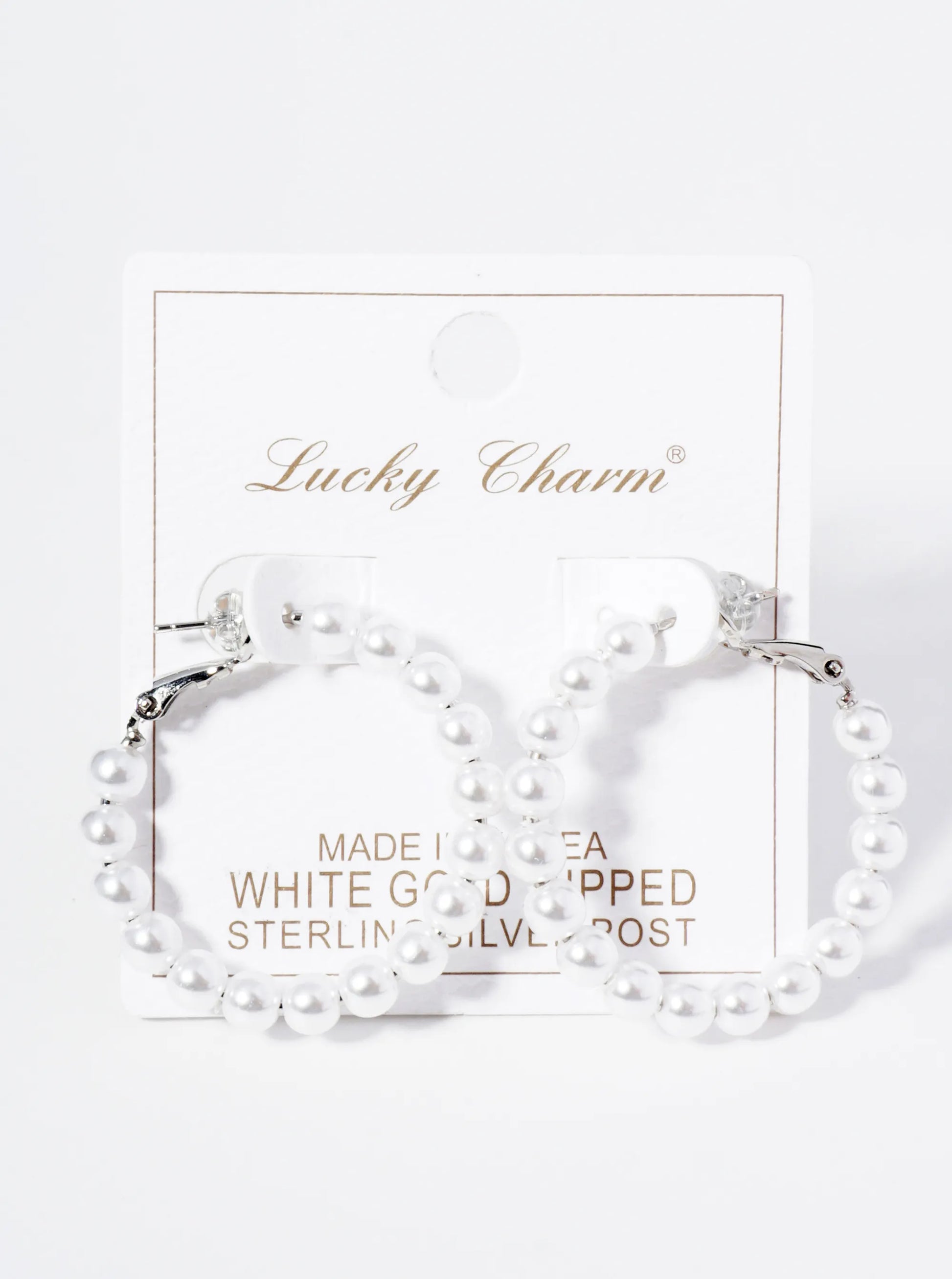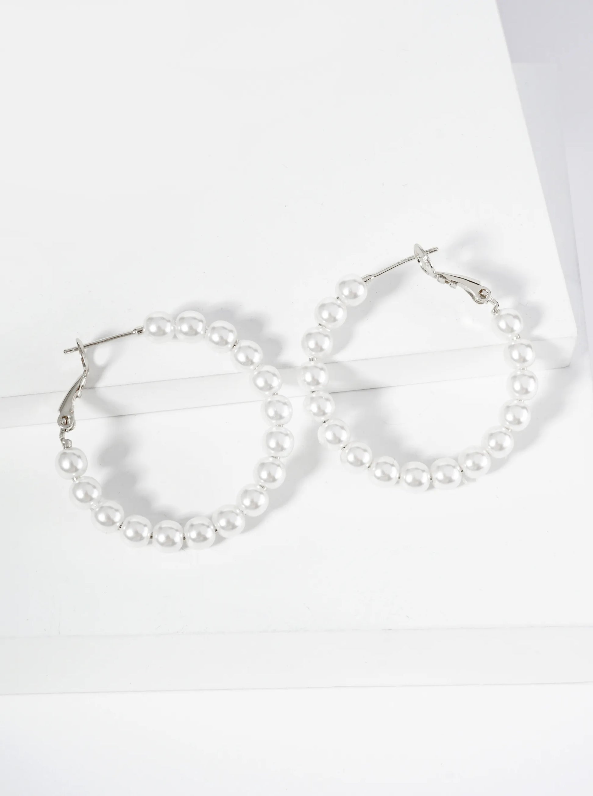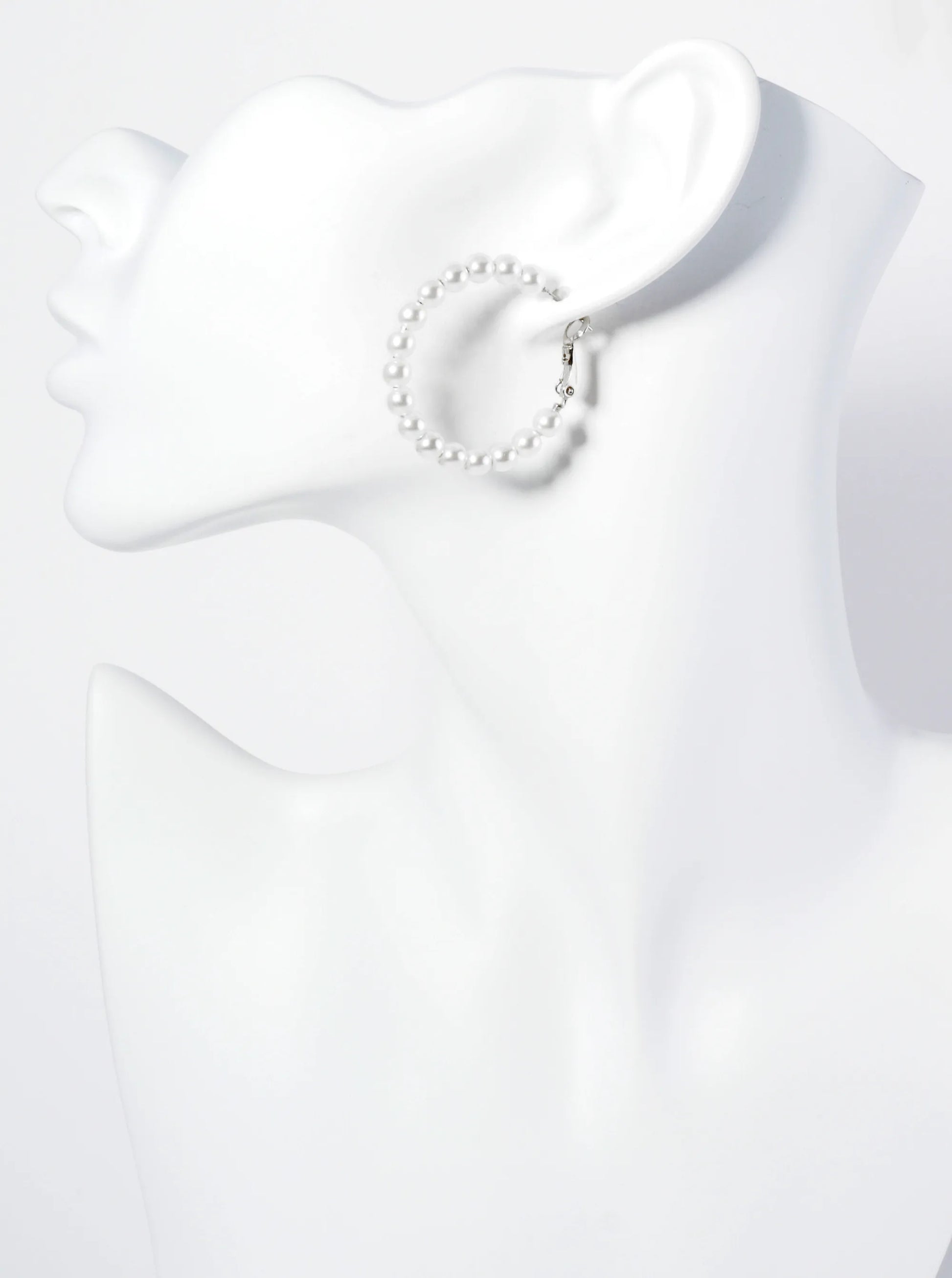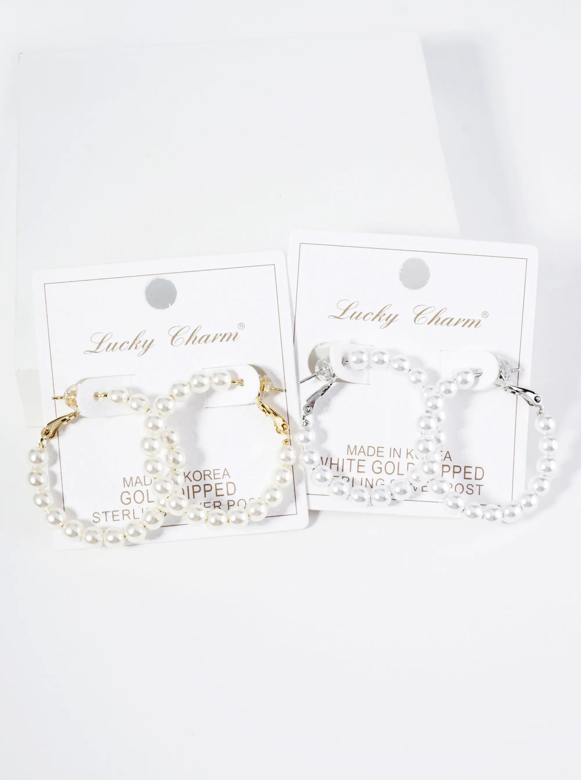 18K Gold Dipped 35mm Pearl Beaded Hoop Earrings With Latch Back Closure