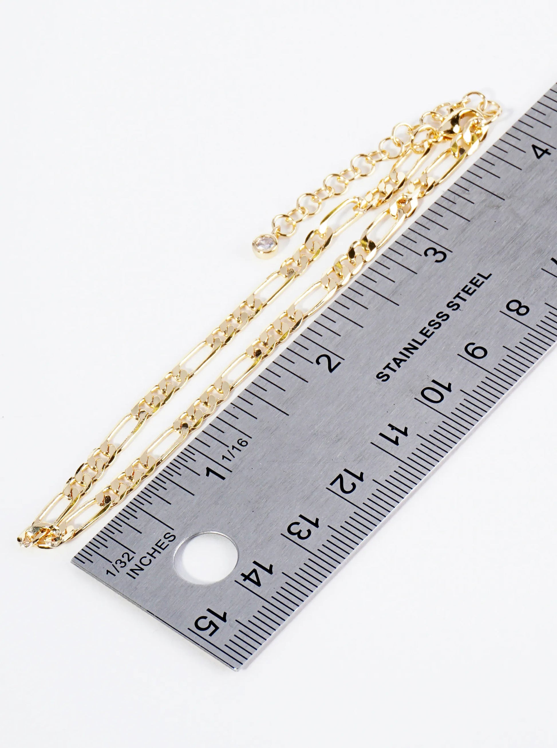 18K Gold Dipped 3mm Brass Figaro Link Chain Anklet