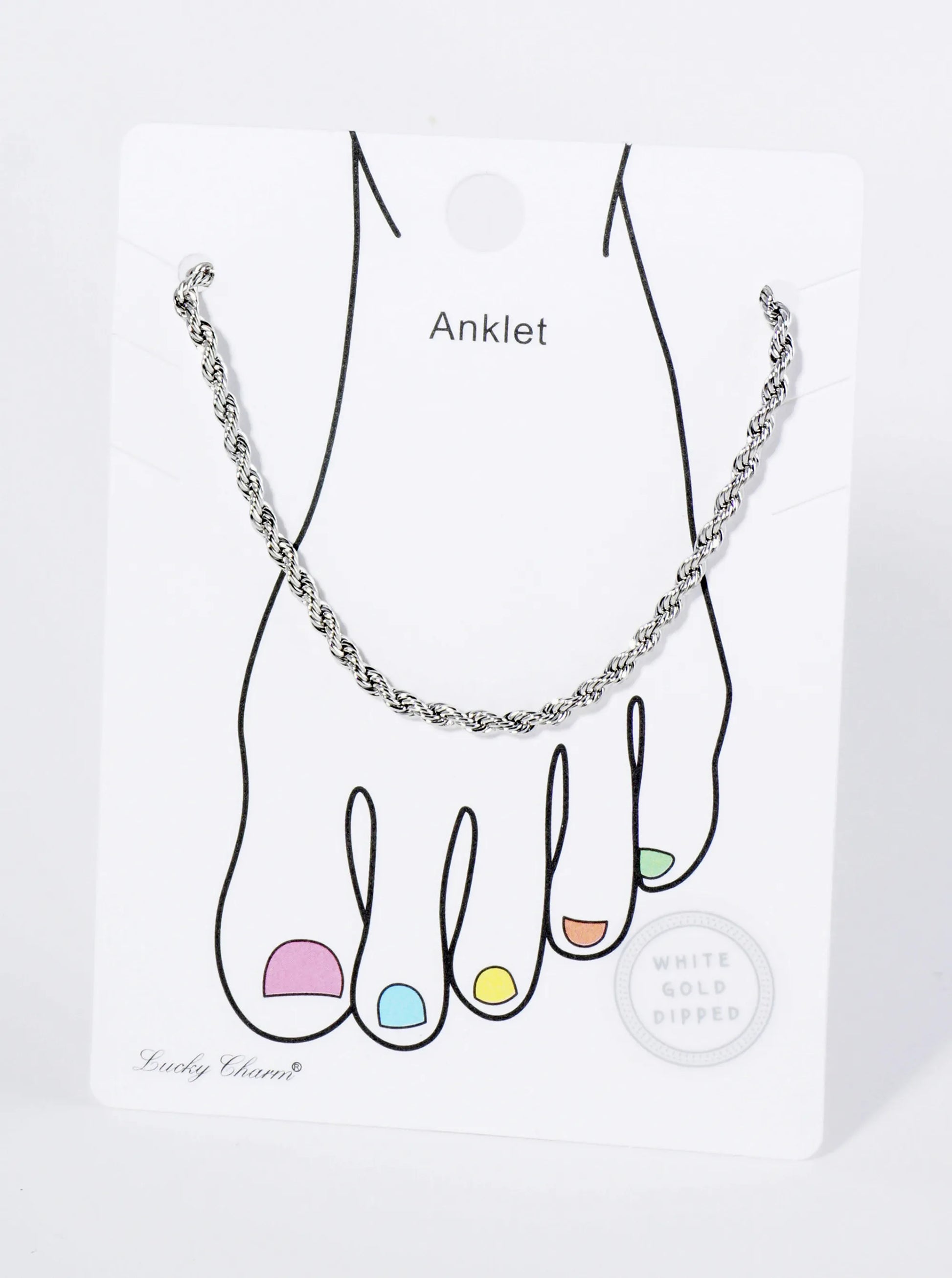 This Anklet Has A Rich, Golden Shine That Adds A Touch Of Luxury To Any Outfit. The Chain Features A Rope Design With Intricate Texturing, Giving It A Unique And Eye-catching Appearance. The 3mm Width Is Delicate Yet Noticeable, Making It Perfect For Adding Subtle Sophistication To Your Look. The Anklet Is Adjustable, Ensuring A Comfortable And Secure Fit For Various Ankle Sizes, And It Closes With A Reliable Clasp.