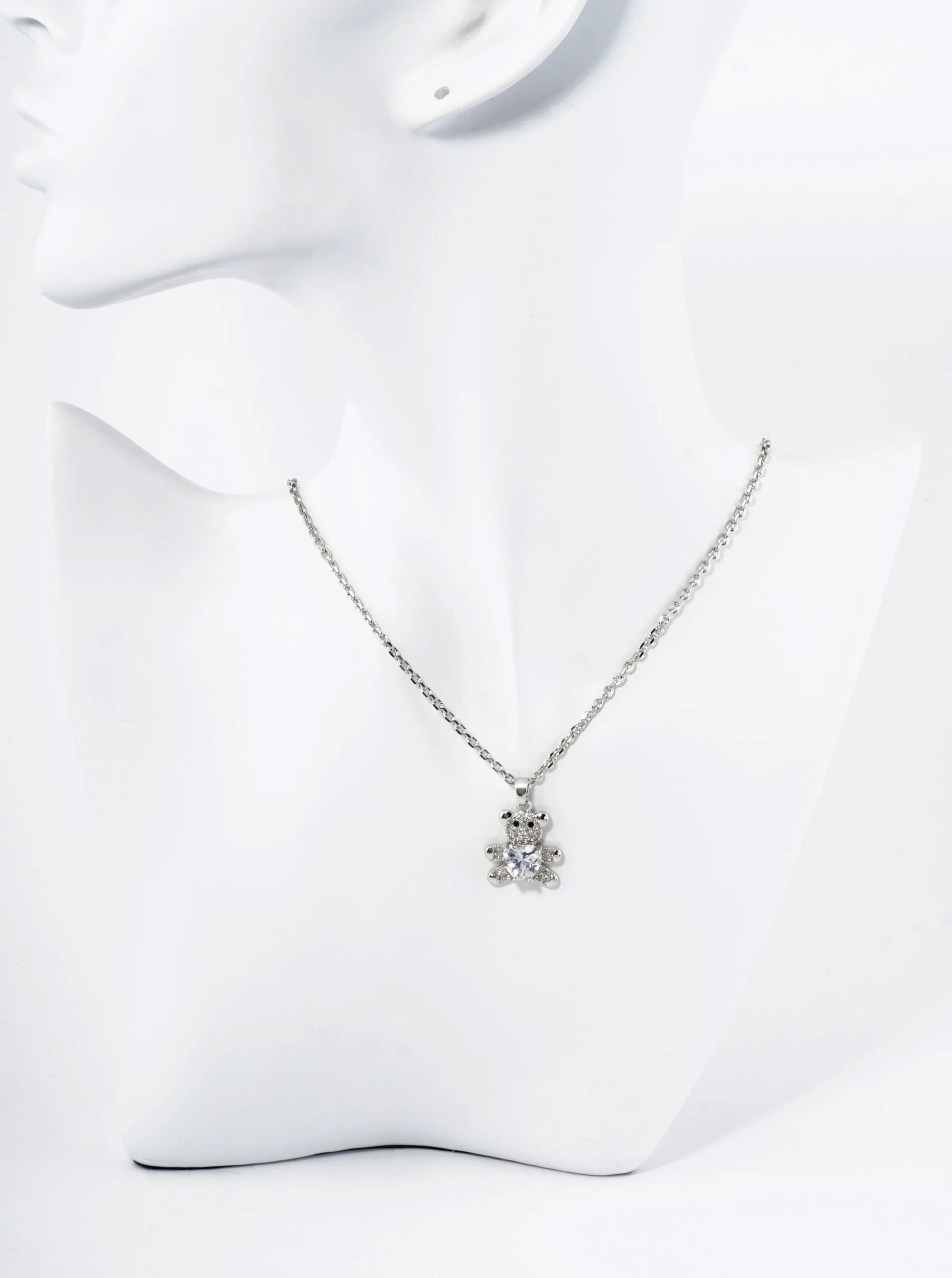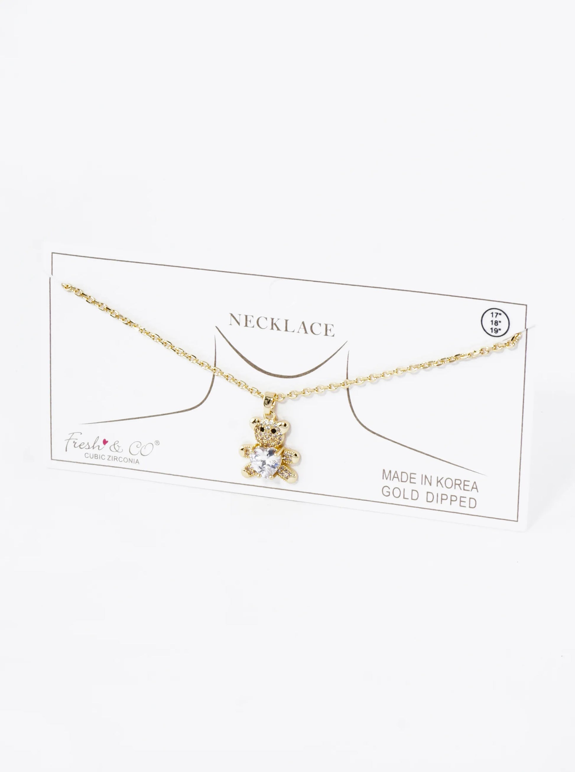 18K Gold Dipped 4-Prong Heart CZ Stone Pave Set Teddy Bear Pendant Necklace
