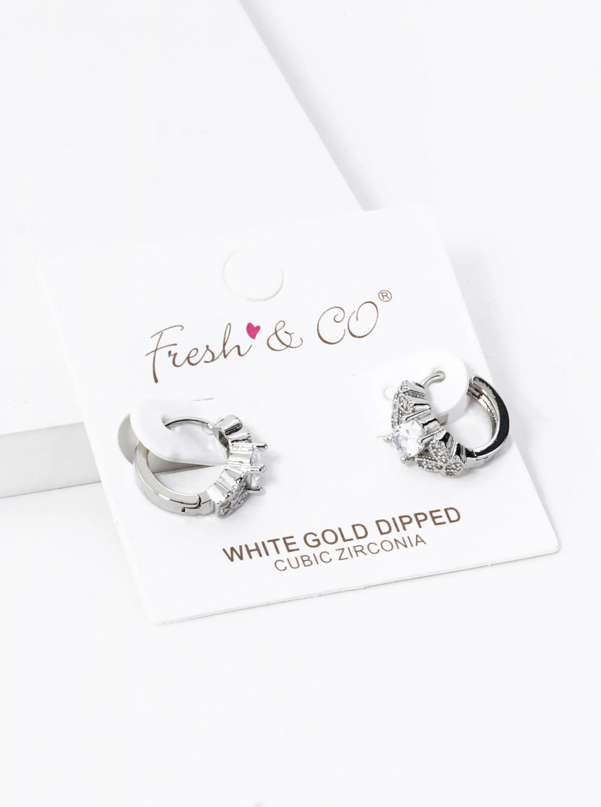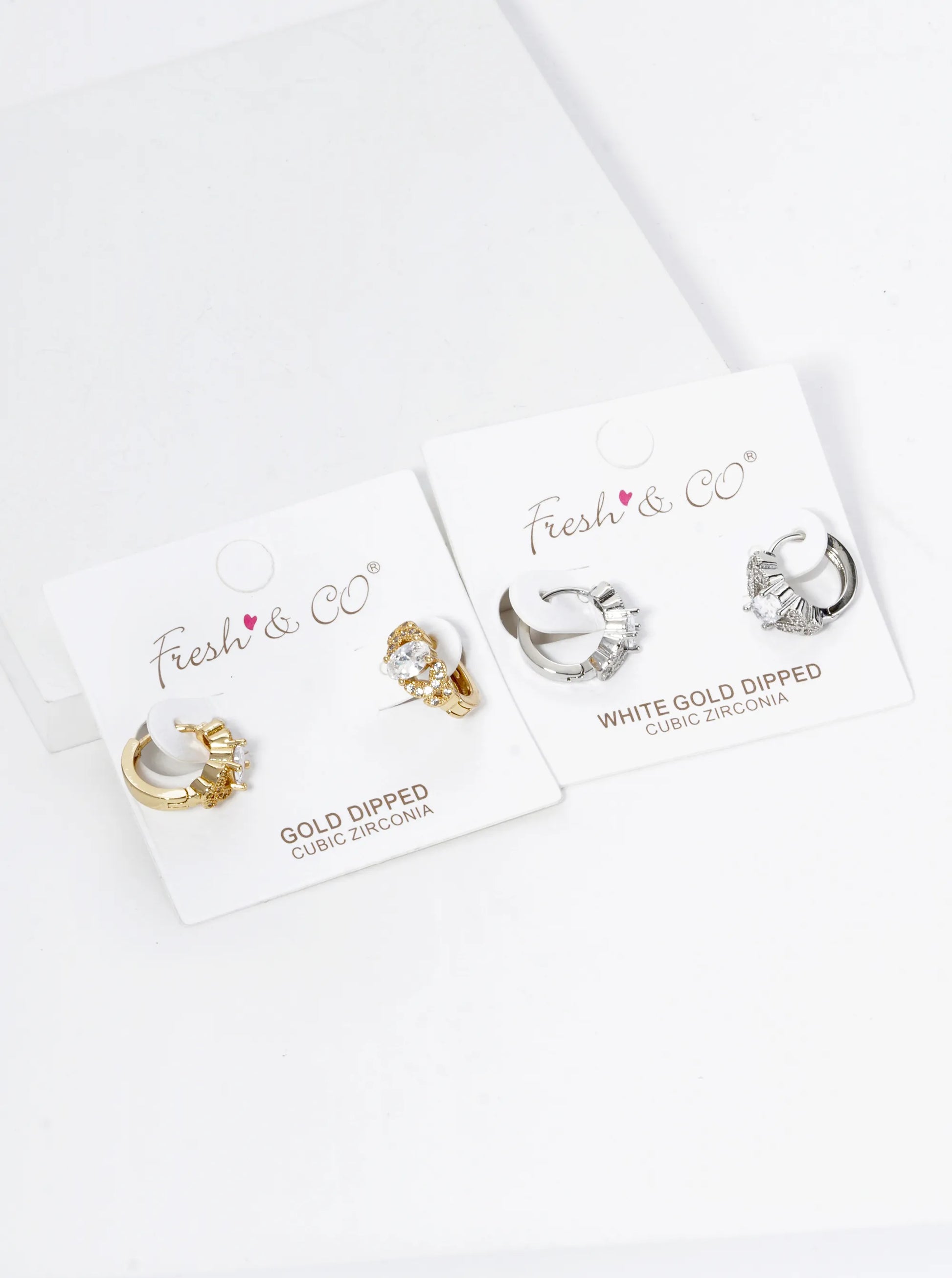Add A Touch Of Luxury To Your Style With Our 18K Gold Dipped Huggie Hoop Earrings. Crafted With High-quality Brass And Adorned With Sparkling Oval Cubic Zirconia, Available In Stunning Gold And Sleek Rhodium Variations.