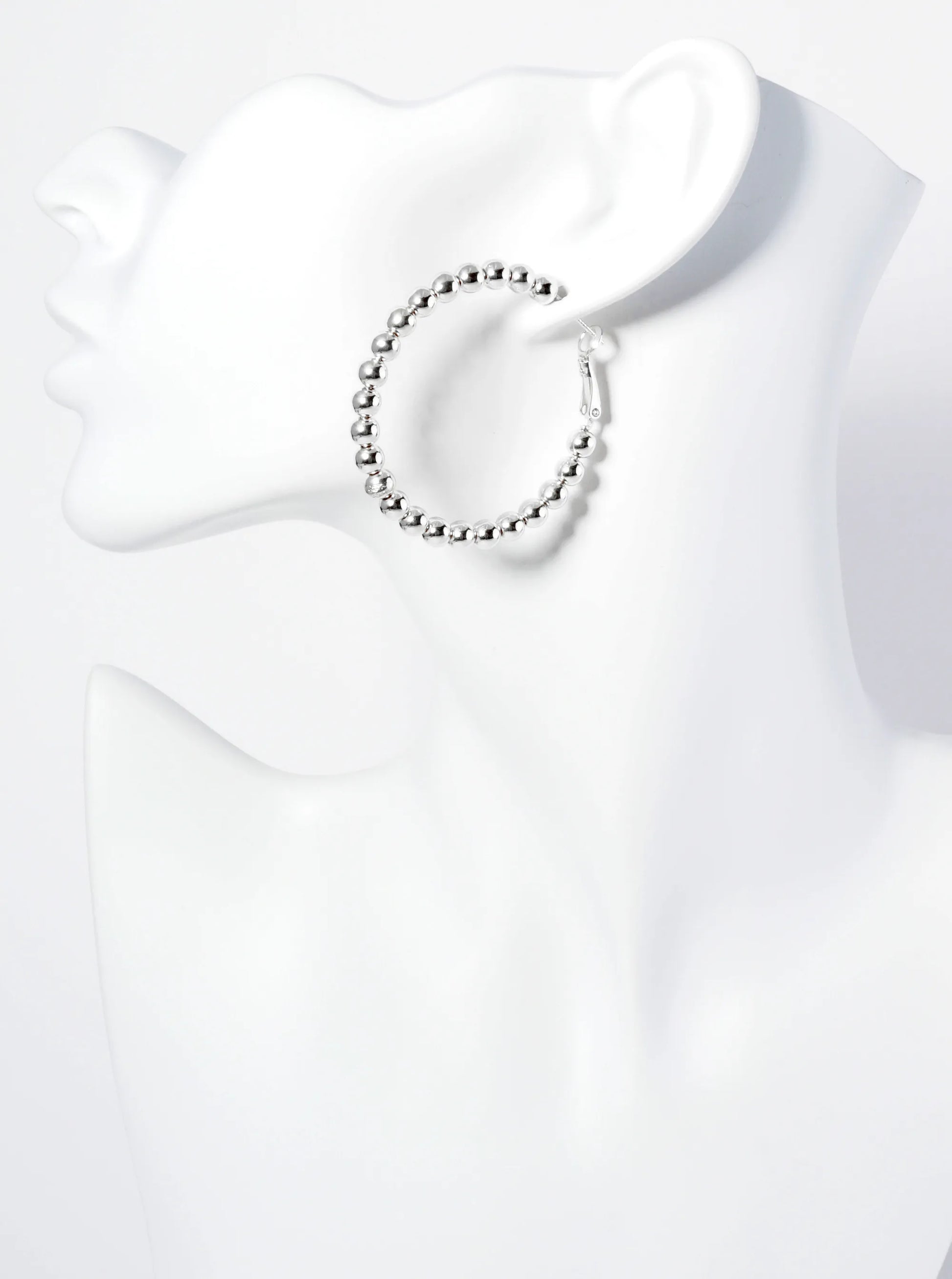 18K Gold Dipped 45mm Brass Ball Beaded Hoop Earrings With Latch Back Closure