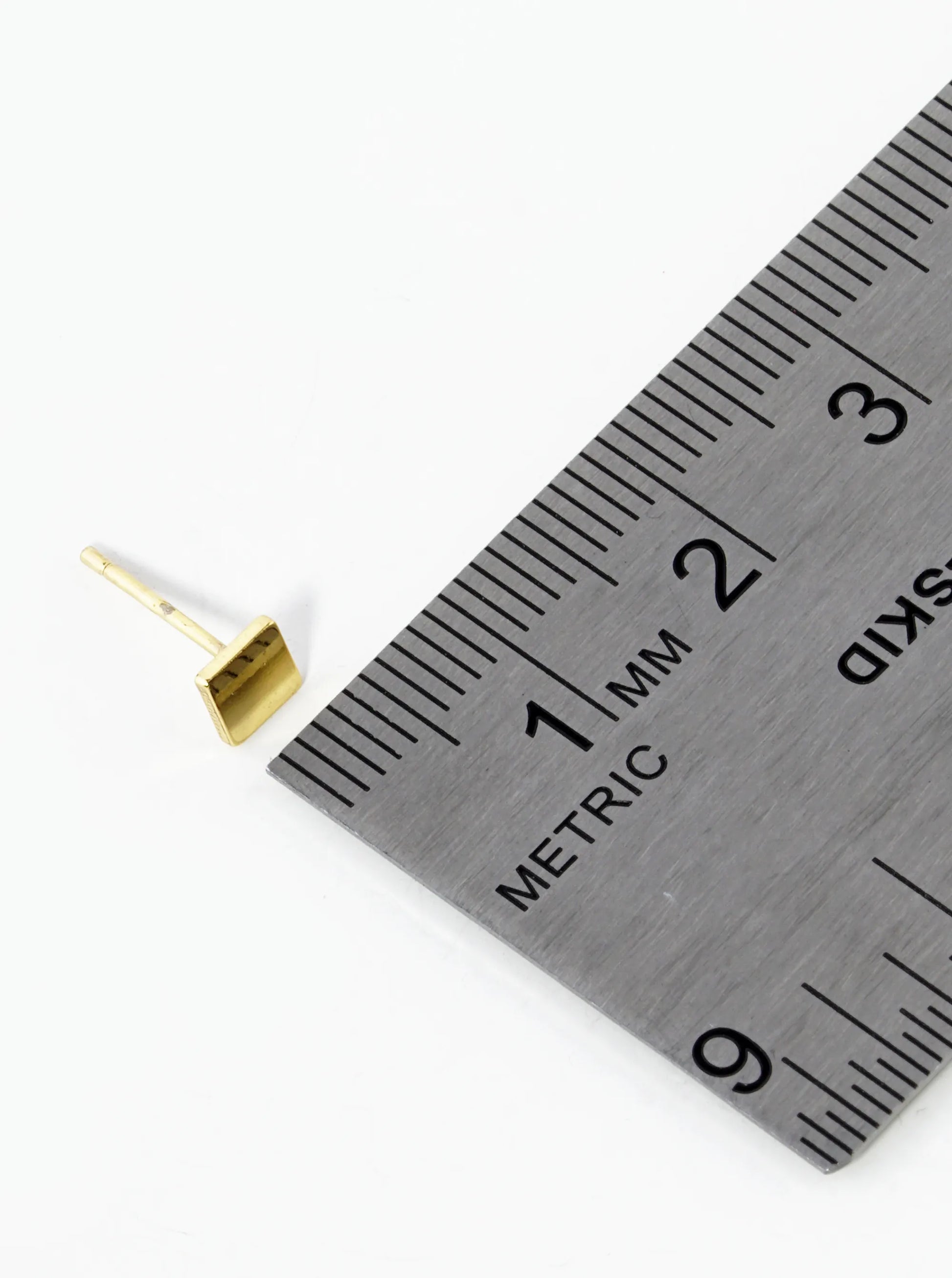18K Gold Dipped 4mm Flat Square Stud Earrings