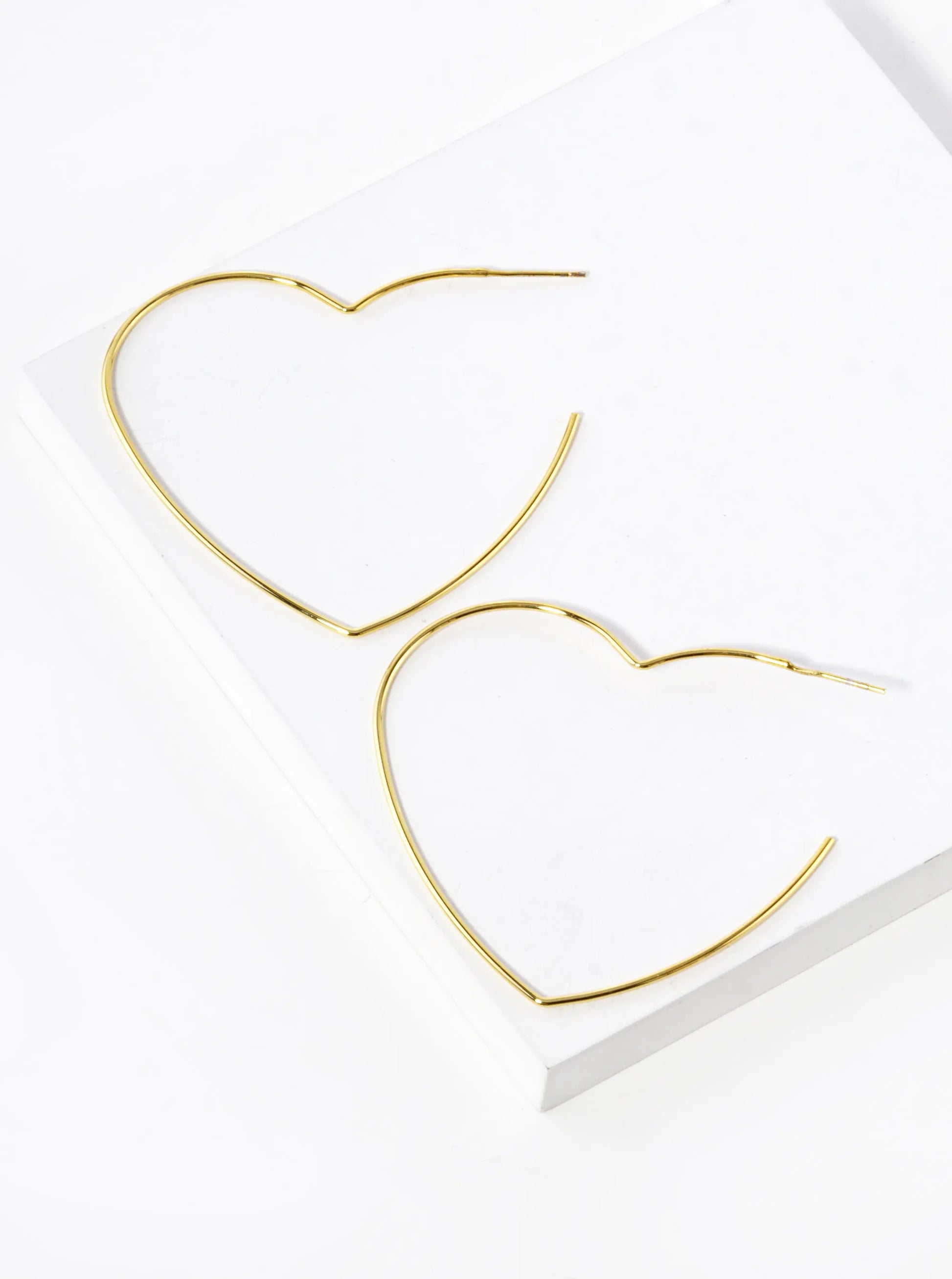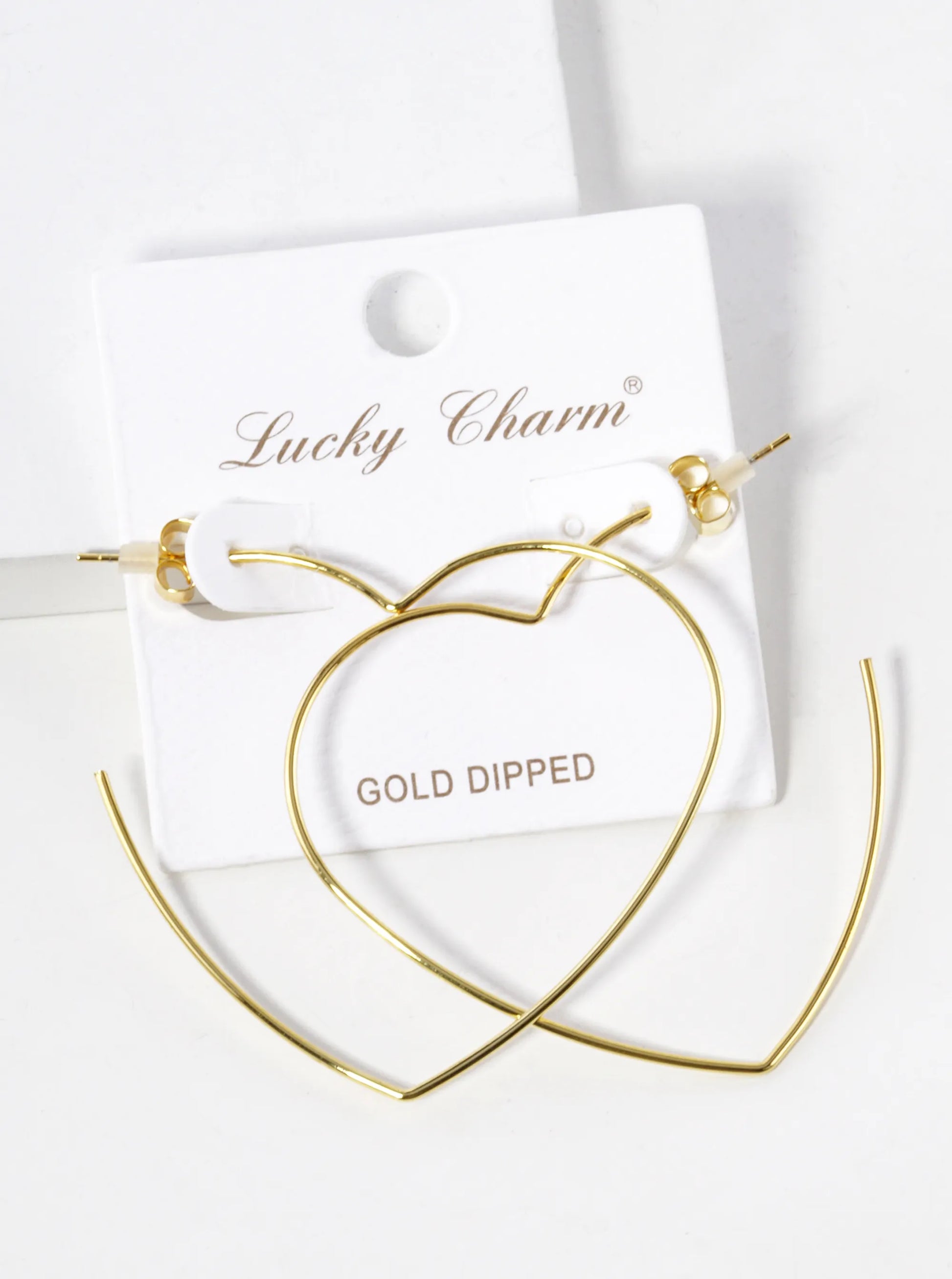 18K Gold Dipped 50mm Heart Shape Lightweight Open Hoop Earrings