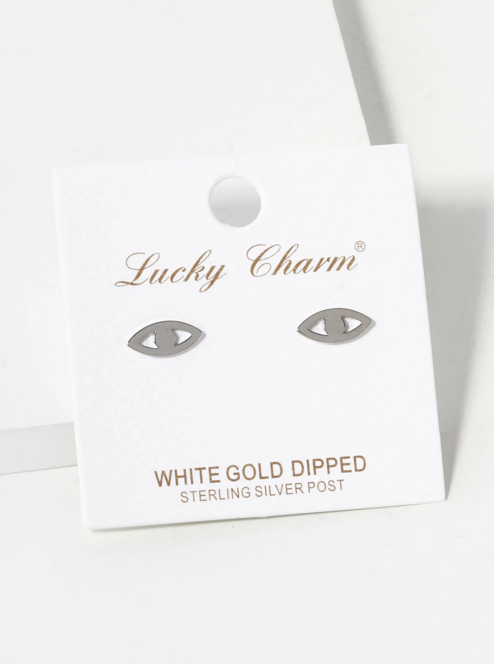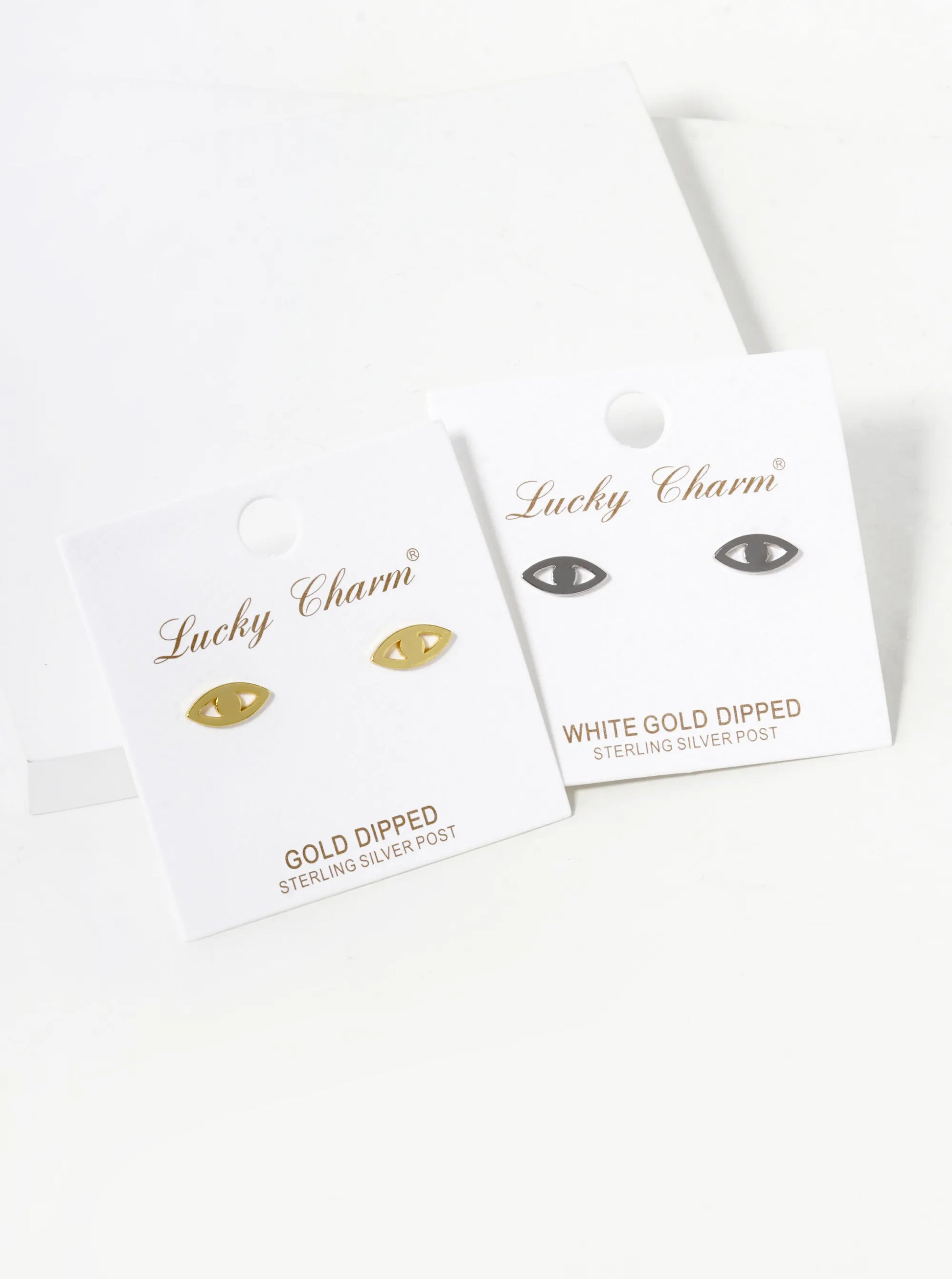 18K Gold Dipped 5mm Brass Evil Eye Sterling Silver Post Stud Earrings