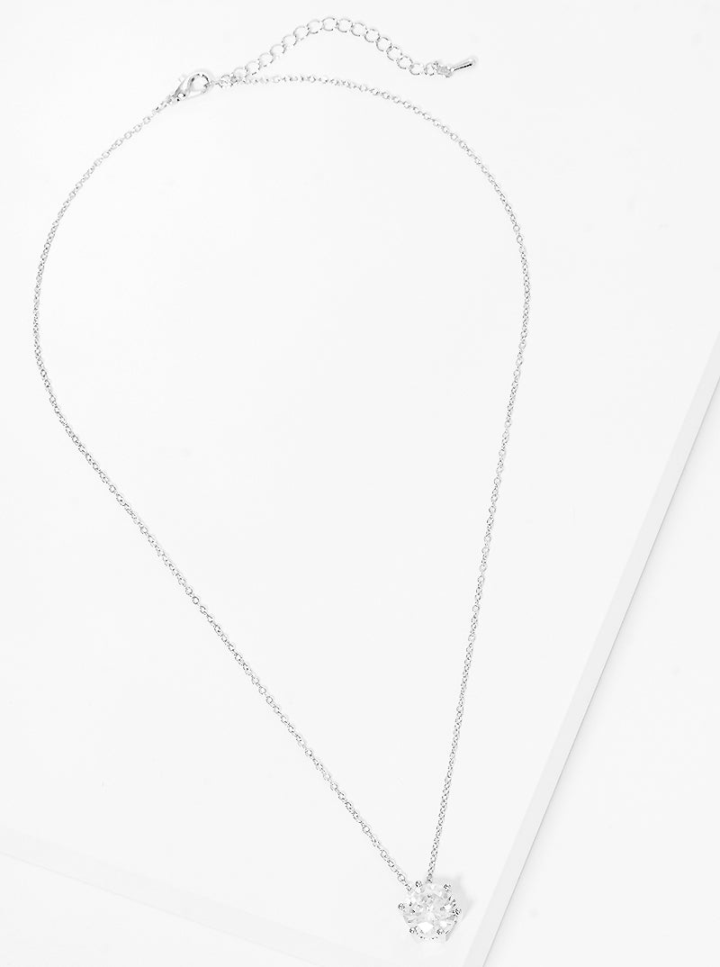The Necklace Features A Stunning Round Cubic Zirconia Stone Set In A 6-prong Crown Setting, Offering A Regal And Elegant Look. The 10mm CZ Stone Sparkles Brilliantly, Resembling A Diamond, While The Necklace's Brass Base Is Dipped In Luxurious 18K Gold, Giving It A Warm, Radiant Finish.