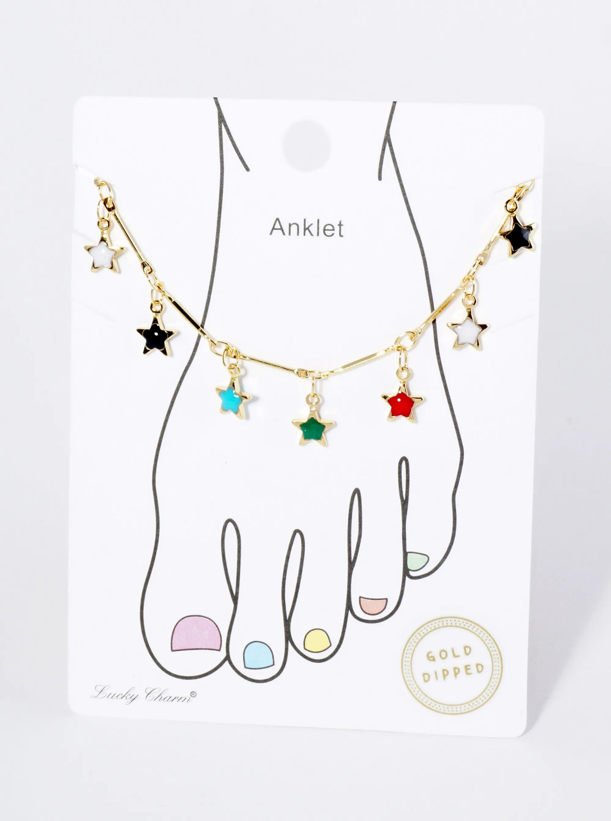 The Combination Of The Lustrous Gold Chain And Colorful Enamel Stars Makes This Anklet A Versatile Accessory That Can Easily Transition From Day To Night. Its Light-hearted Design And Quality Craftsmanship Ensure It Will Be A Cherished Piece In Your Jewelry Collection, Adding A Dash Of Sparkle And Charm To Your Look.