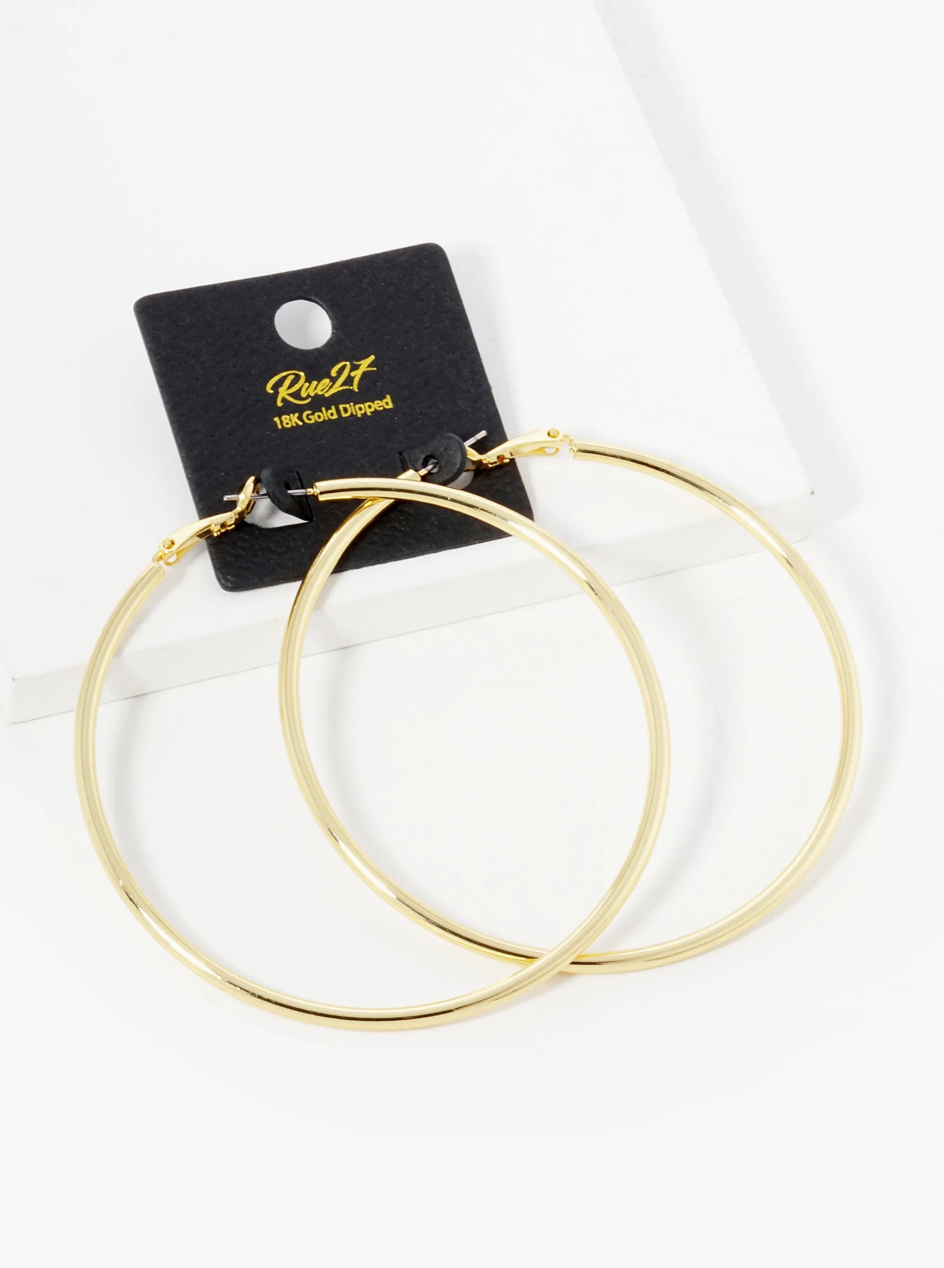 18K Gold Dipped 70mm Brass Spring Latch Hoop Earrings
