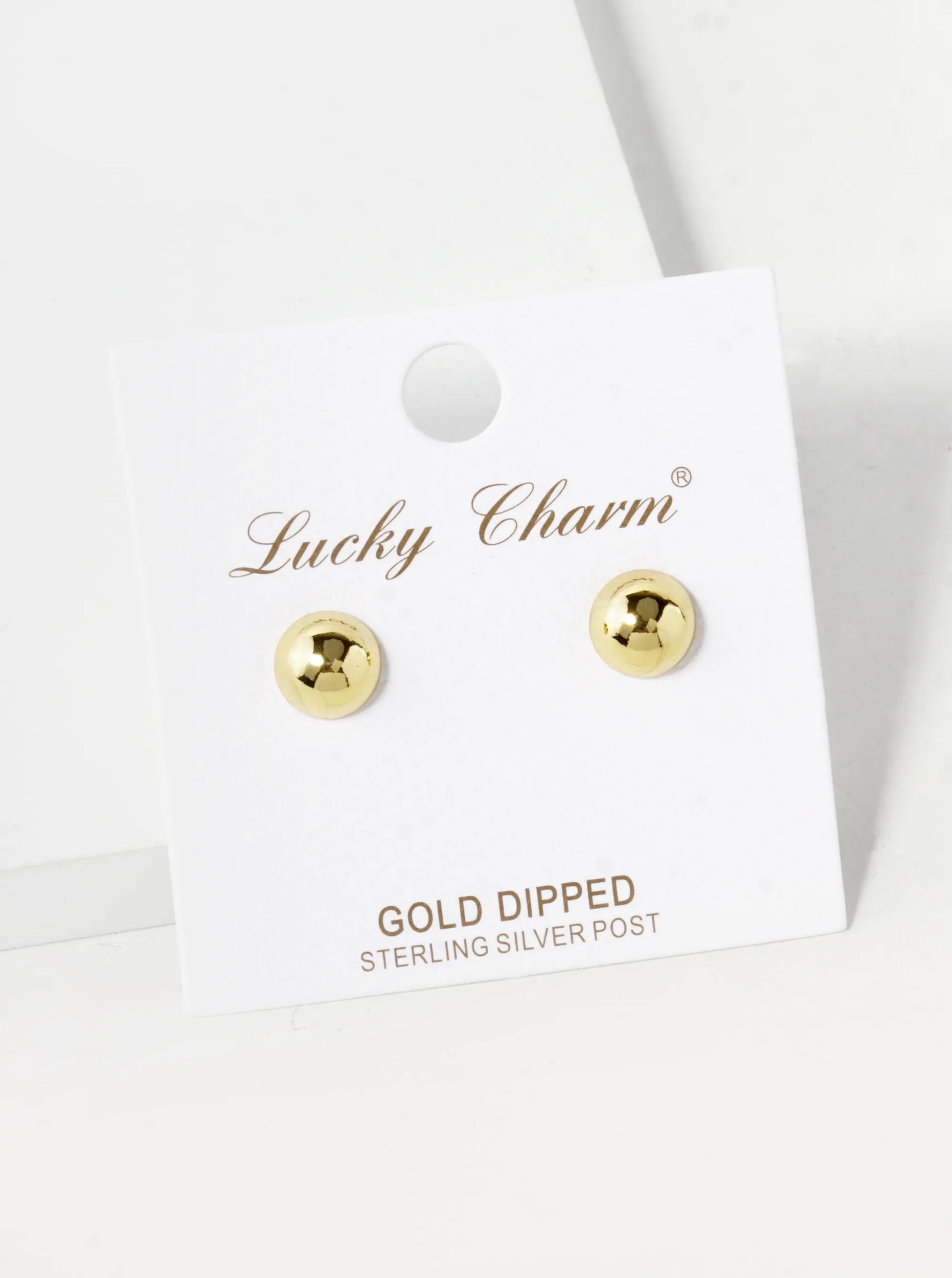 18K Gold Dipped 7mm Brass Half Ball Sterling Silver Post Stud Earrings