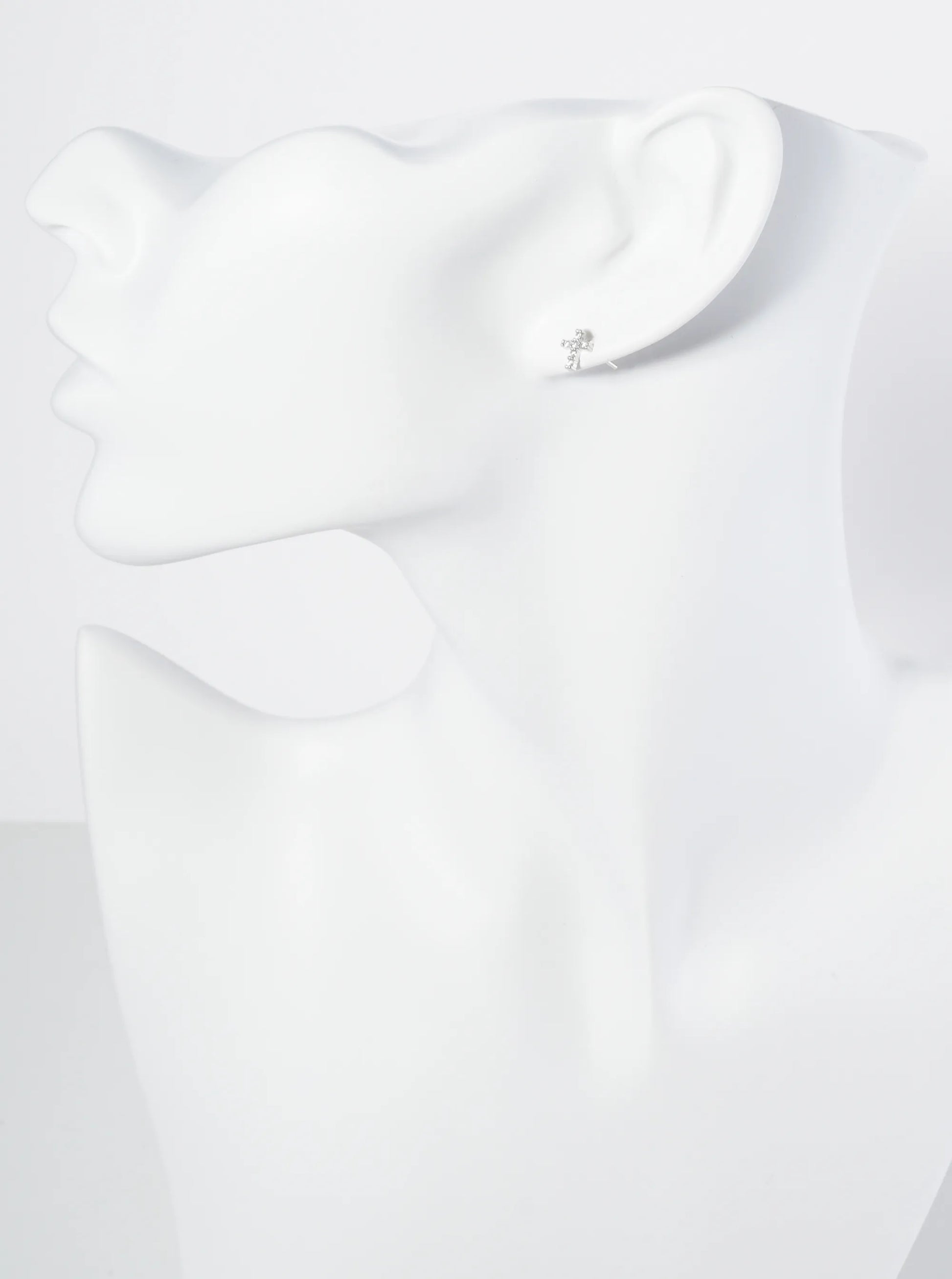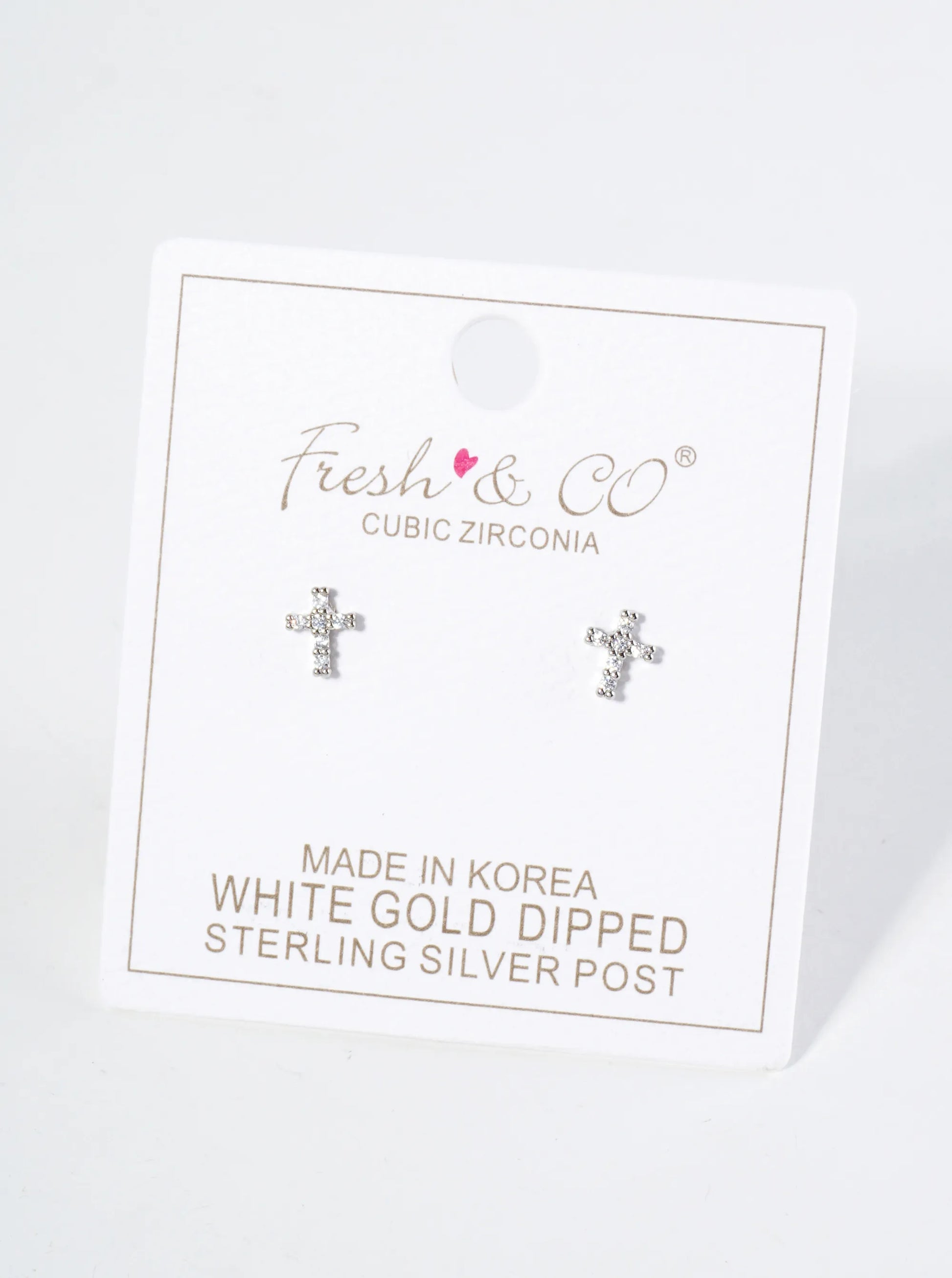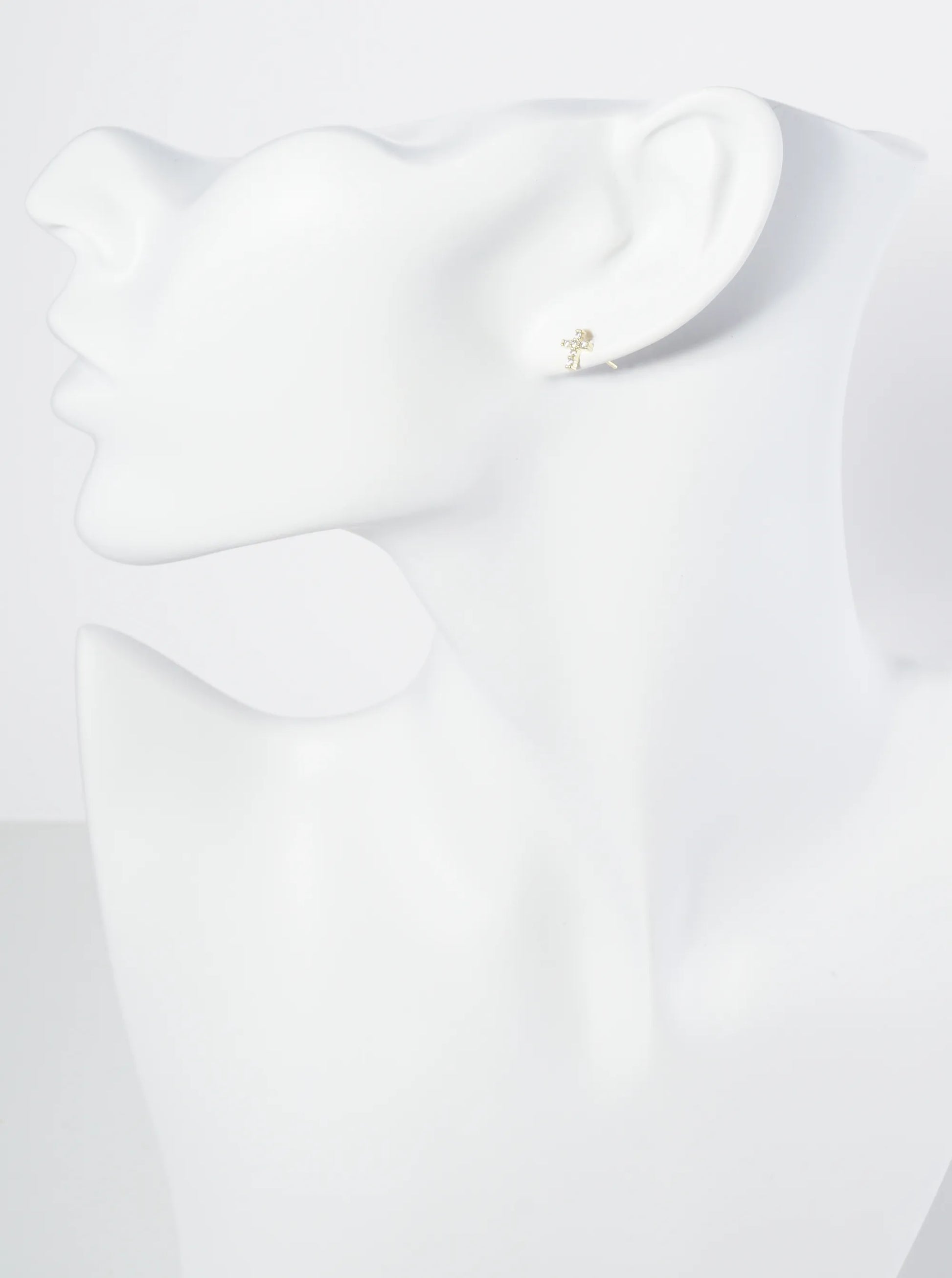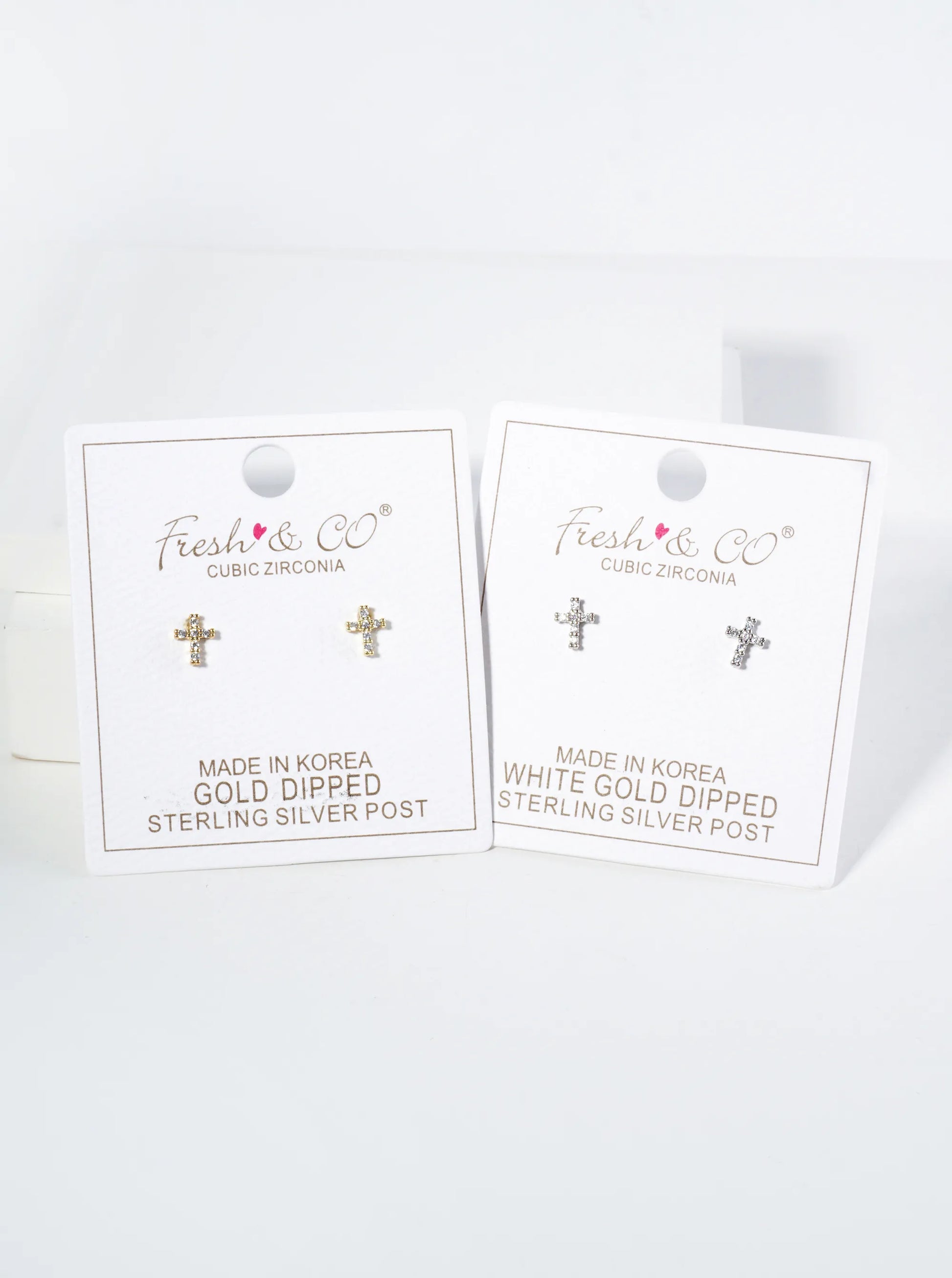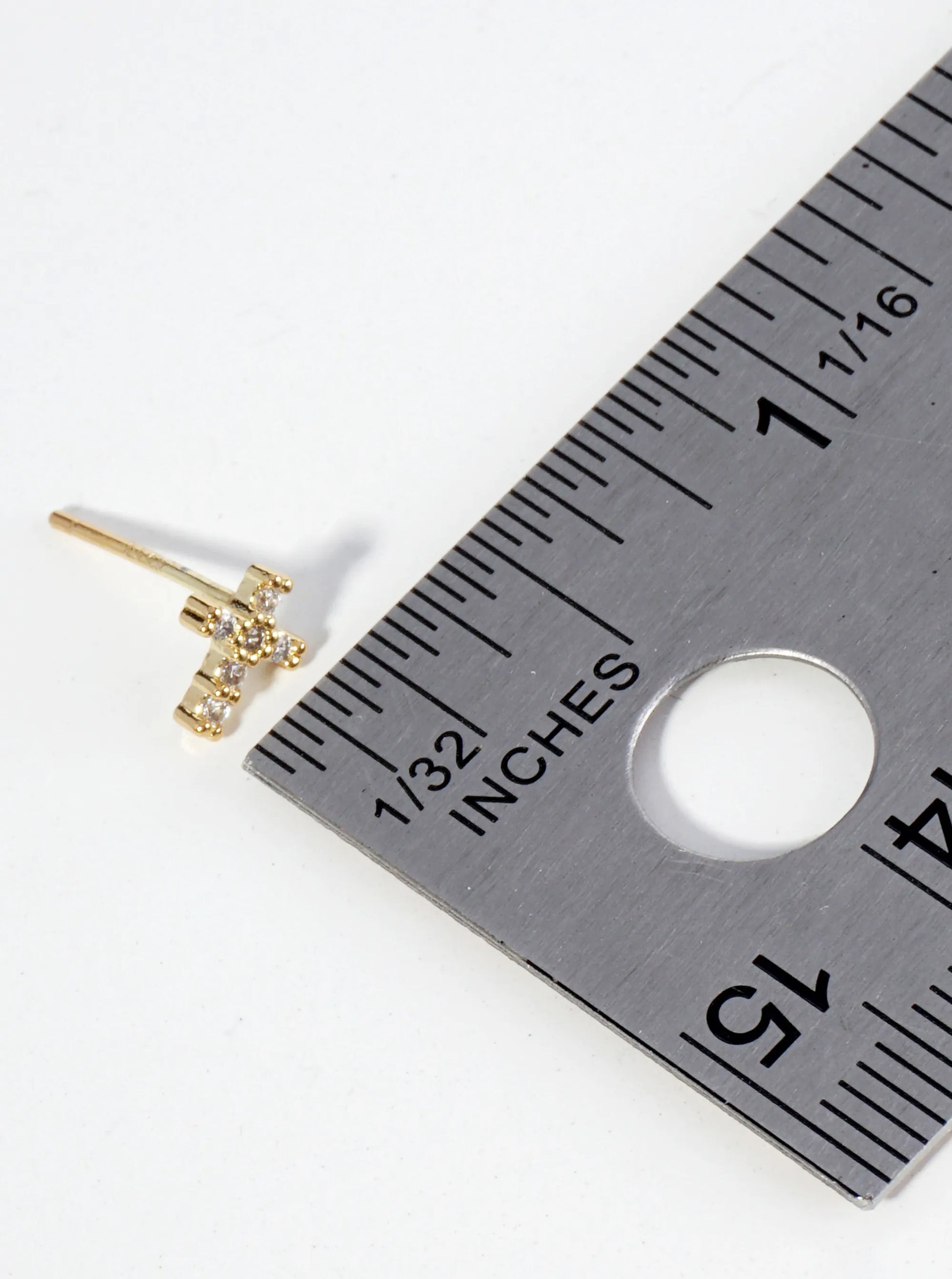 18K Gold Dipped 7mm Tiny Cubic Zirconia Cross Stud Earrings