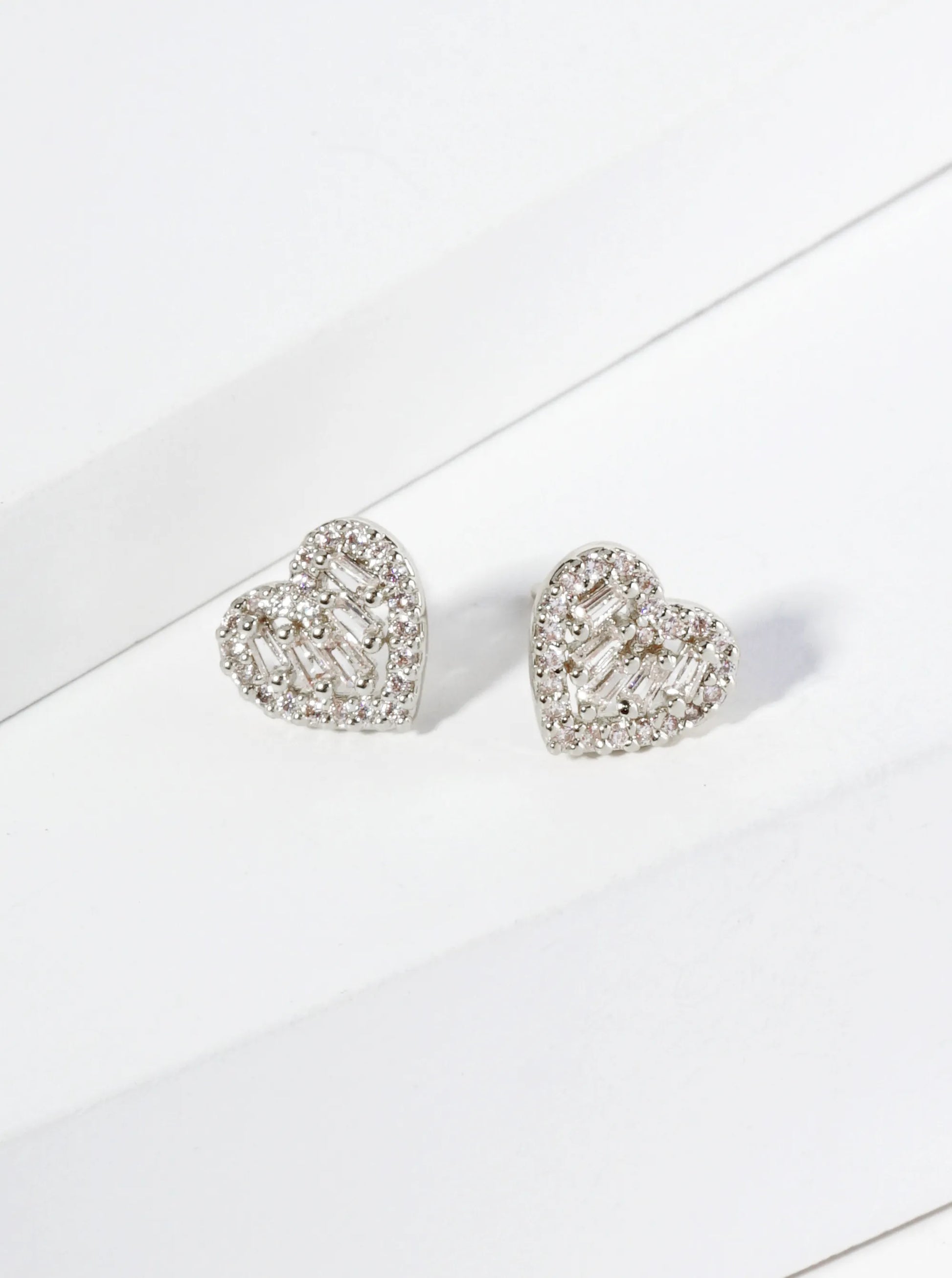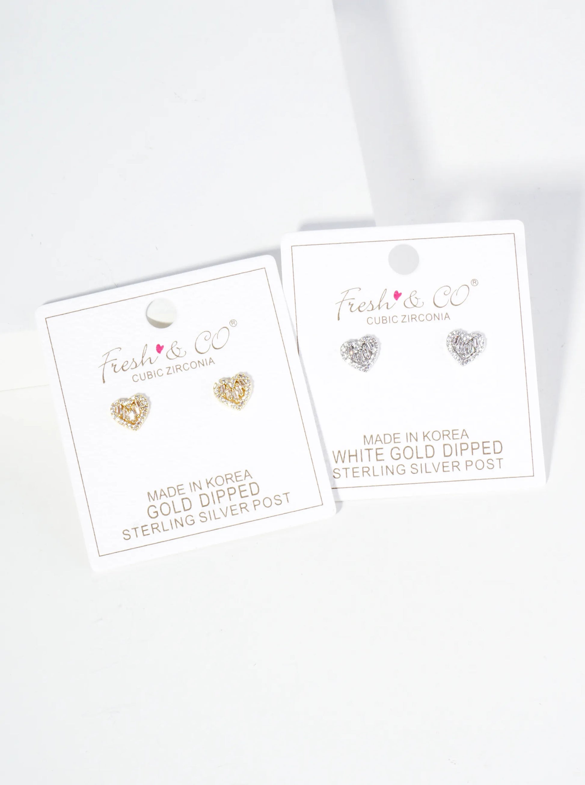 18K Gold Dipped 8mm Dainty Cubic Zirconia Heart Stud Earrings