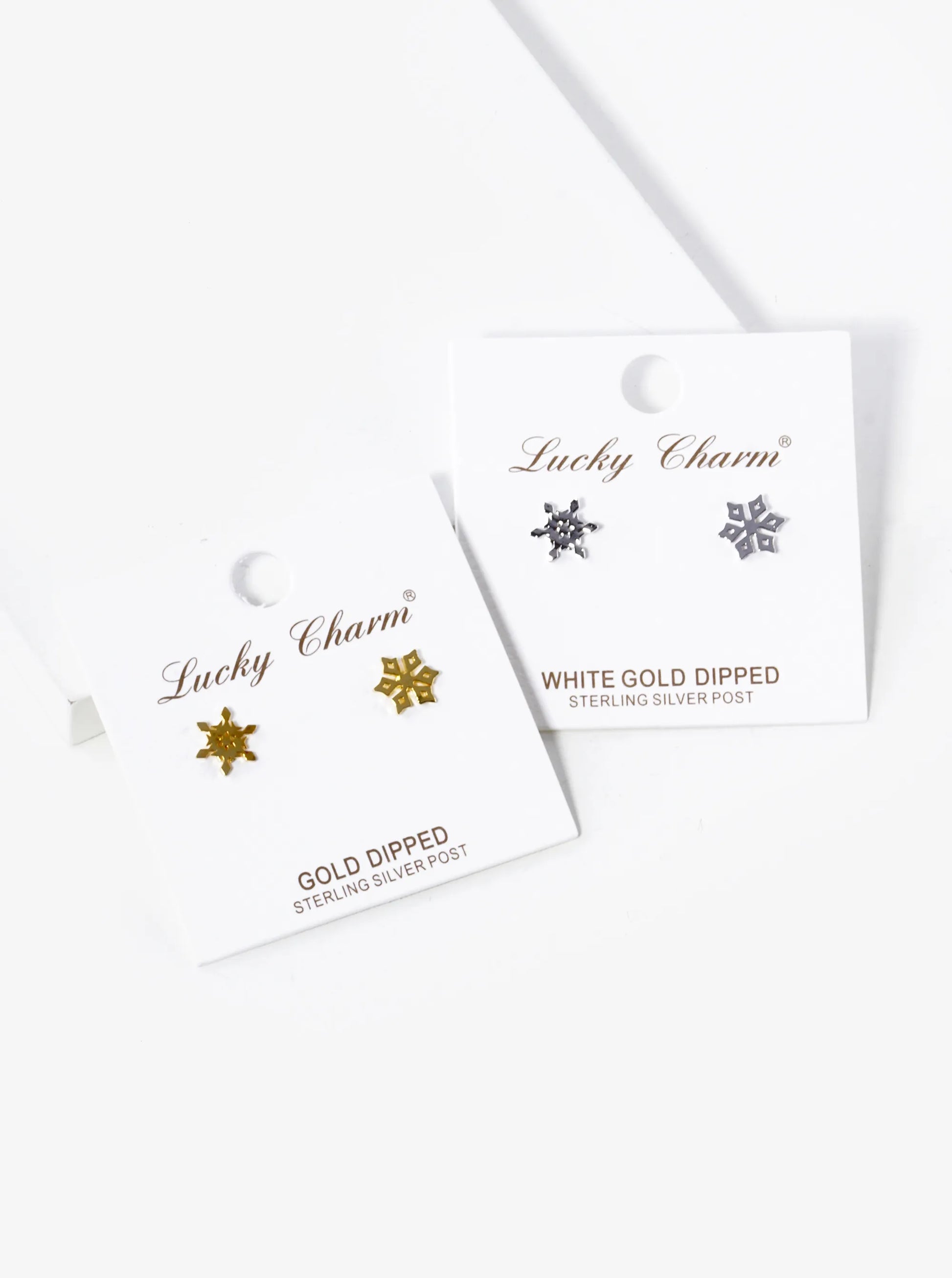 18K Gold Dipped 8mm Flat Brass Snowflake Stud Earrings