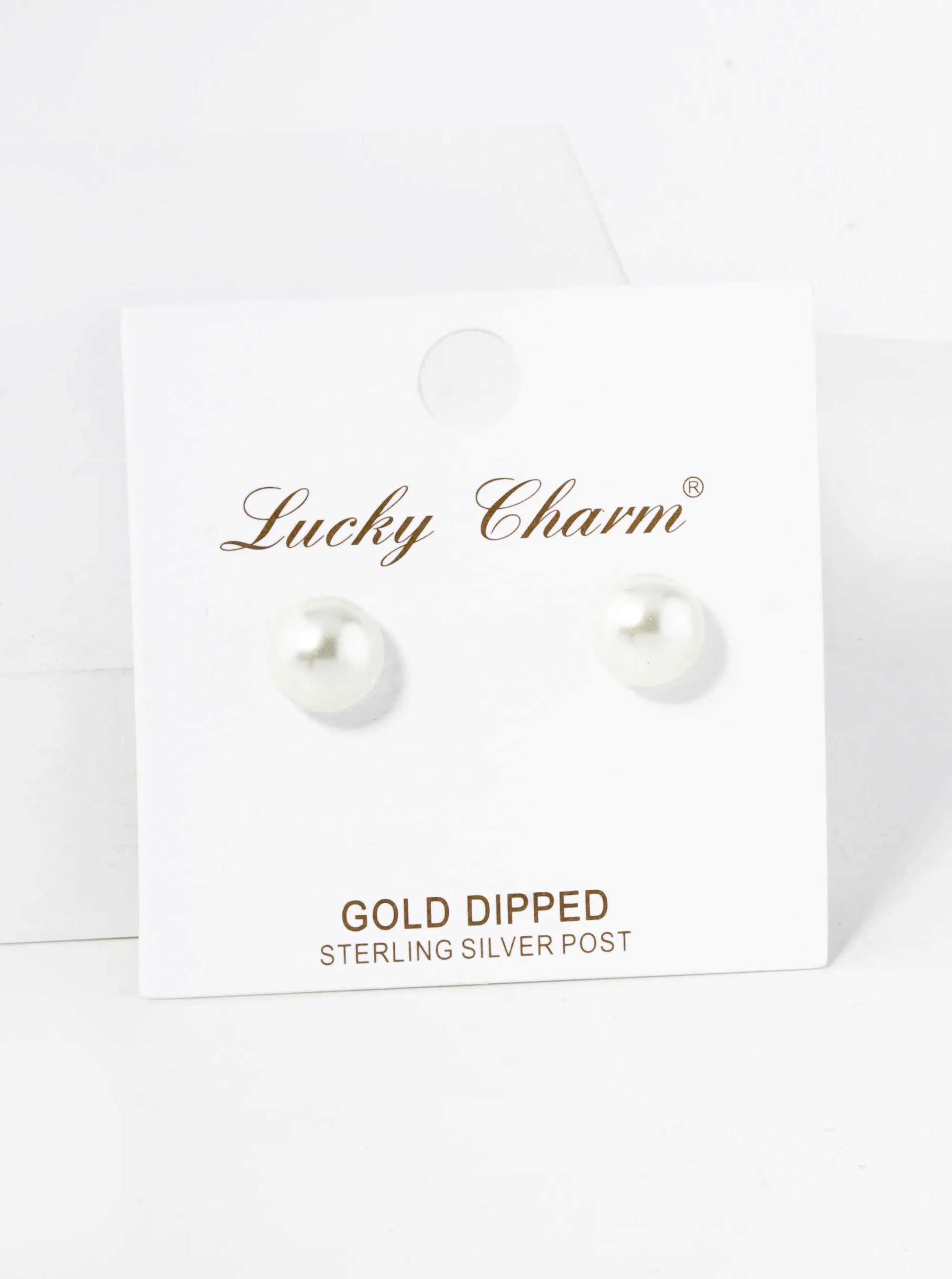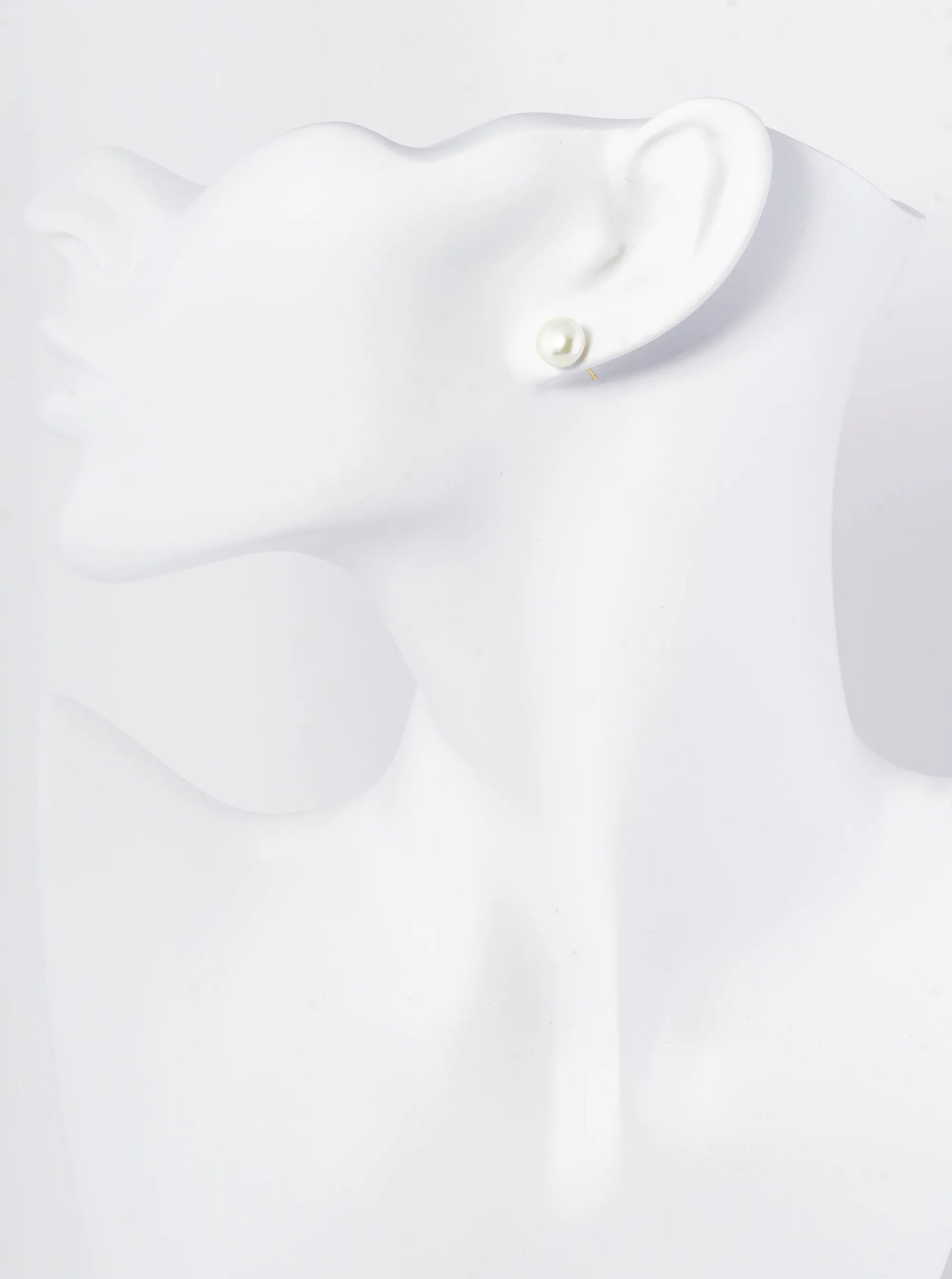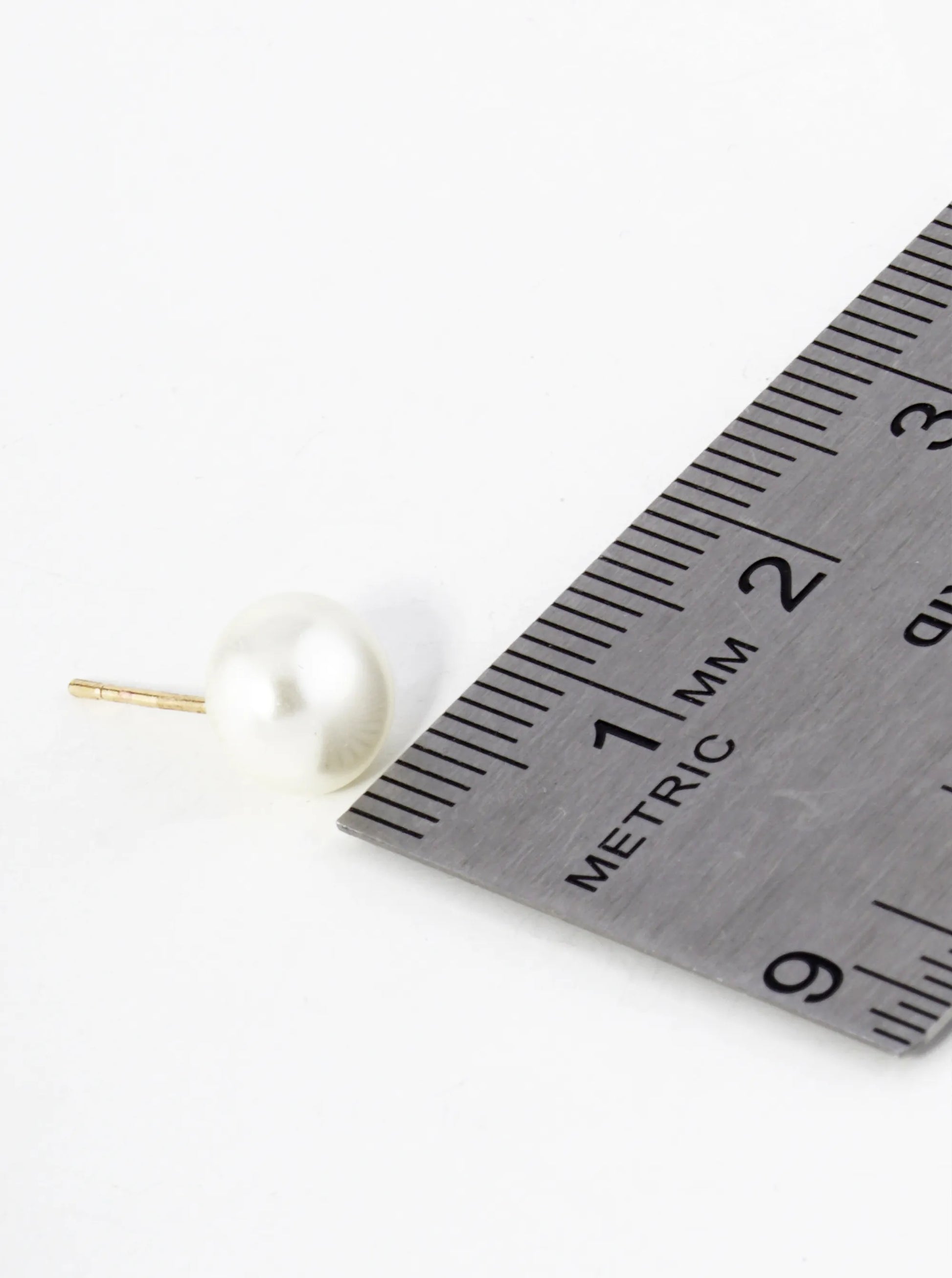 18K Gold Dipped 8mm Pearl Button Stud Earrings