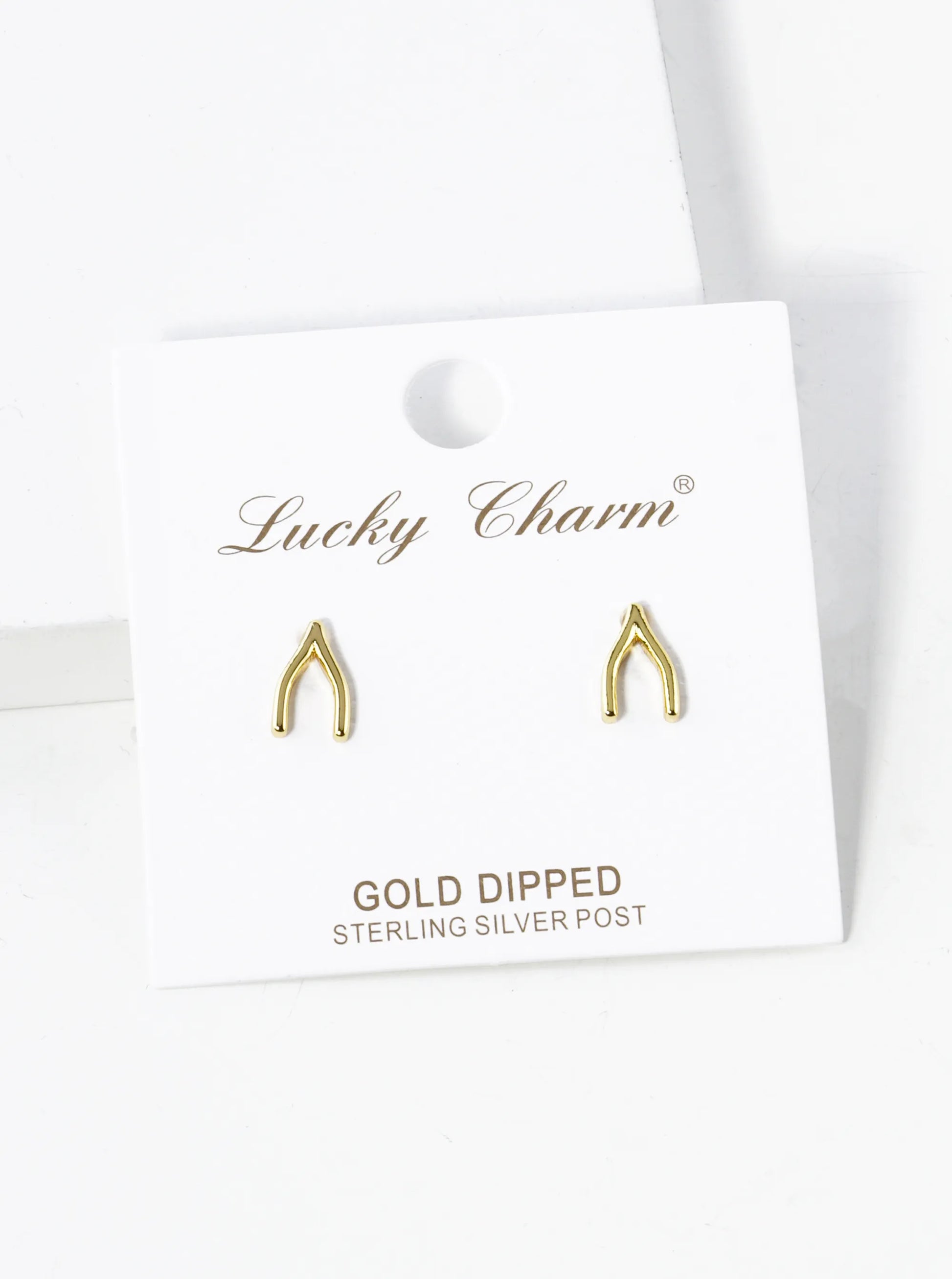 18K Gold Dipped 9mm Wishbone Stud Earrings