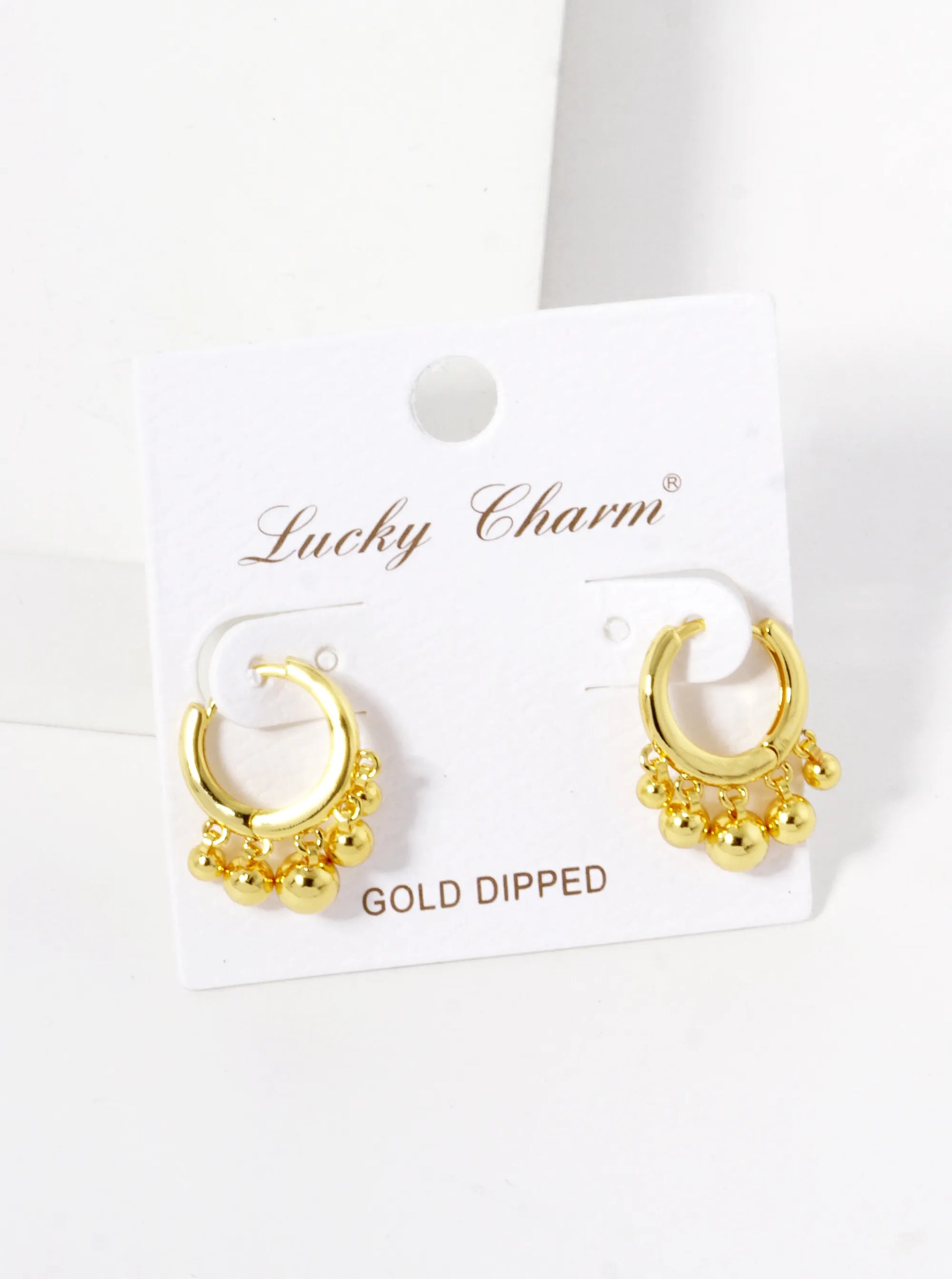 18K Gold Dipped Ball Beads Drop 13mm Huggie Hoop Earrings