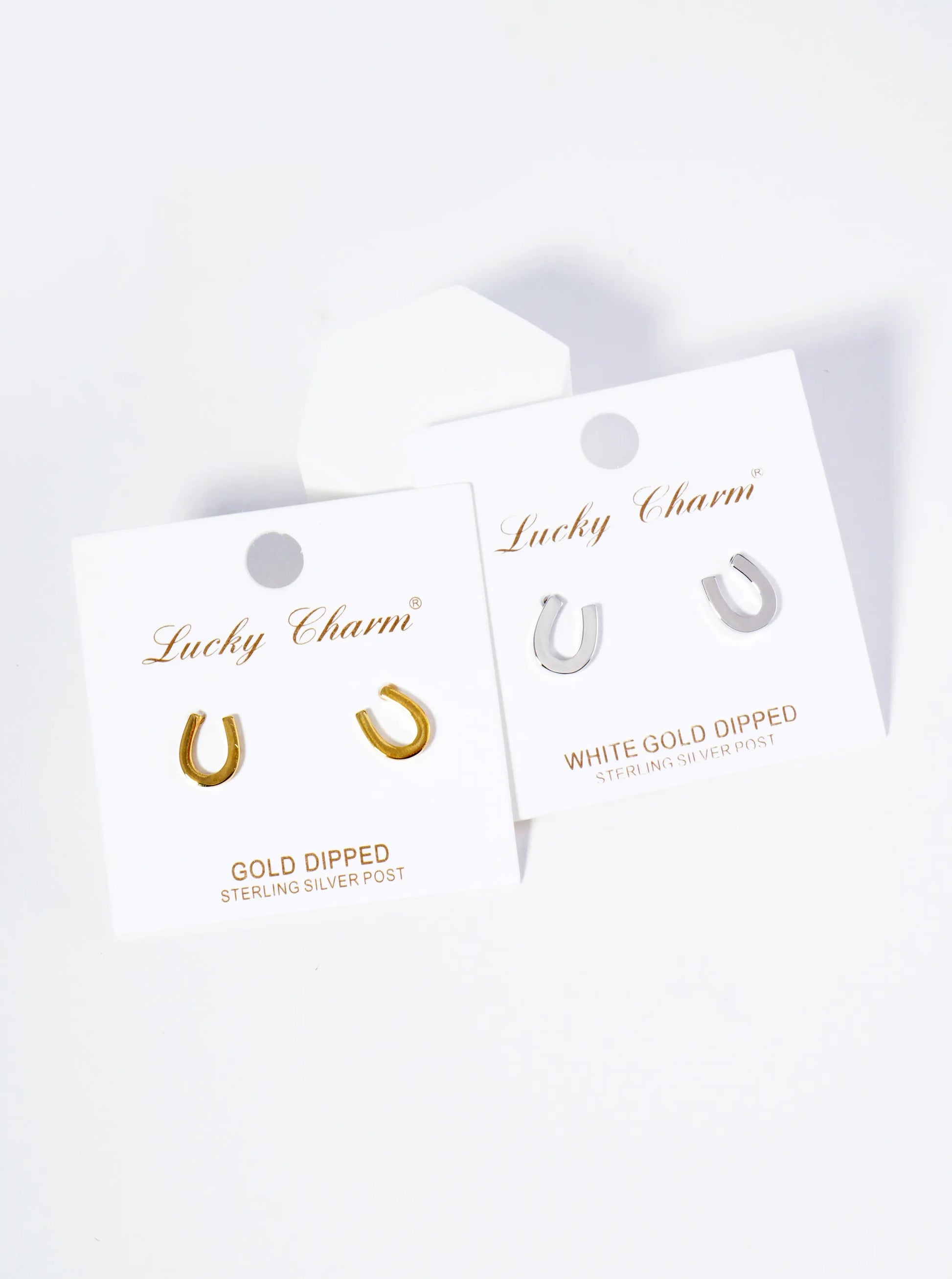 18K Gold Dipped Brass Horseshoe Stud Earrings