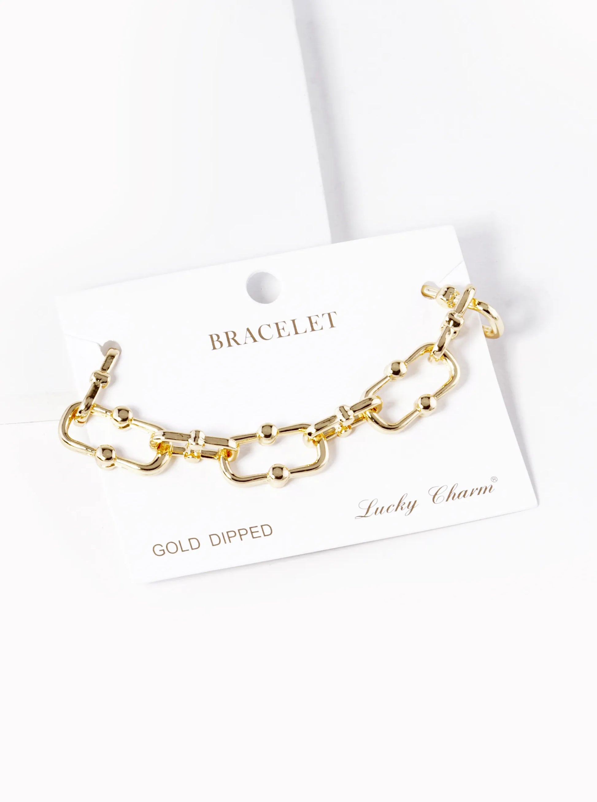 This High-end 18k Gold-dipped Polished Metal Chain Bracelet Is Perfect For Those Looking To Add A Luxurious Touch To Any Season. The Golden Texture With A Glimmering Finish Will Add A Special Feel To Any Occasion.