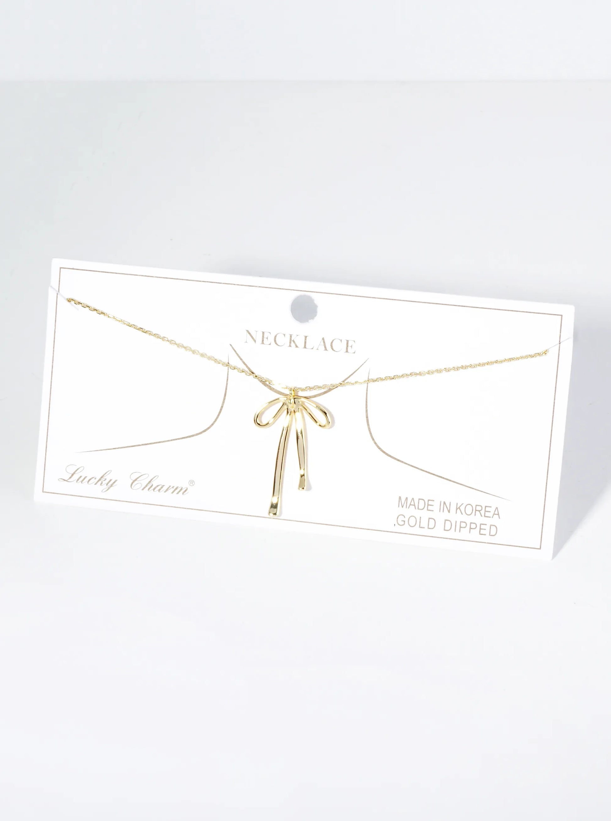 18K Gold Dipped Brass Ribbon Bow Pendant Necklace