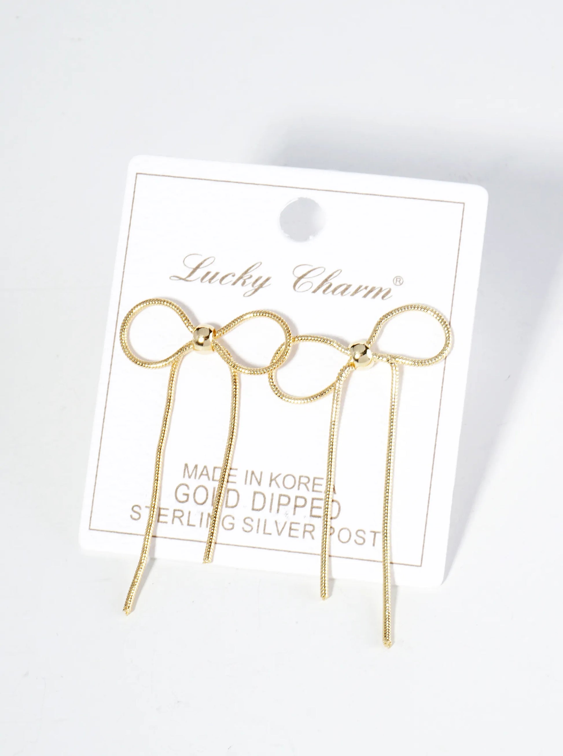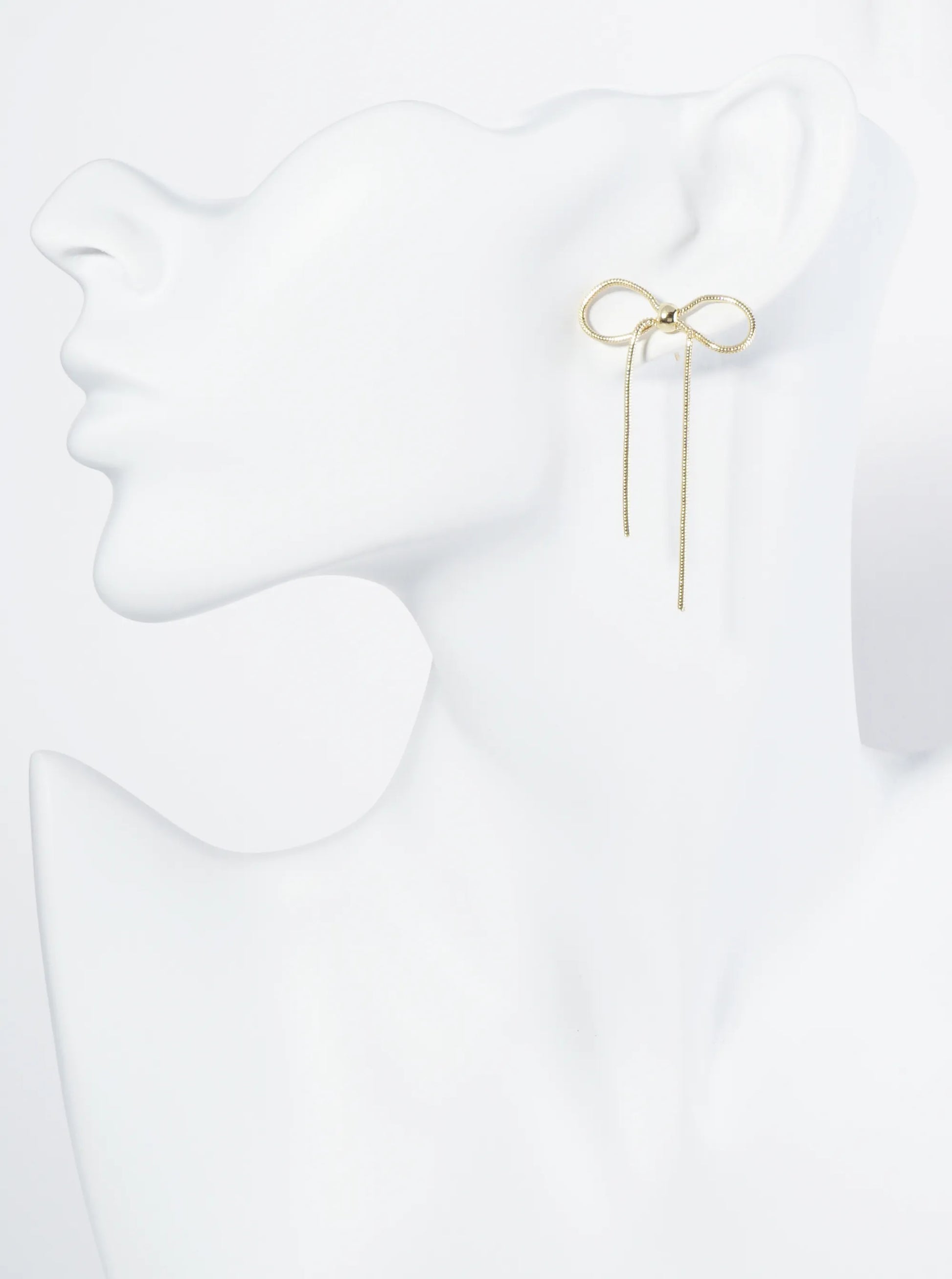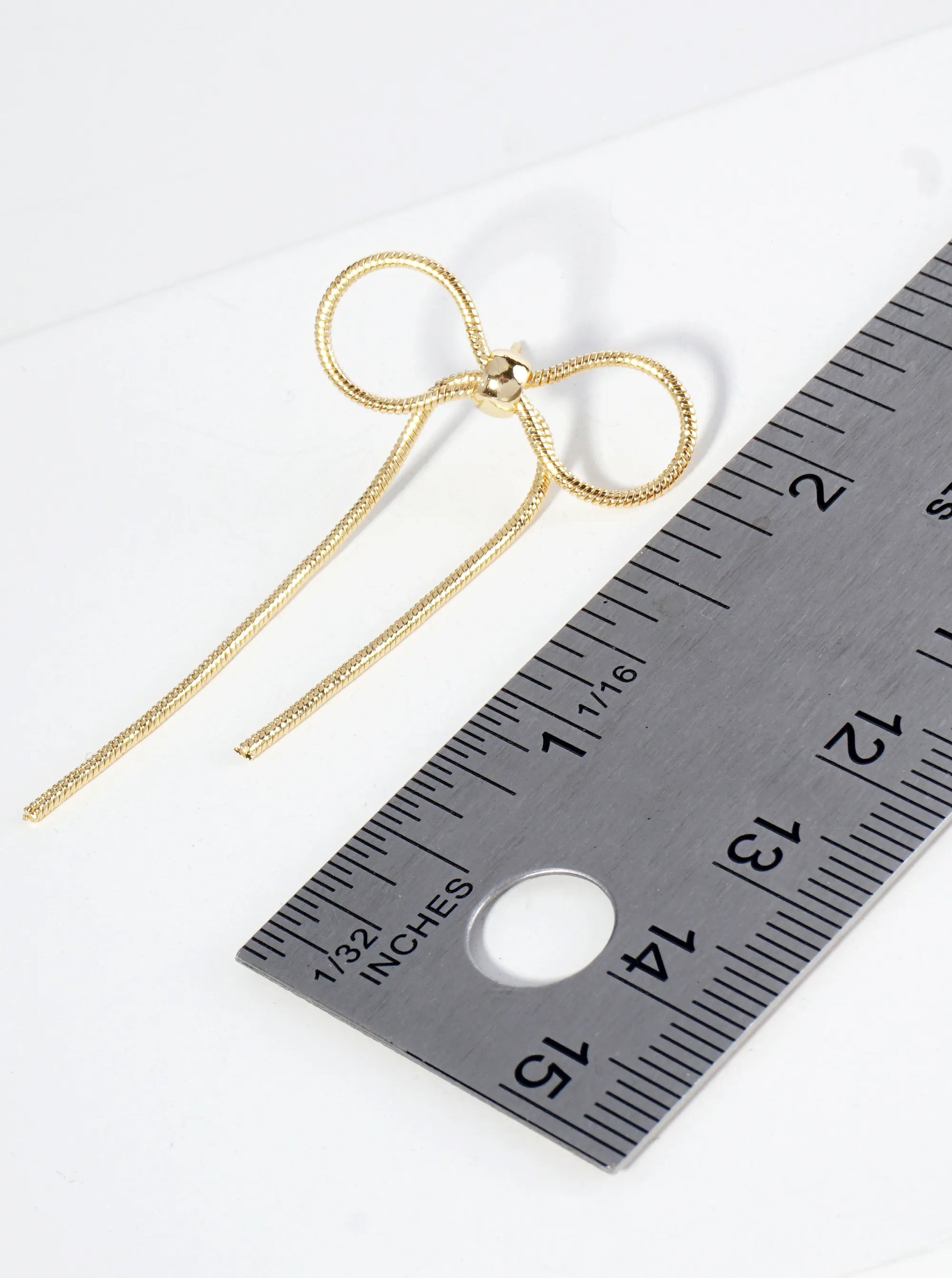 18K Gold Dipped Brass Snake Chain Ribbon Bow Drop Post Earrings