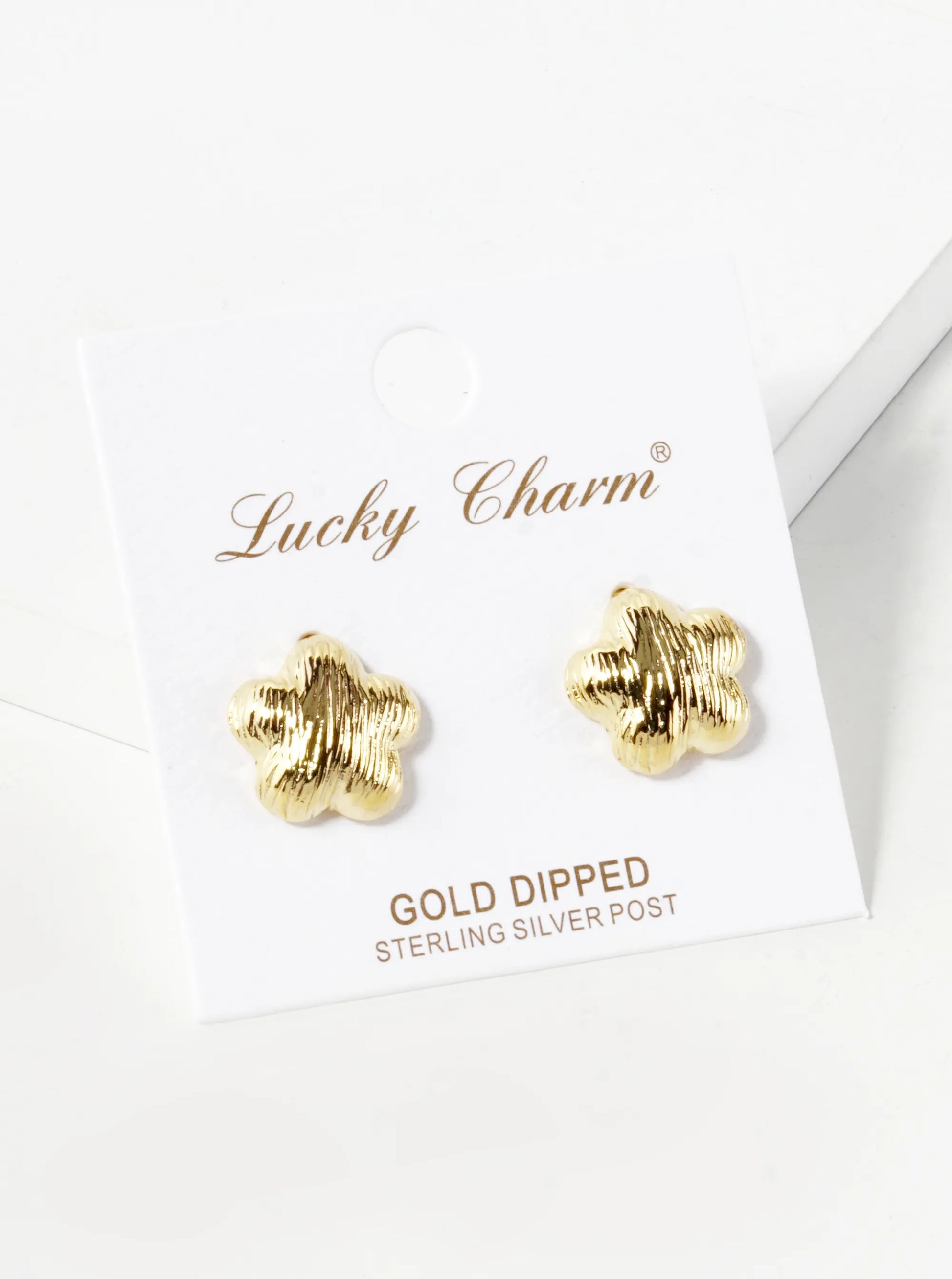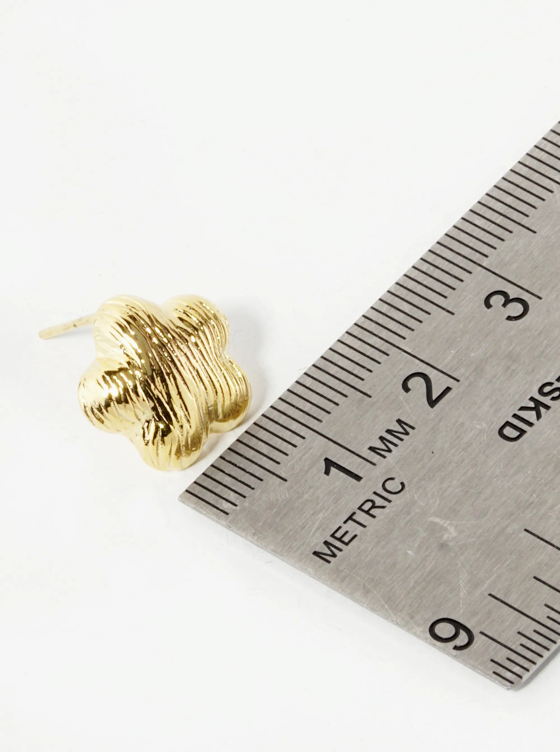 18K Gold Dipped Brushed Brass 13mm Puffy Flower Stud Earrings