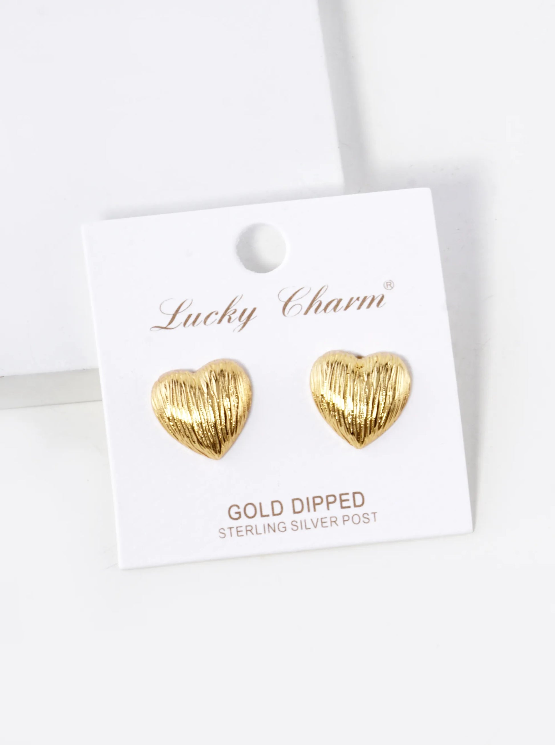 18K Gold Dipped Brushed Brass 13mm Puffy Heart Stud Earrings