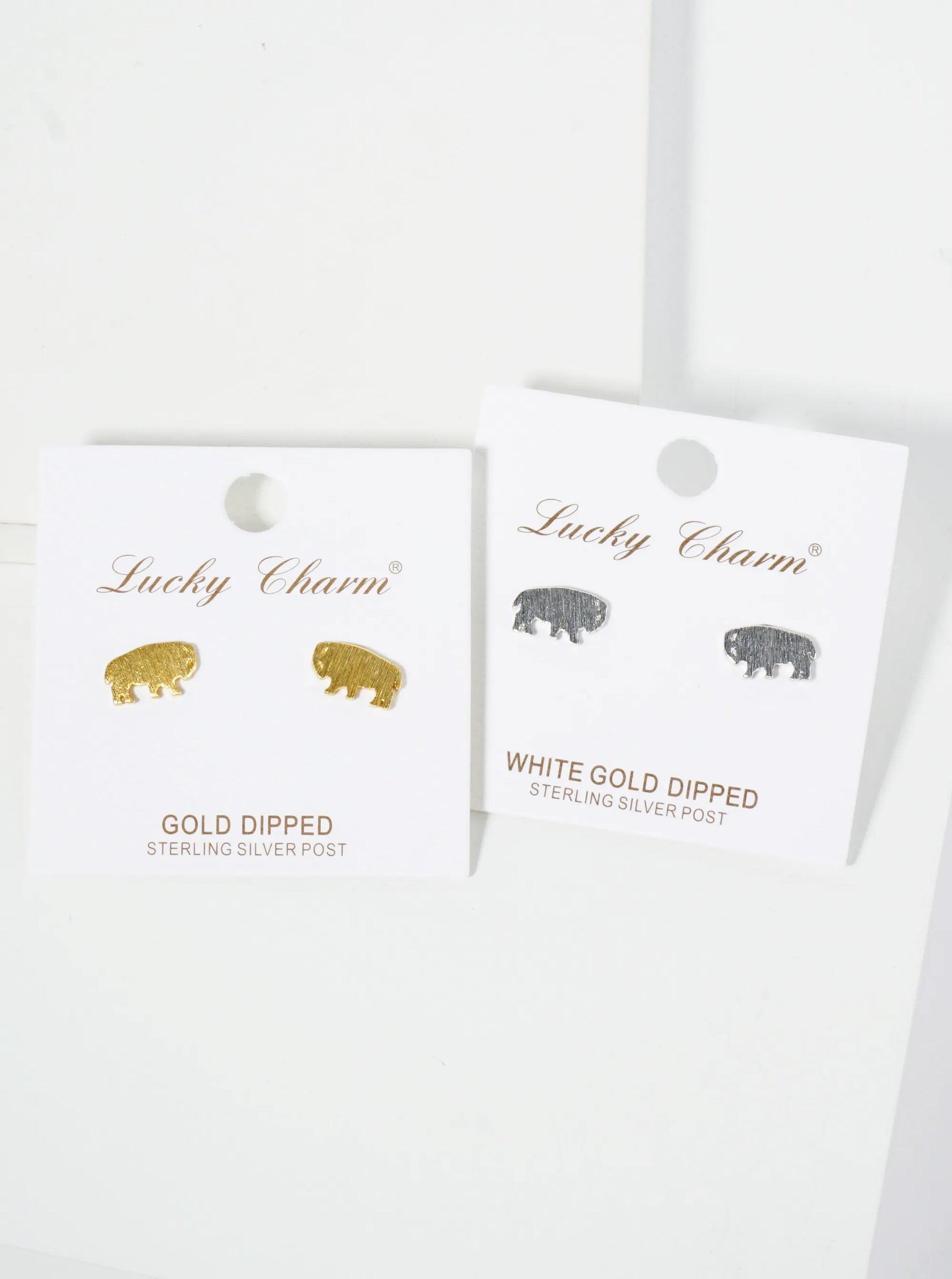 18K Gold Dipped Brushed Brass Buffalo Stud Earrings