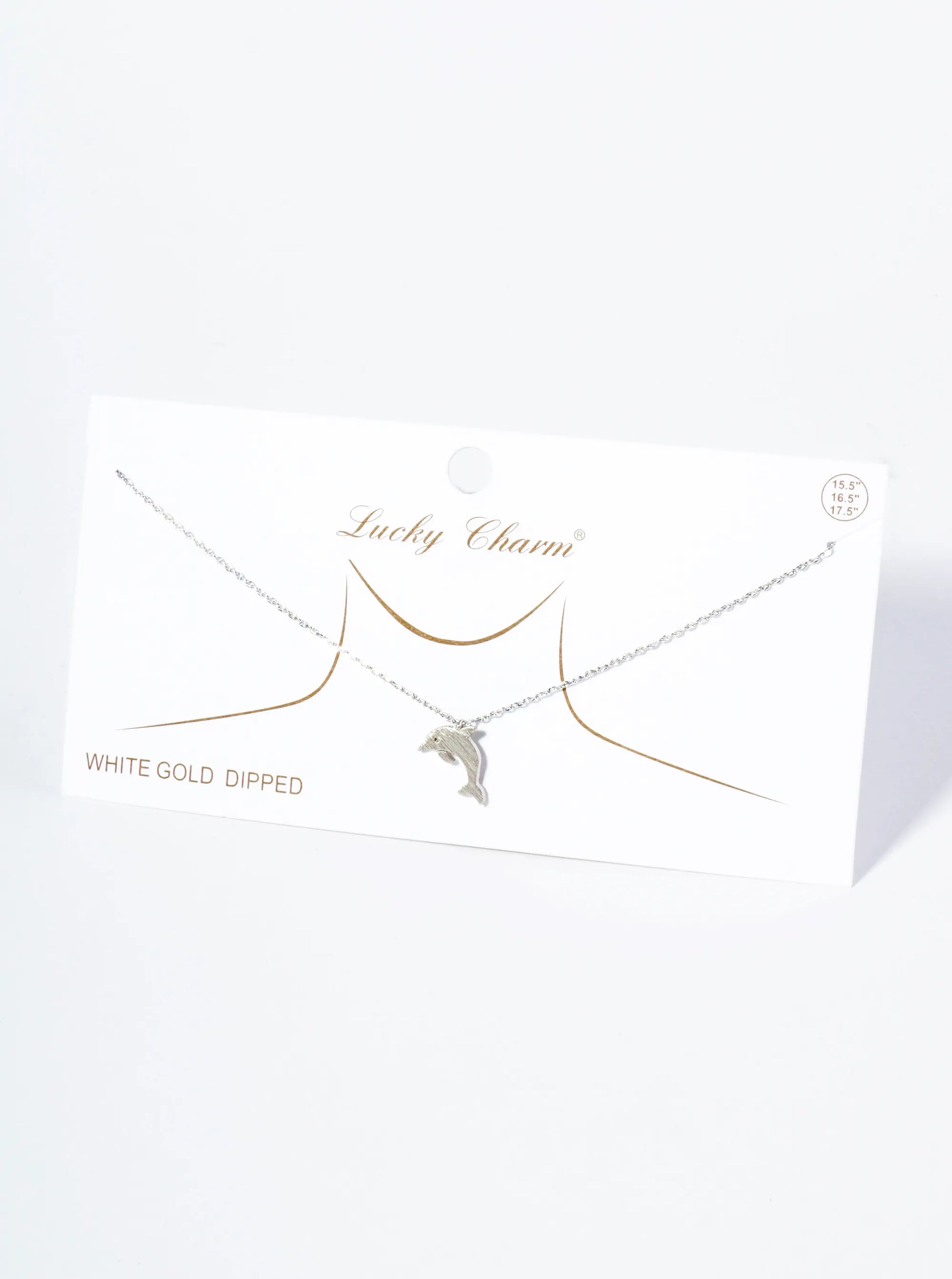 18K Gold Dipped Brushed Brass Dolphin Pendant Necklace
