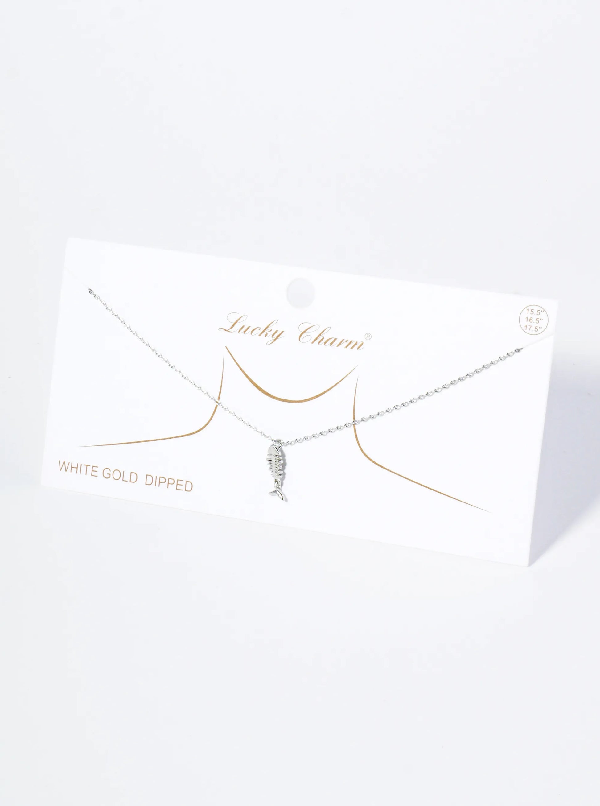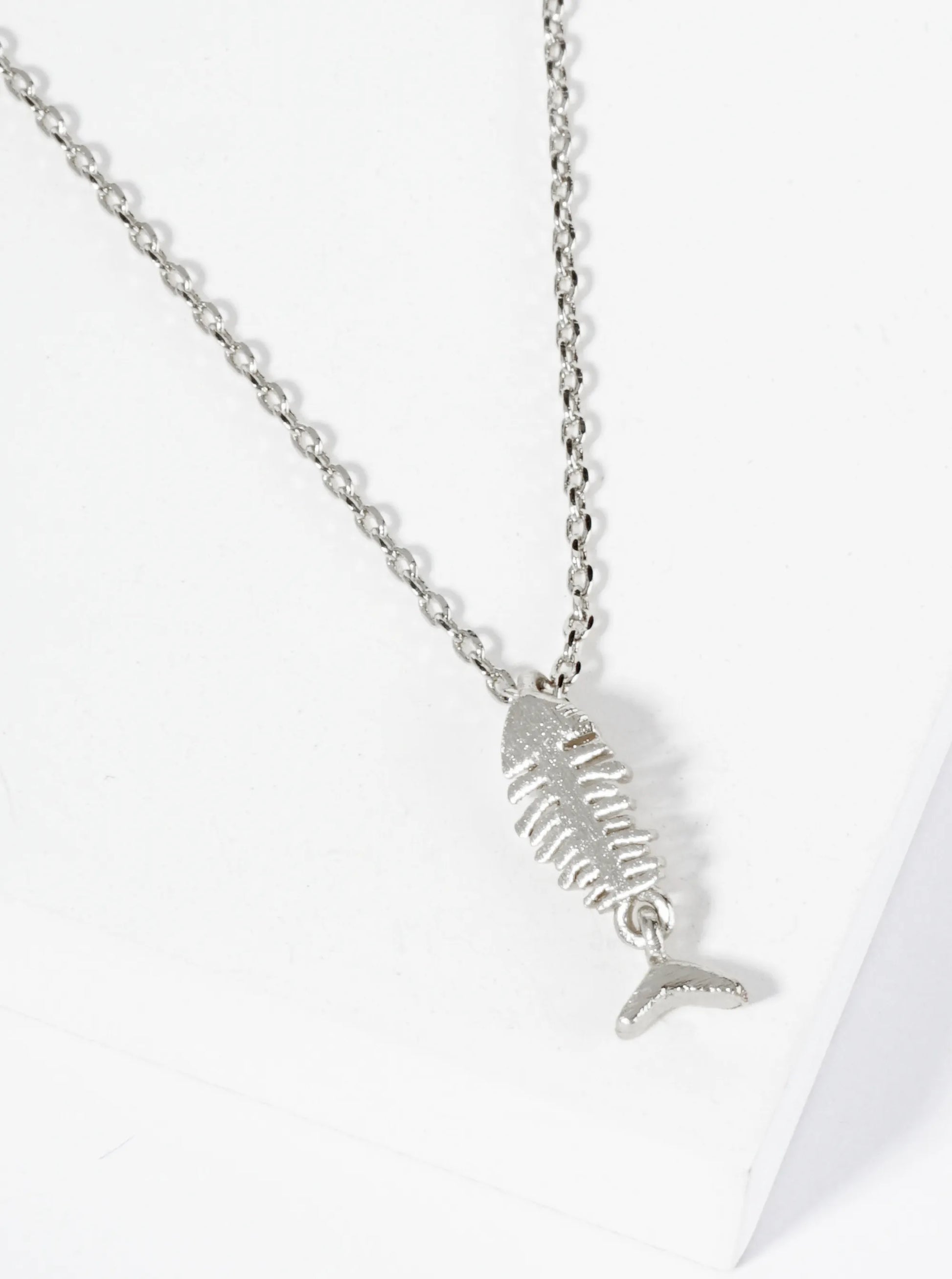 18K Gold Dipped Brushed Brass Fishbone Pendant Necklace